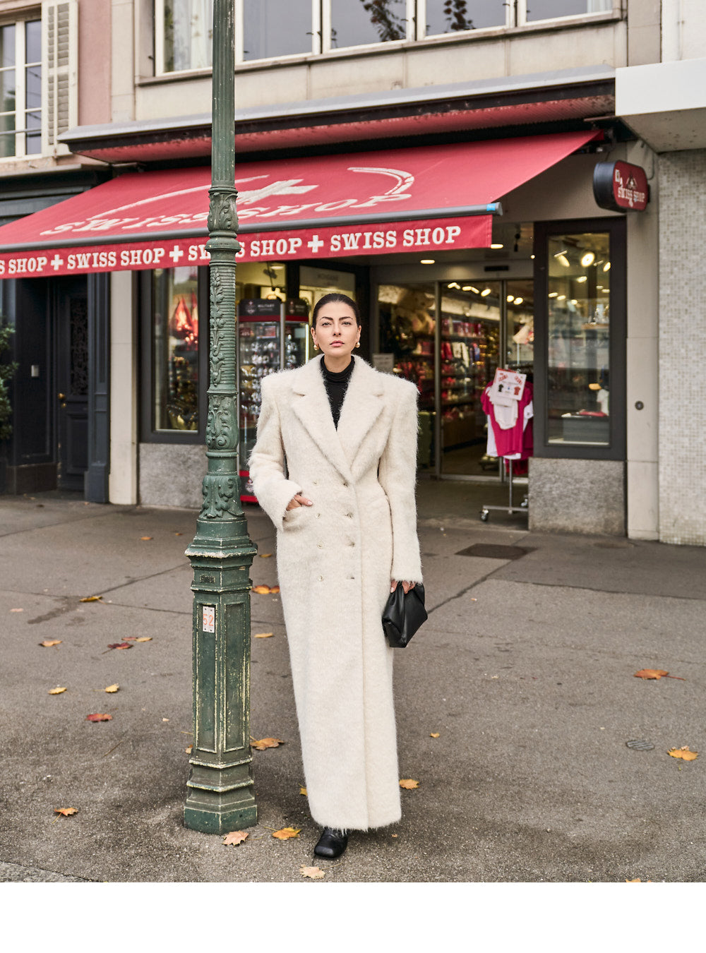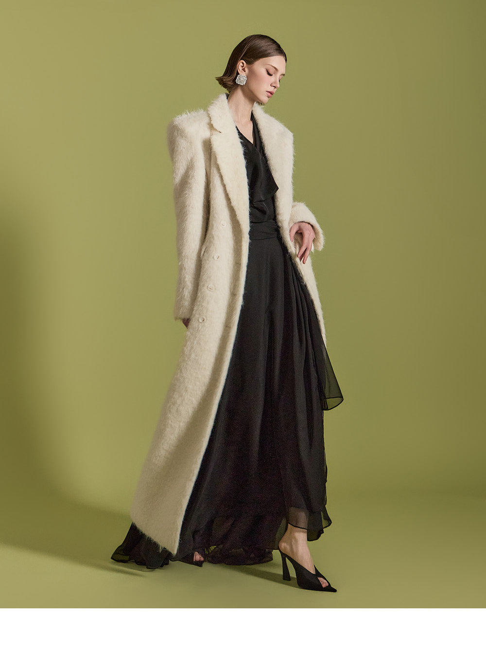 这款线条简洁的长外套非常适合时尚的秋冬季穿着,