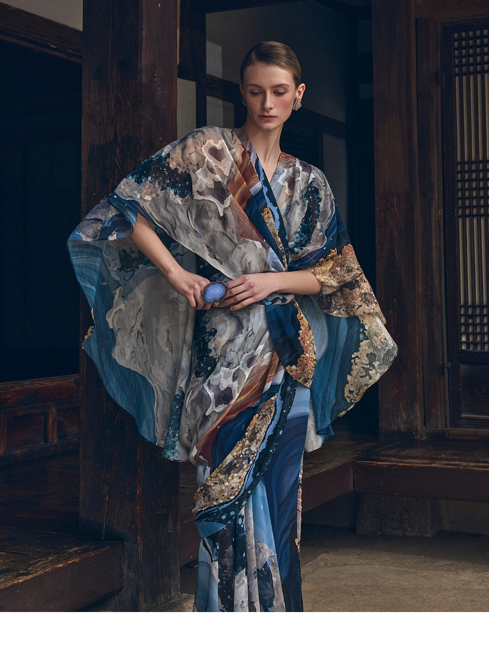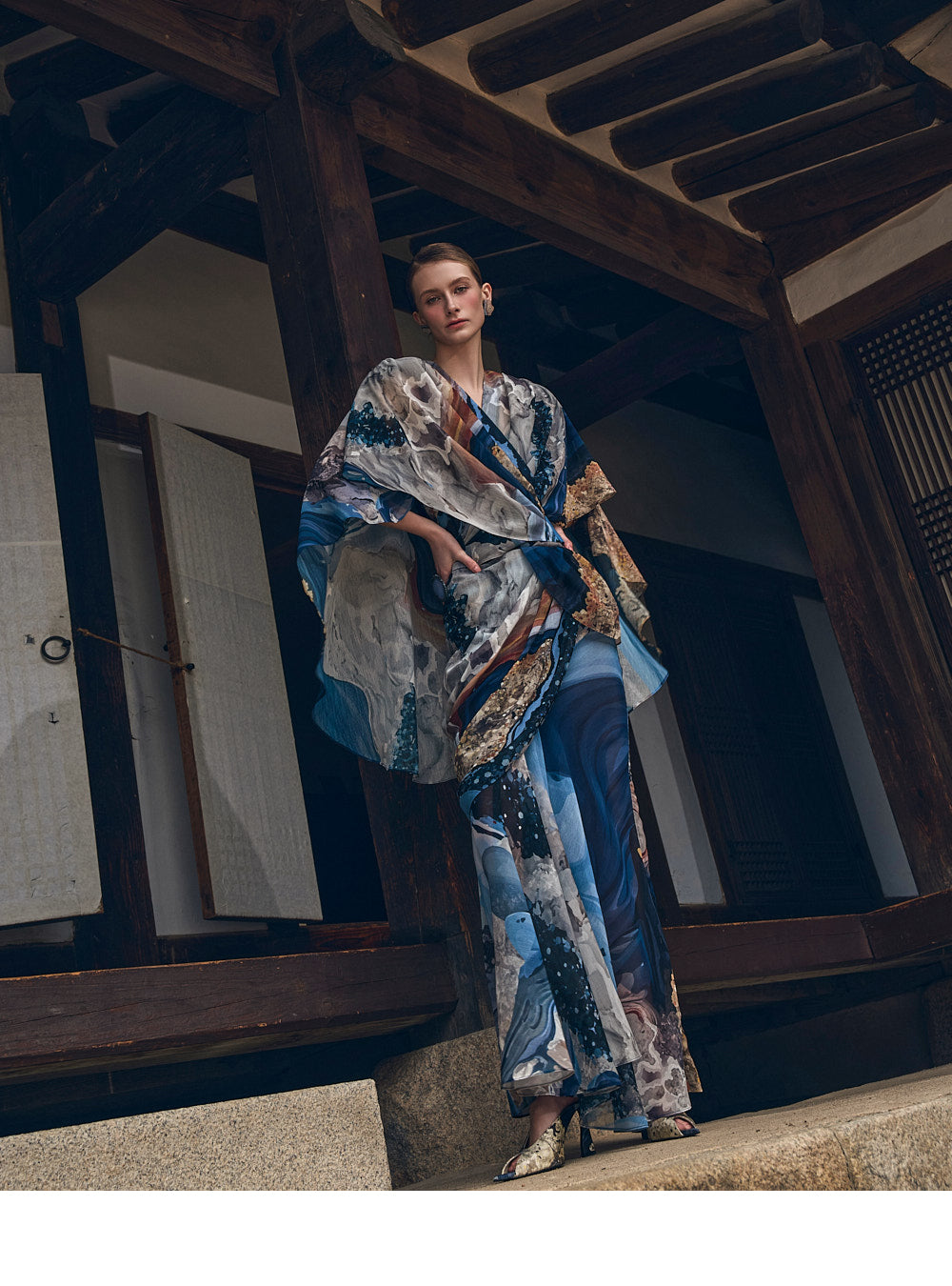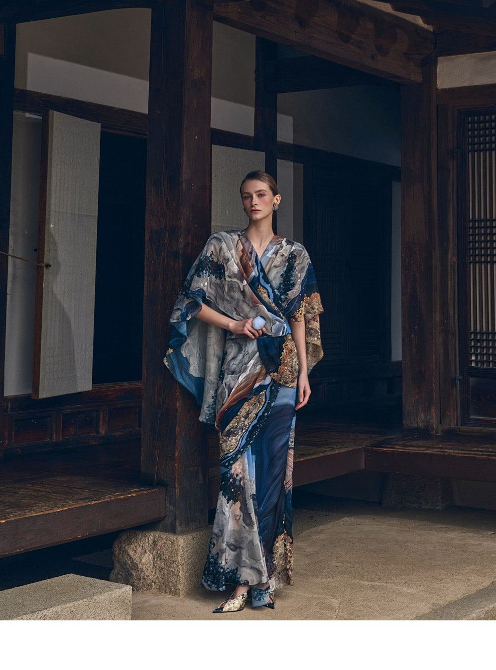 一侧不对称的褶皱细节形成优雅的垂坠感,