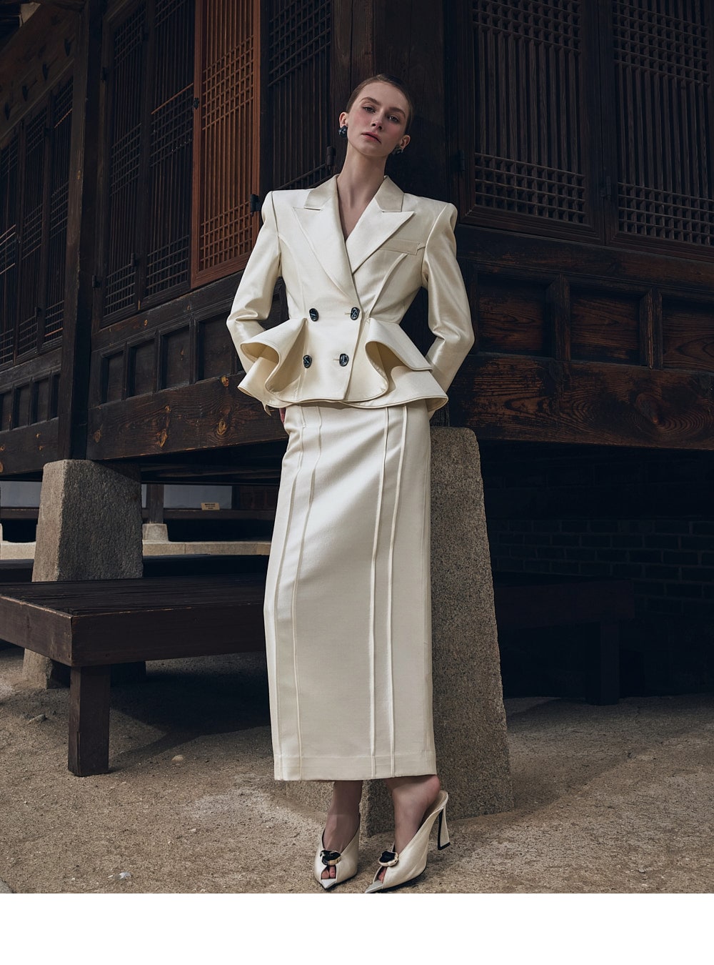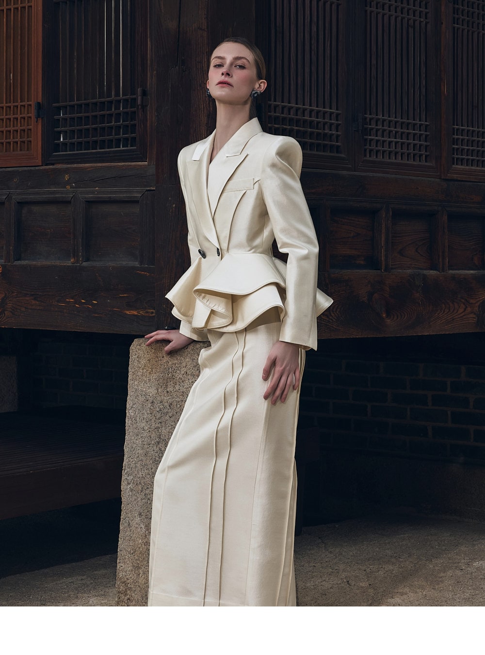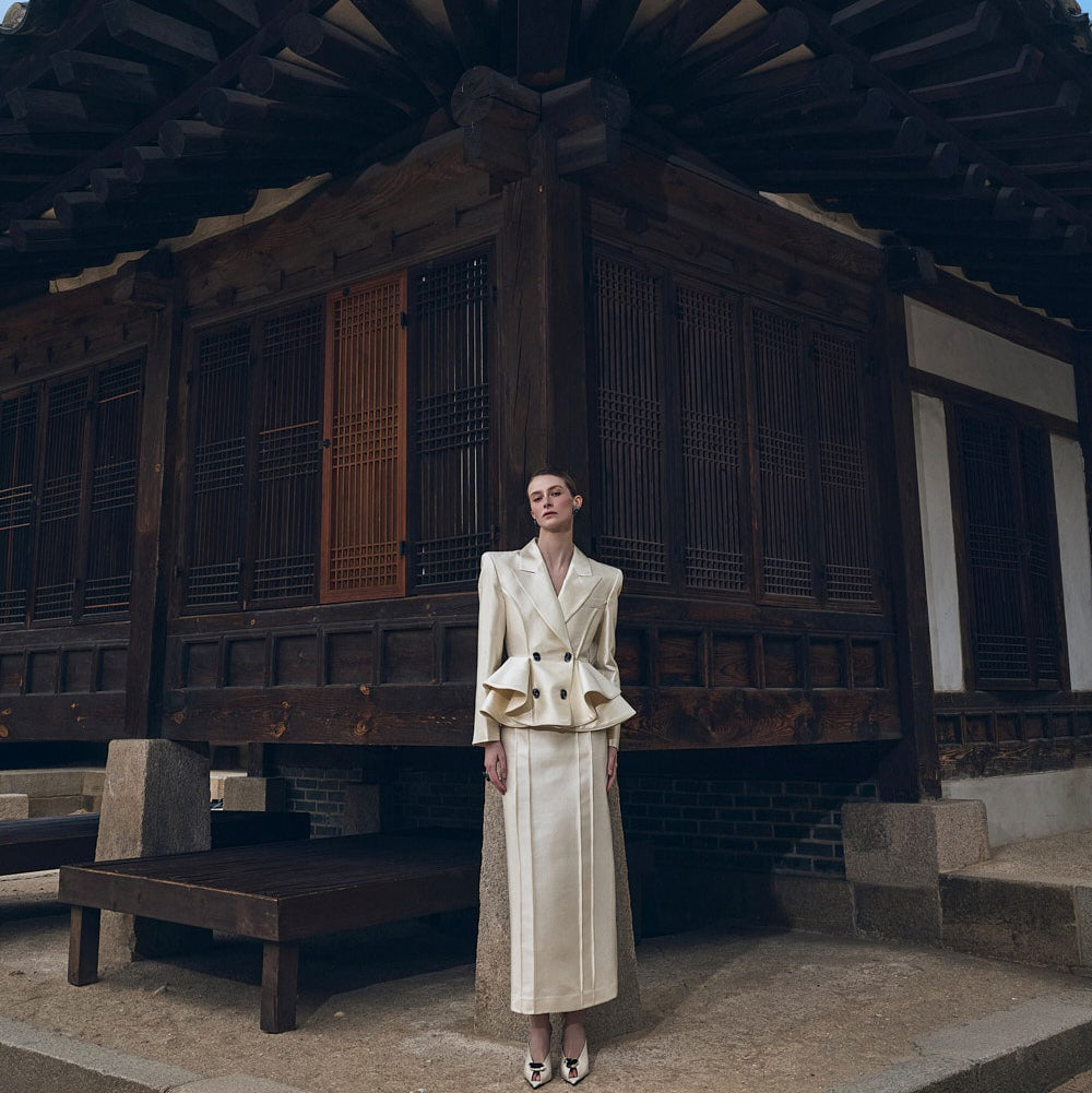 而垫肩则营造出均衡的轮廓。
