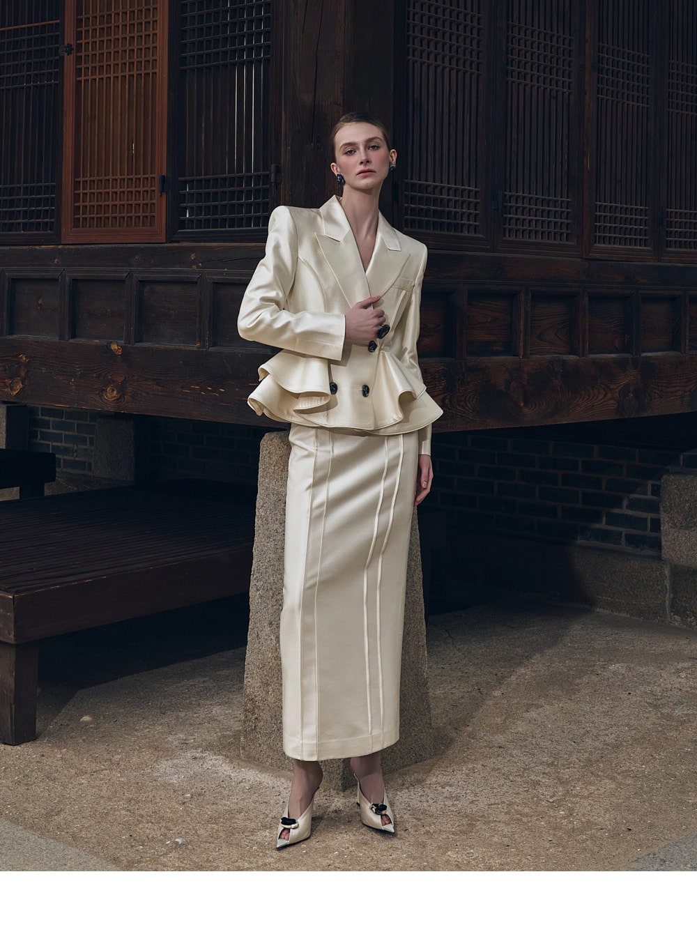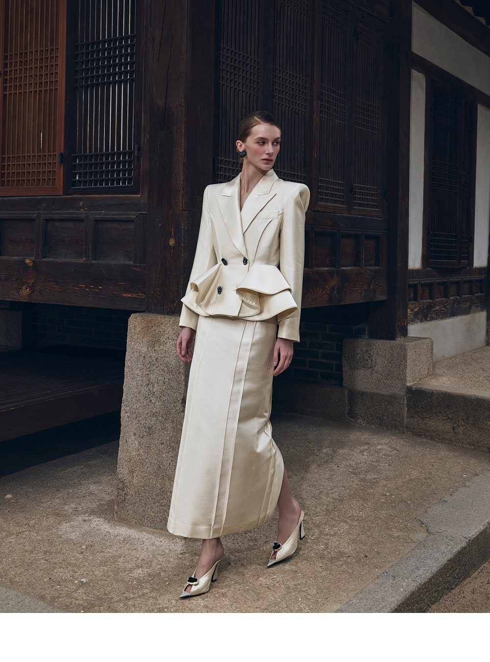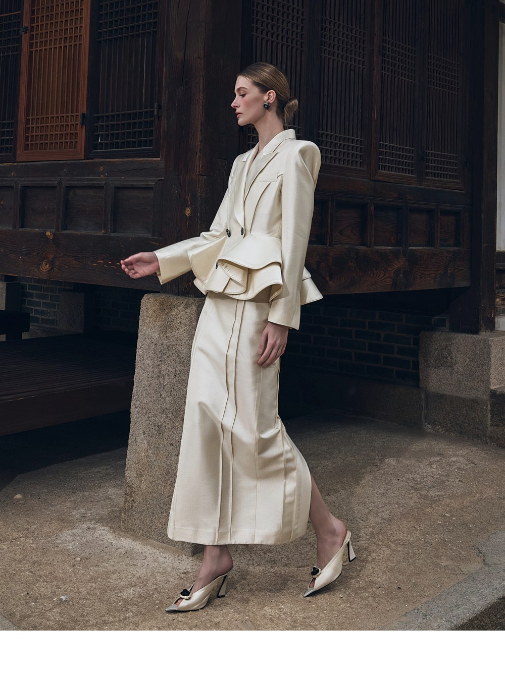 而垫肩则营造出均衡的轮廓。