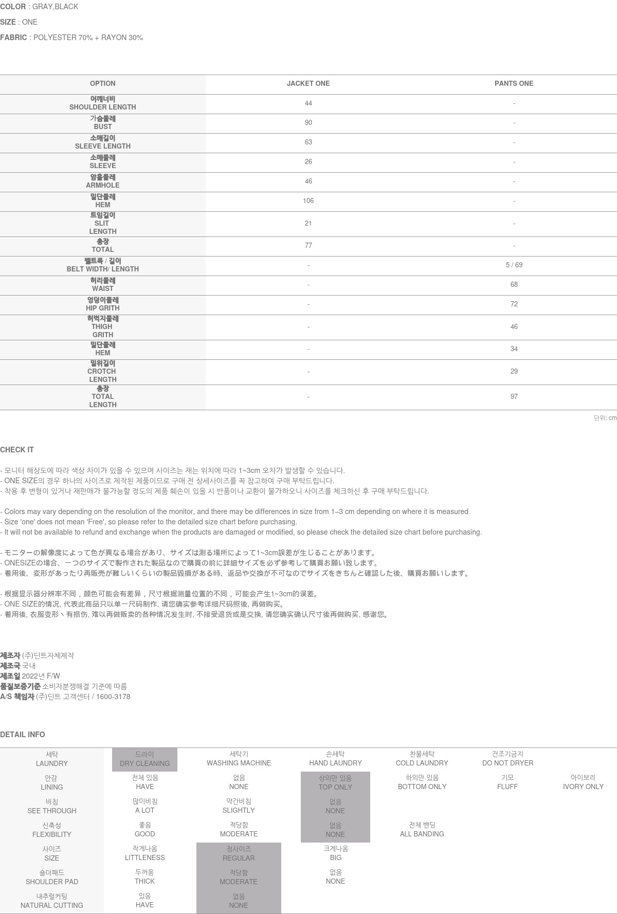 上衣/下装均提供一种尺寸,以适合身体形状。