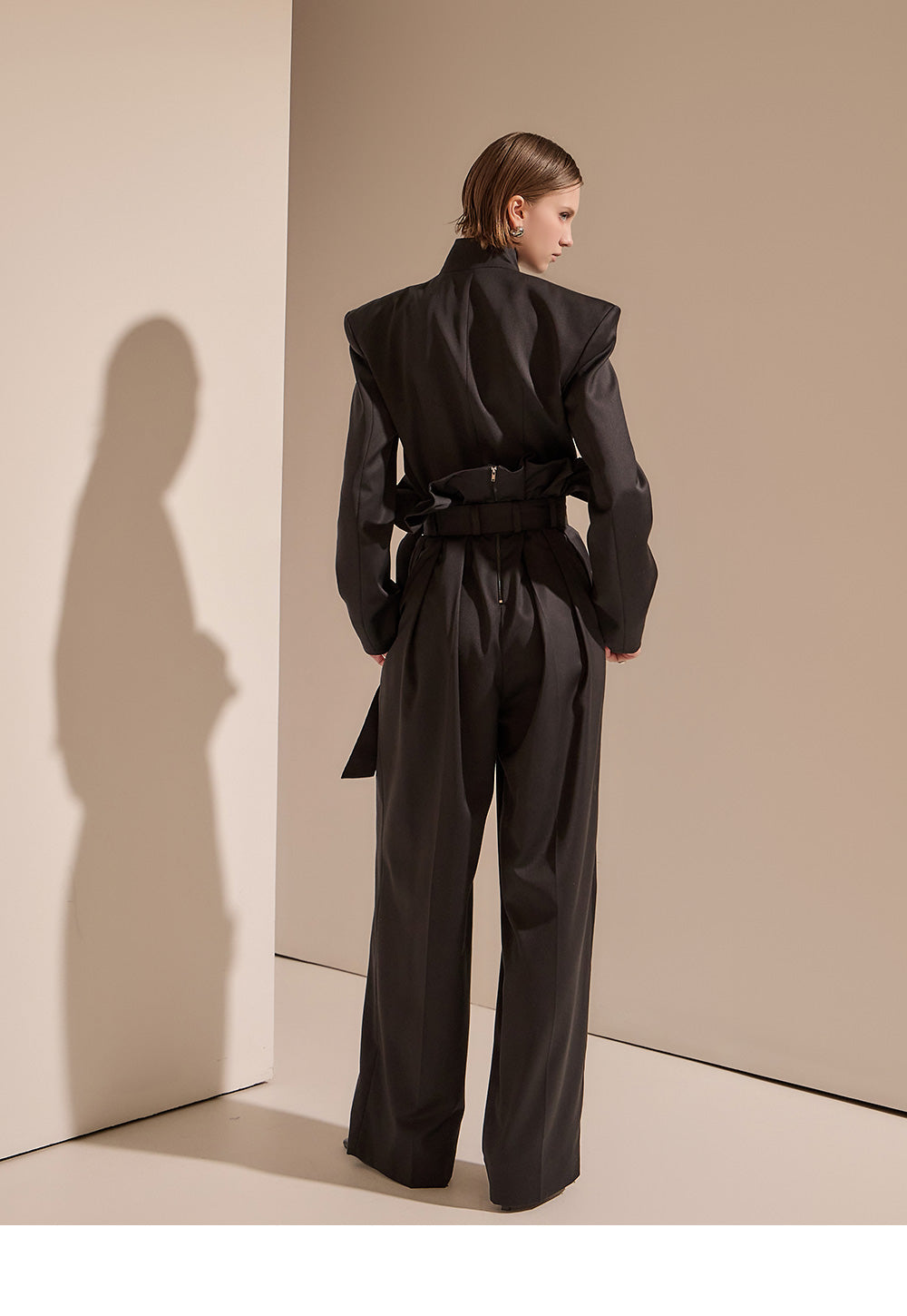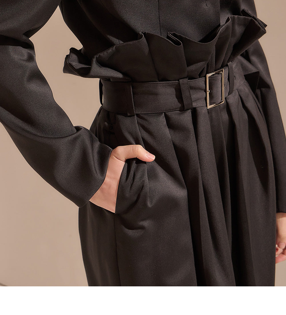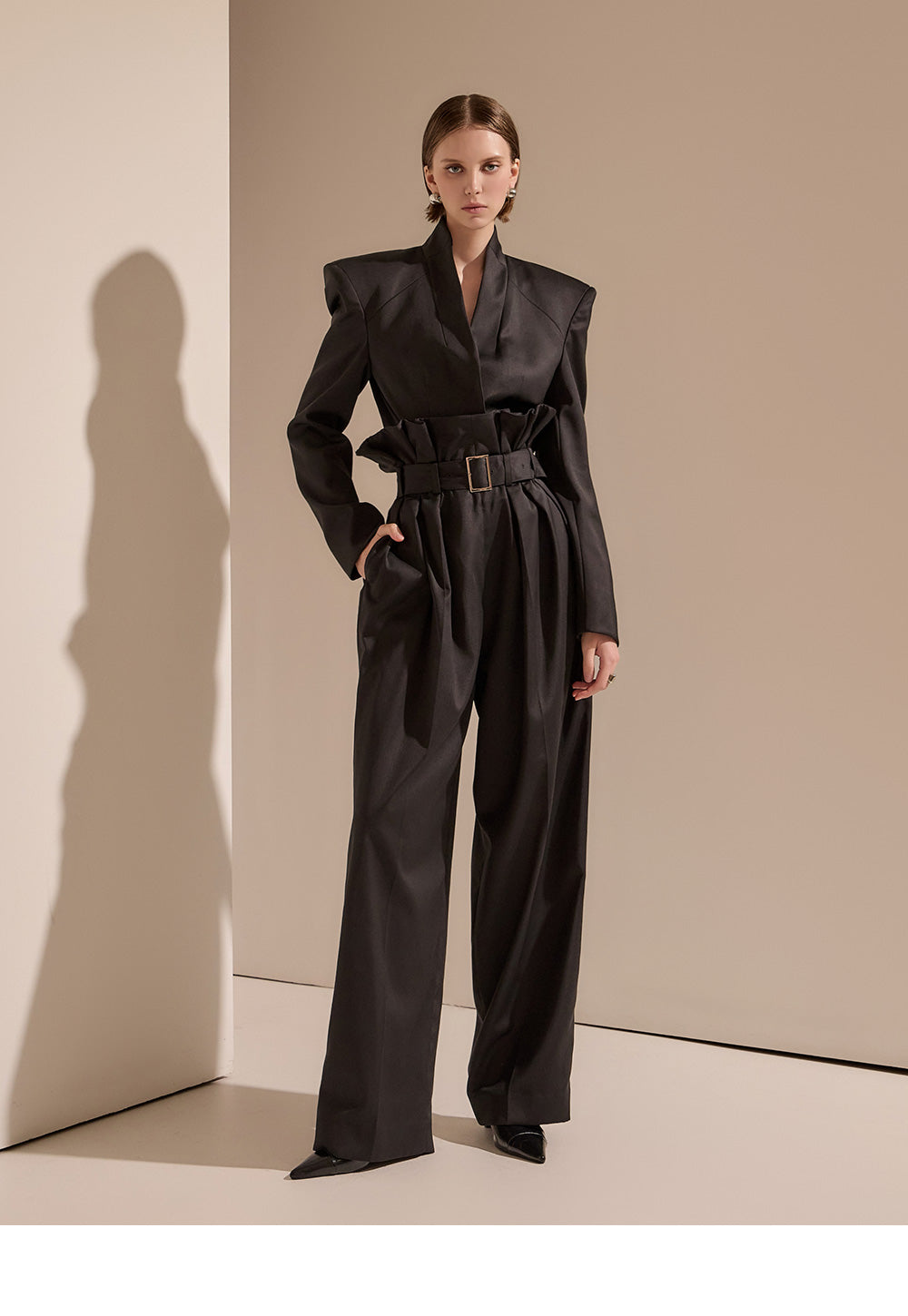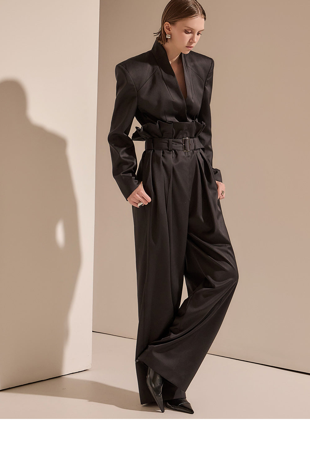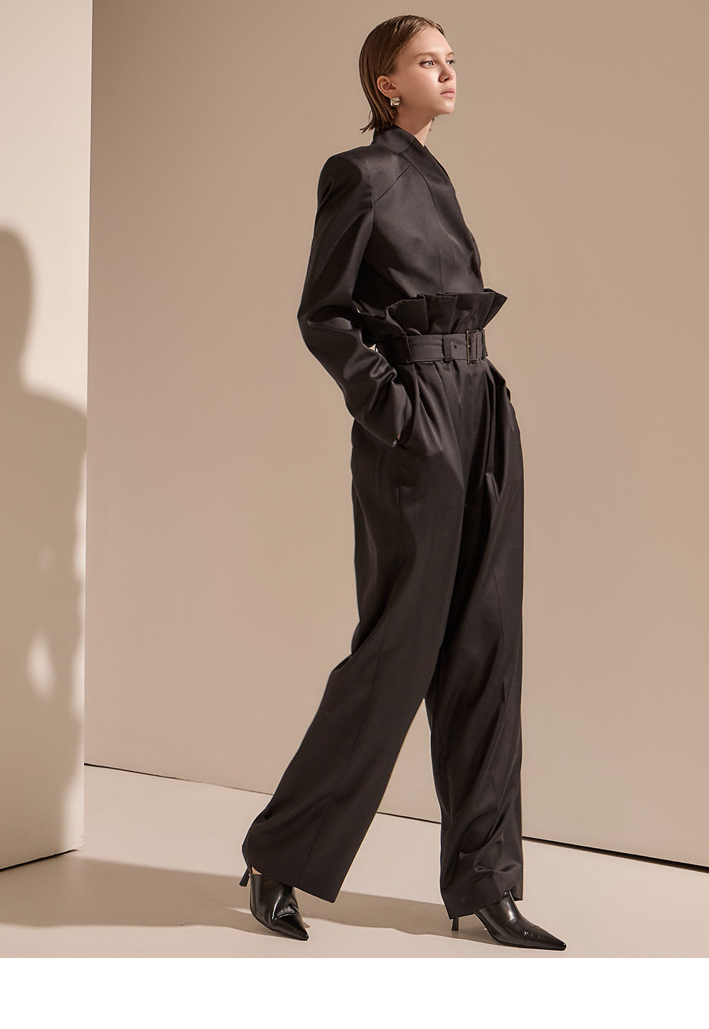 模特身高 174 厘米,穿着均码的黑色上衣/裤子。