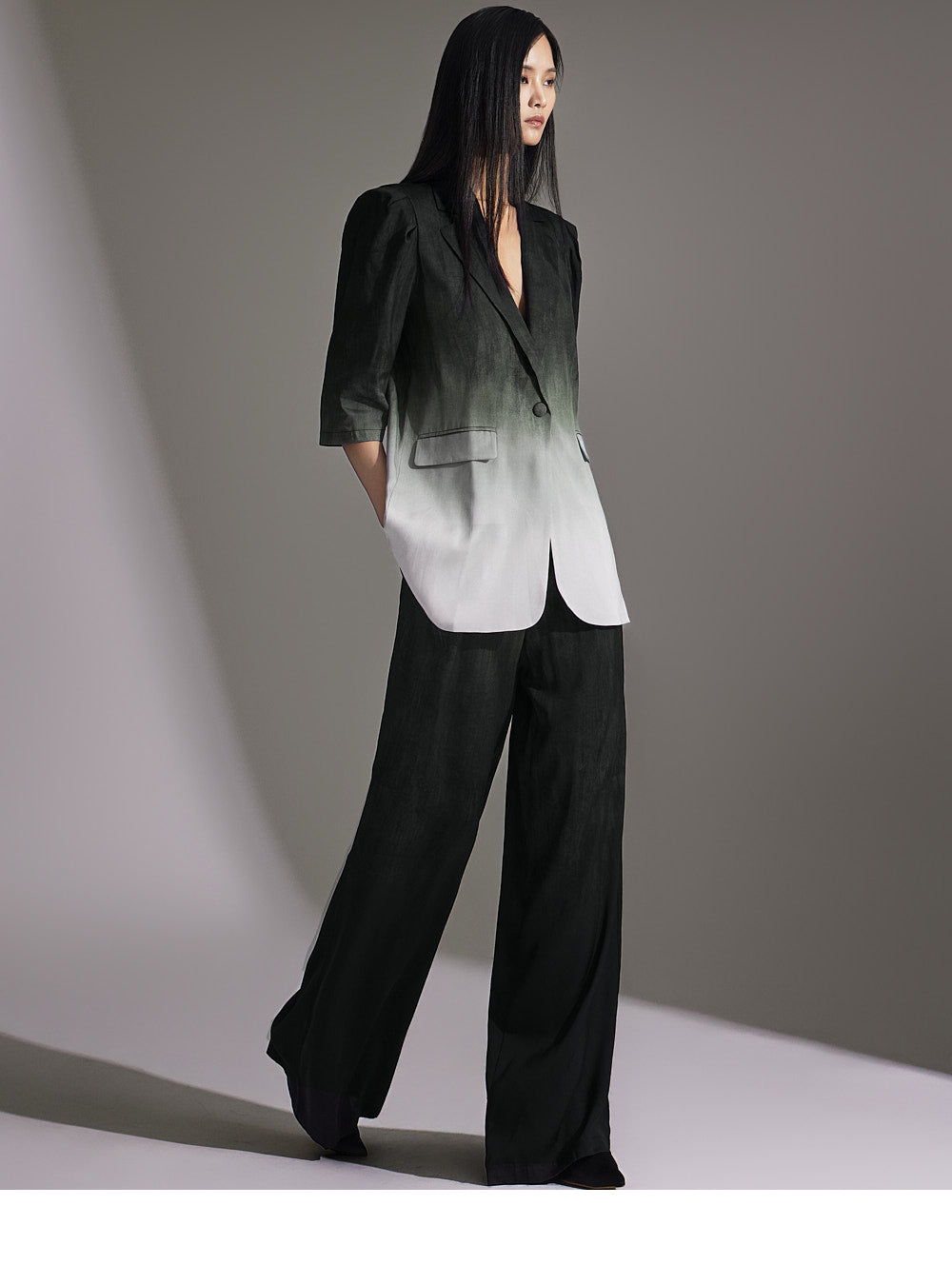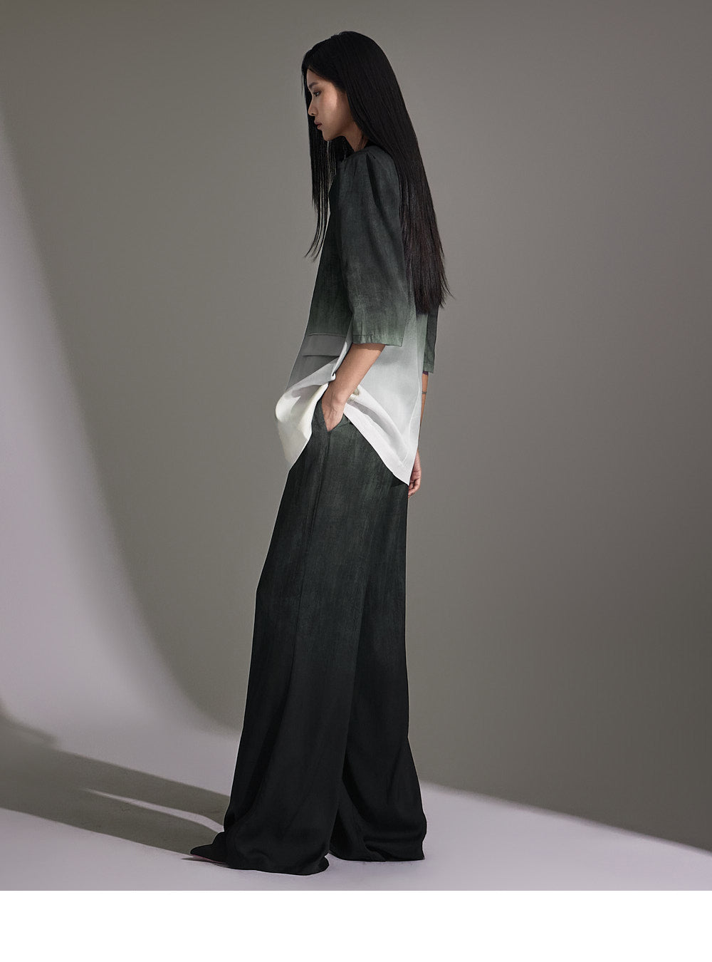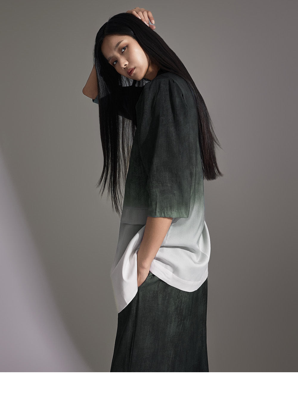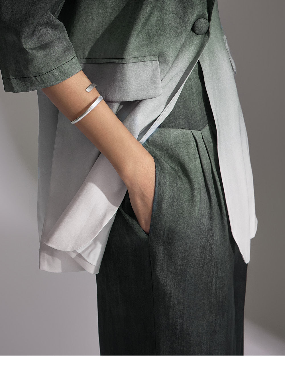 采用具有光泽表面的丝质面料和氨纶混纺而成,