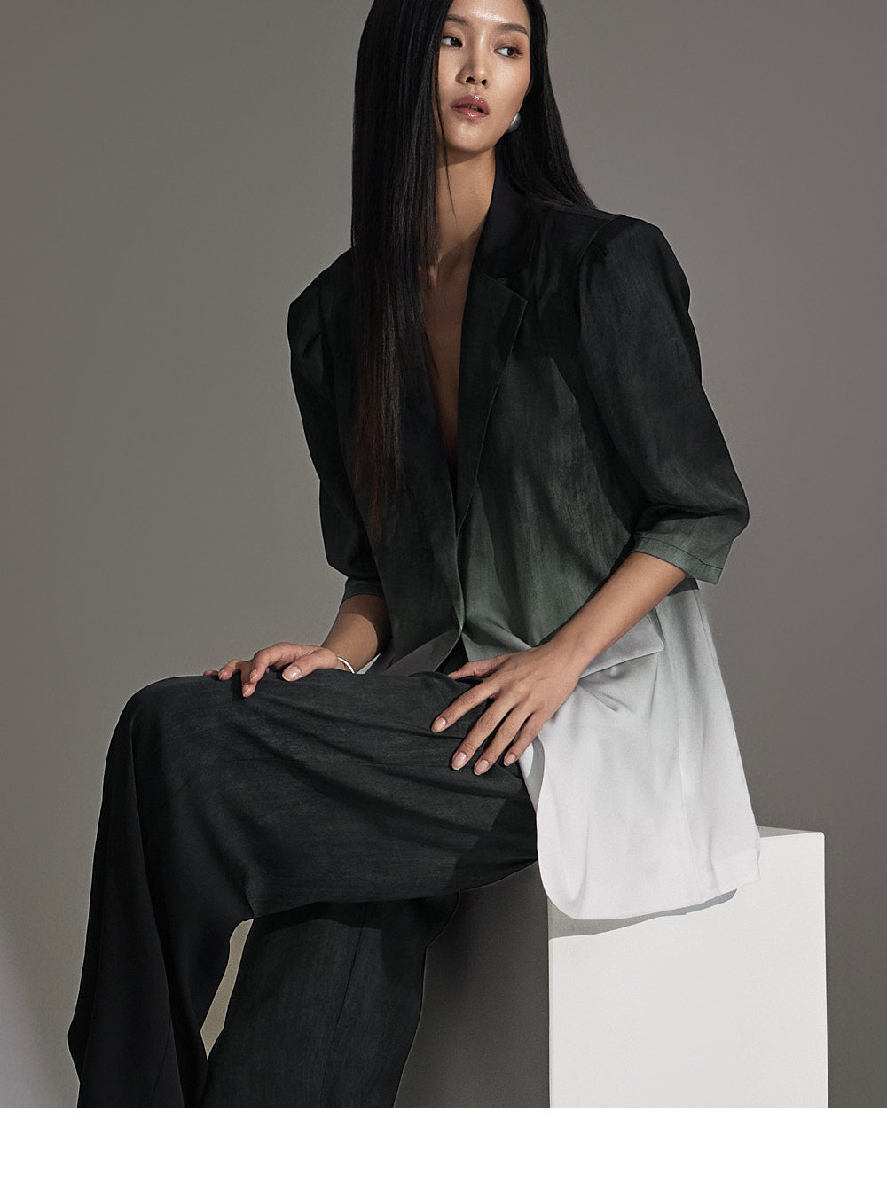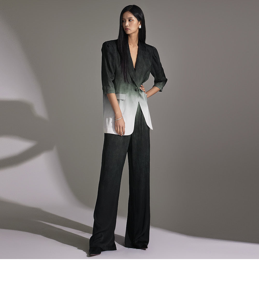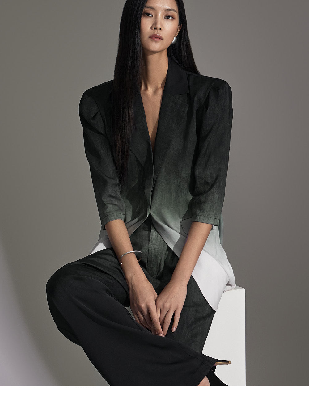 采用具有光泽表面的丝质面料和氨纶混纺而成,