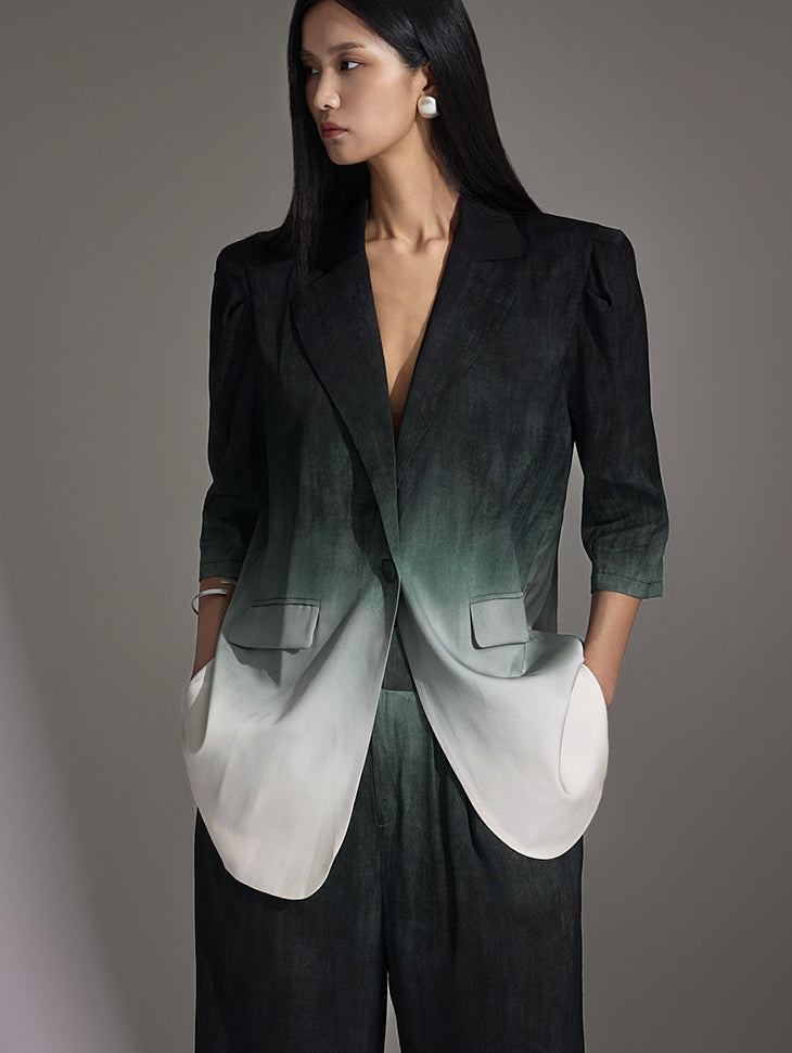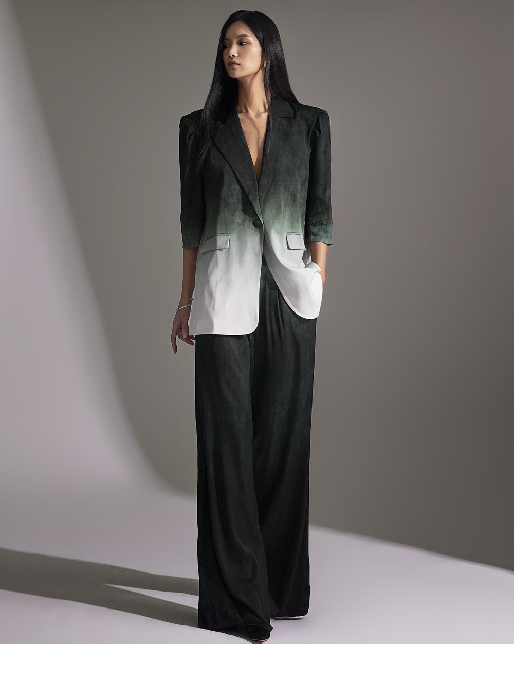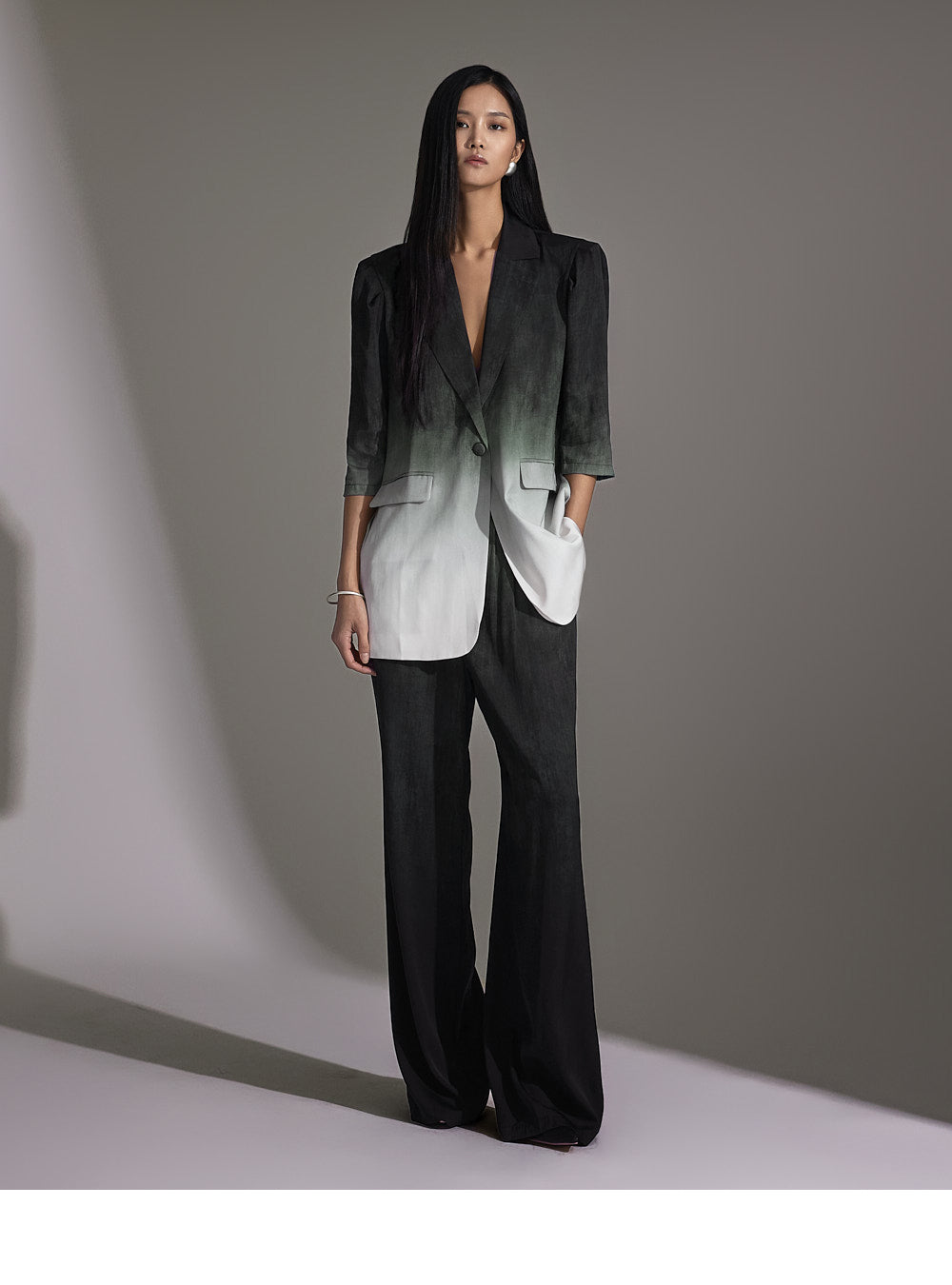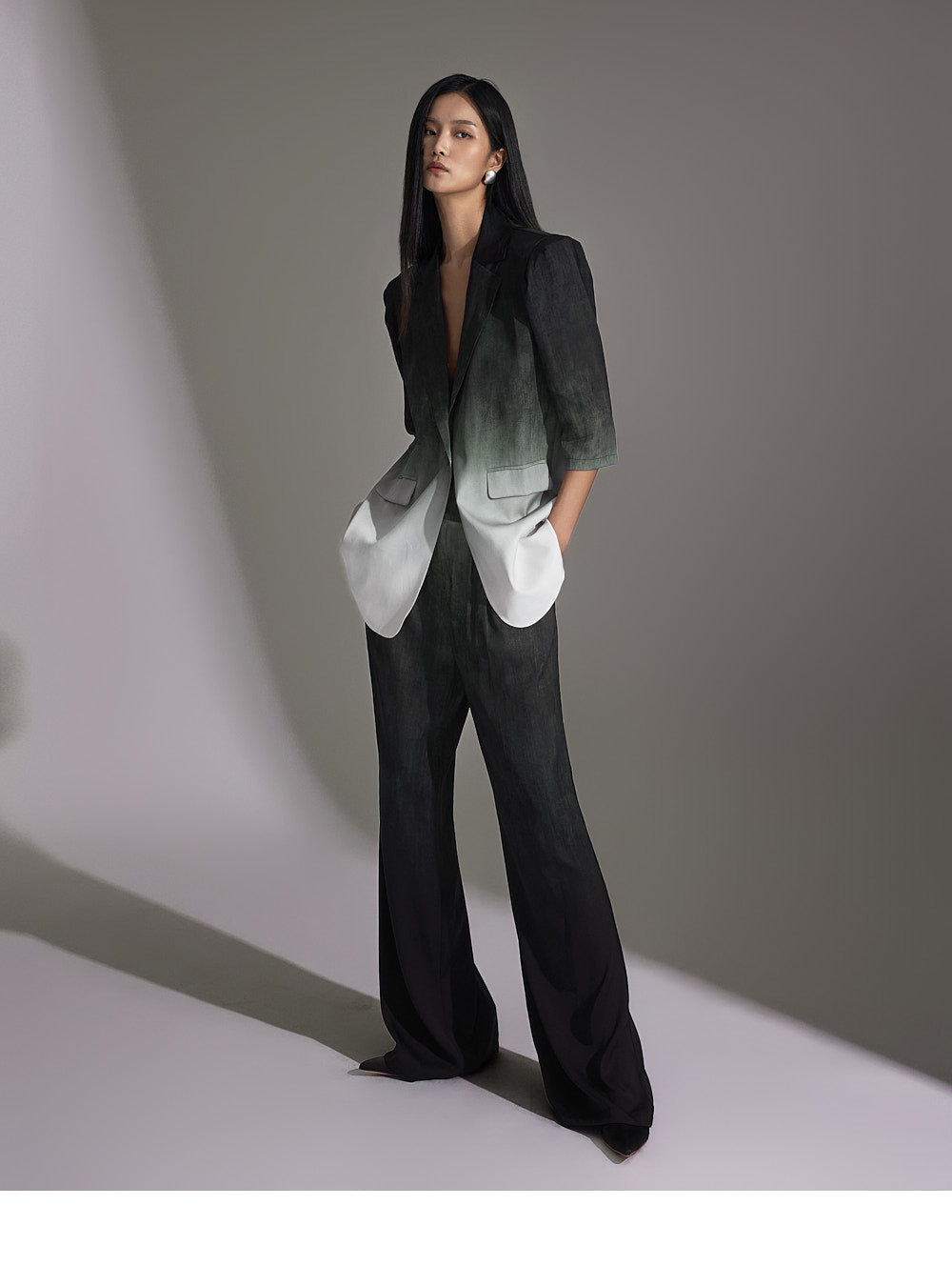 采用具有光泽表面的丝质面料和氨纶混纺而成,