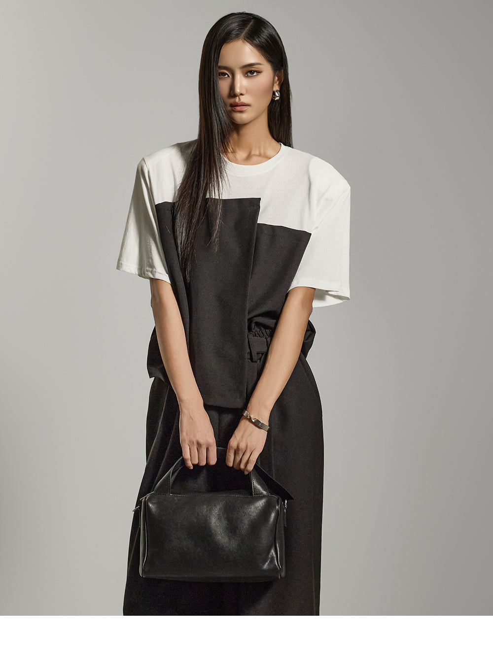 宽大的轮廓和添加的褶裥细节营造出时尚的外观,