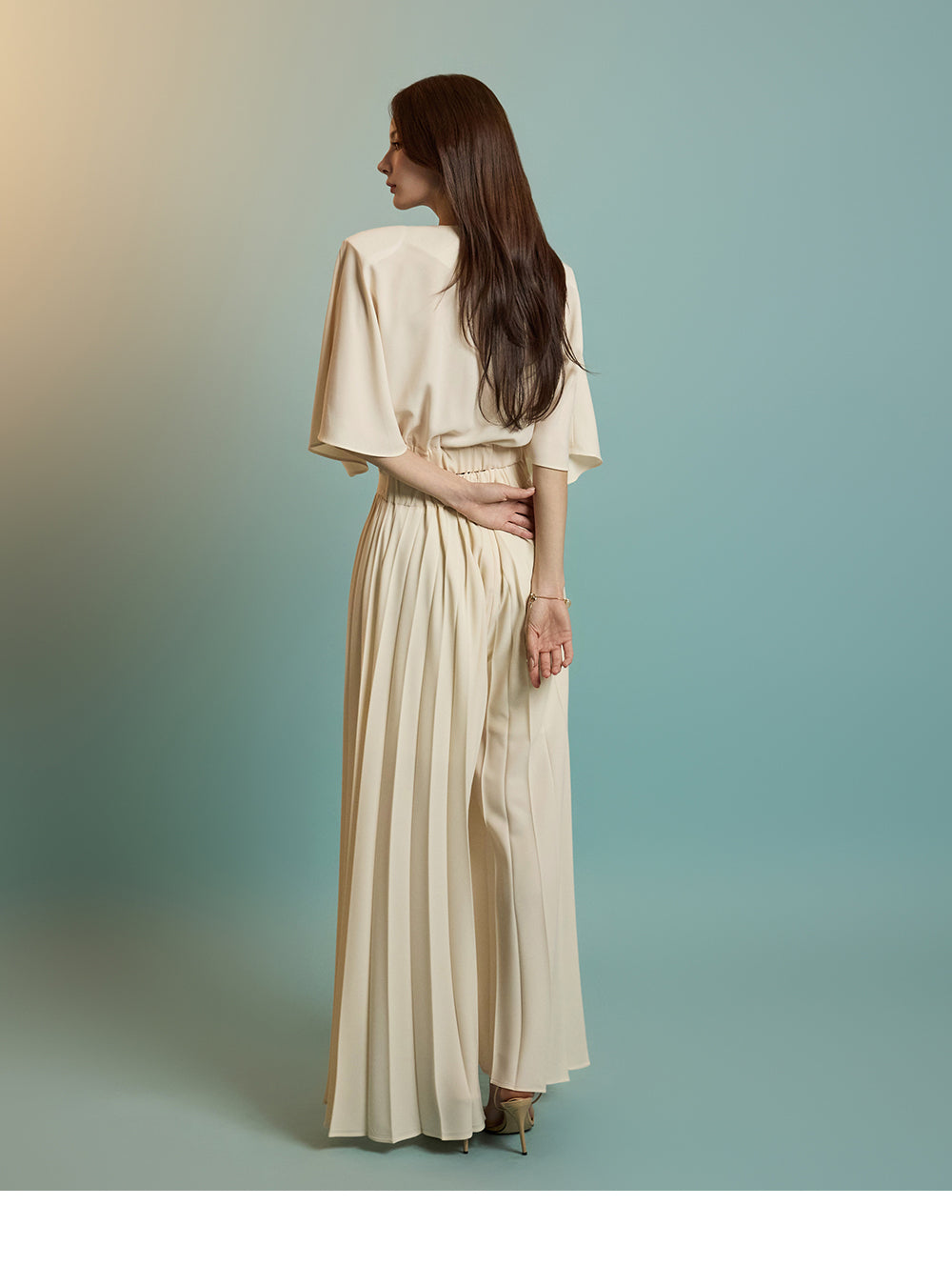 后背拉链闭合,简洁利落,
