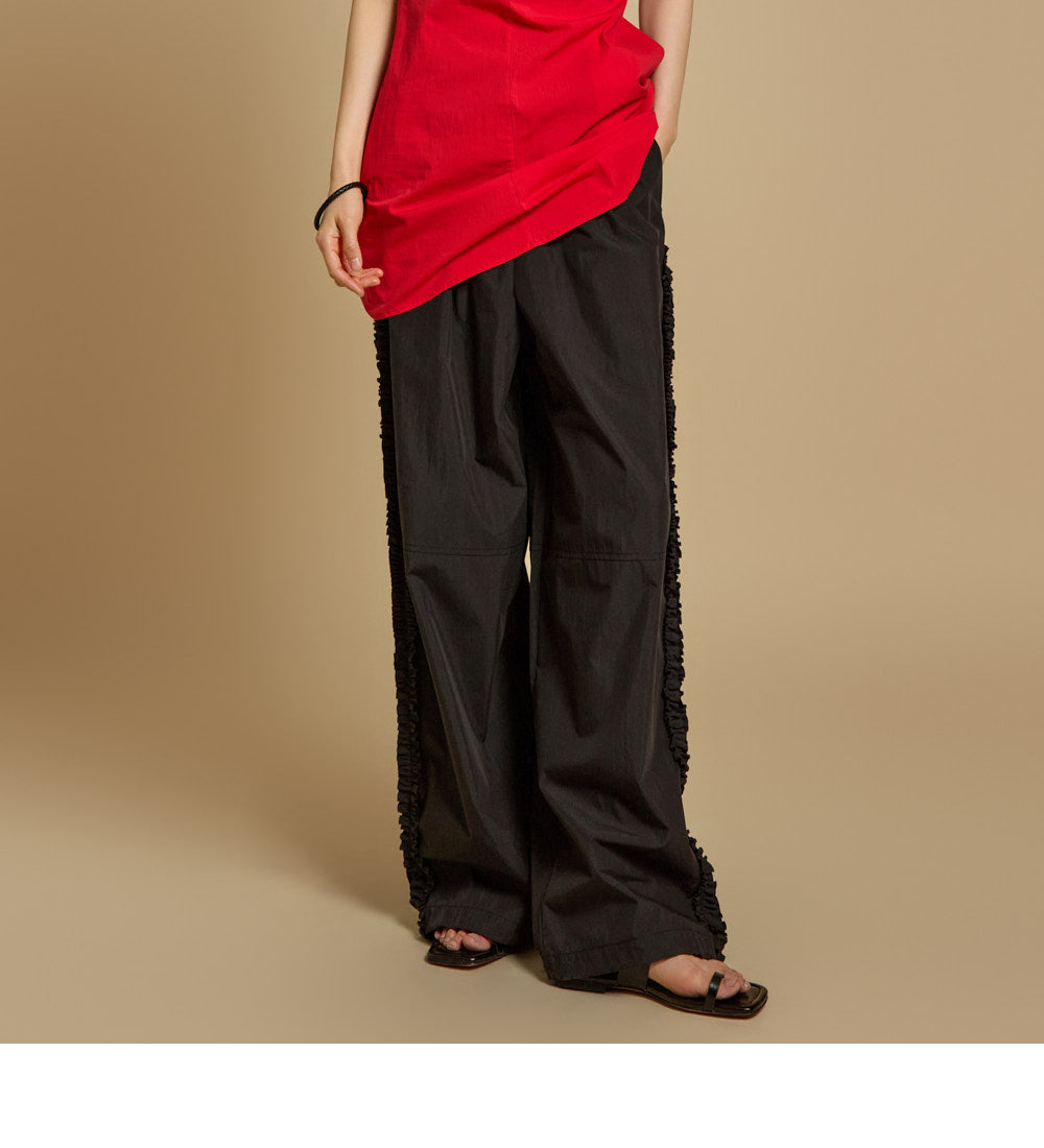 这款休闲裤采用棉和尼龙混纺面料制成,