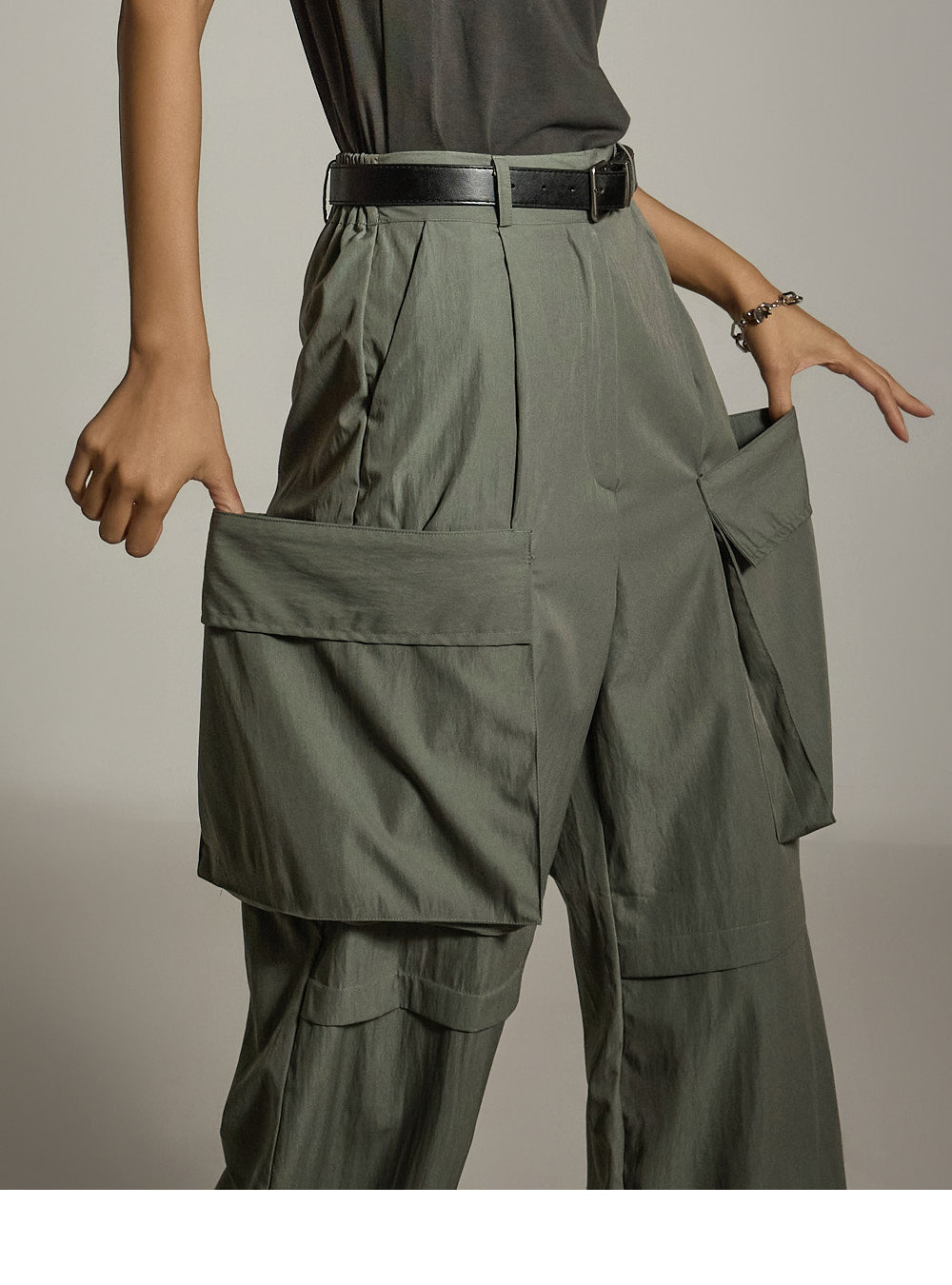 模特身高 173 厘米,穿着卡其色均码。