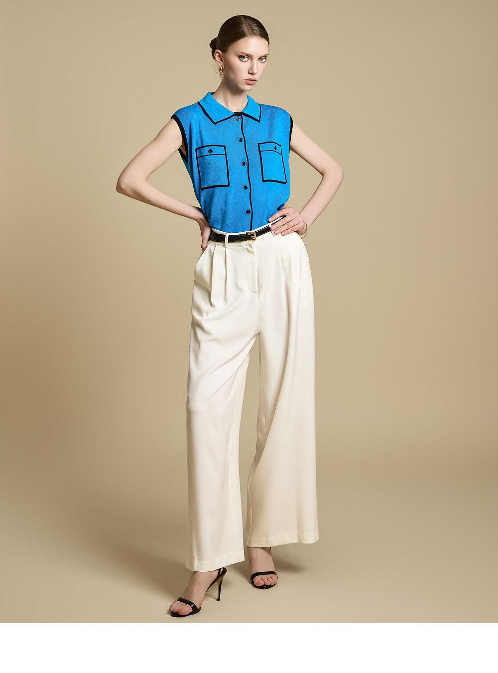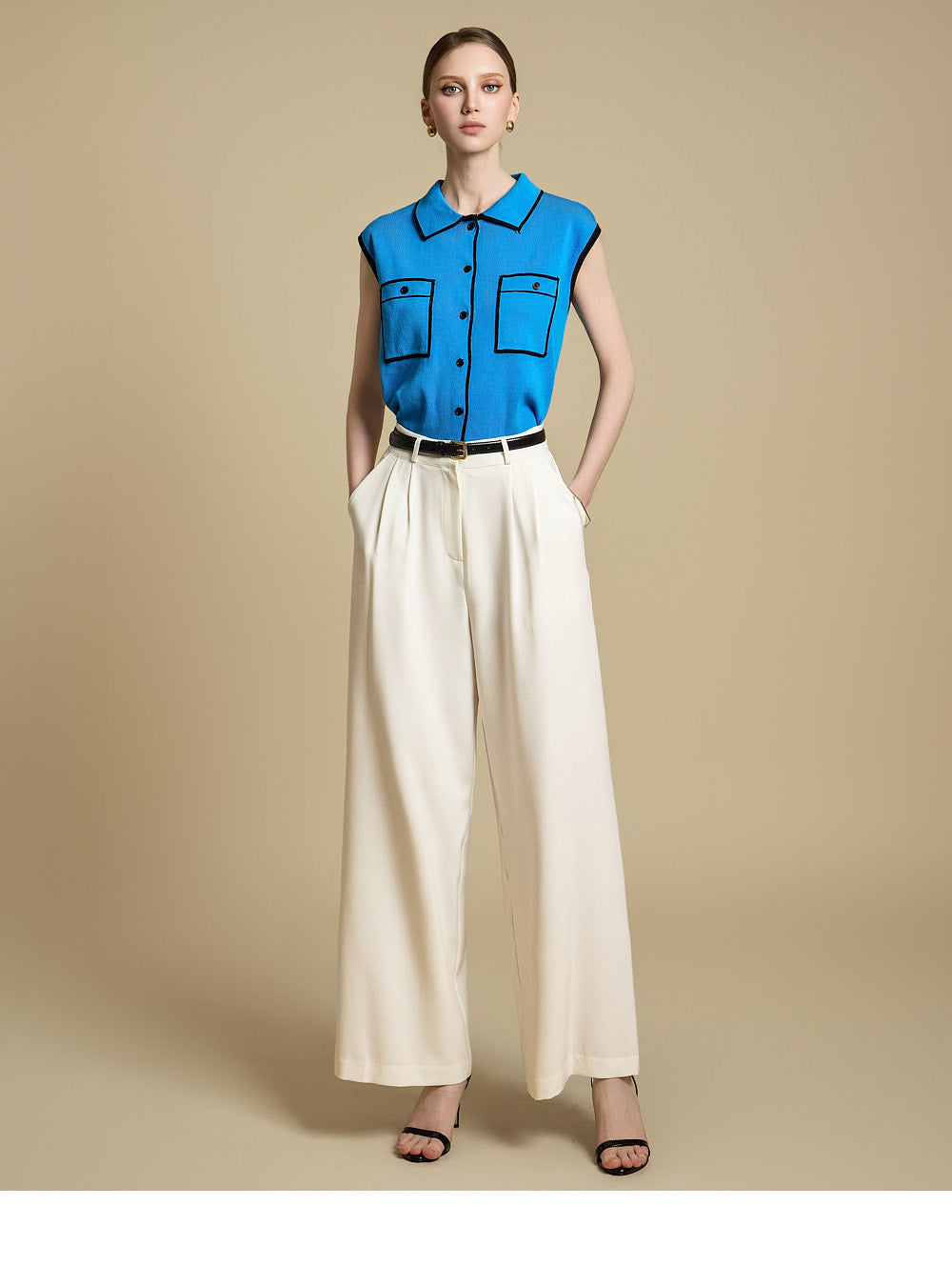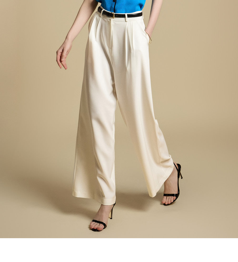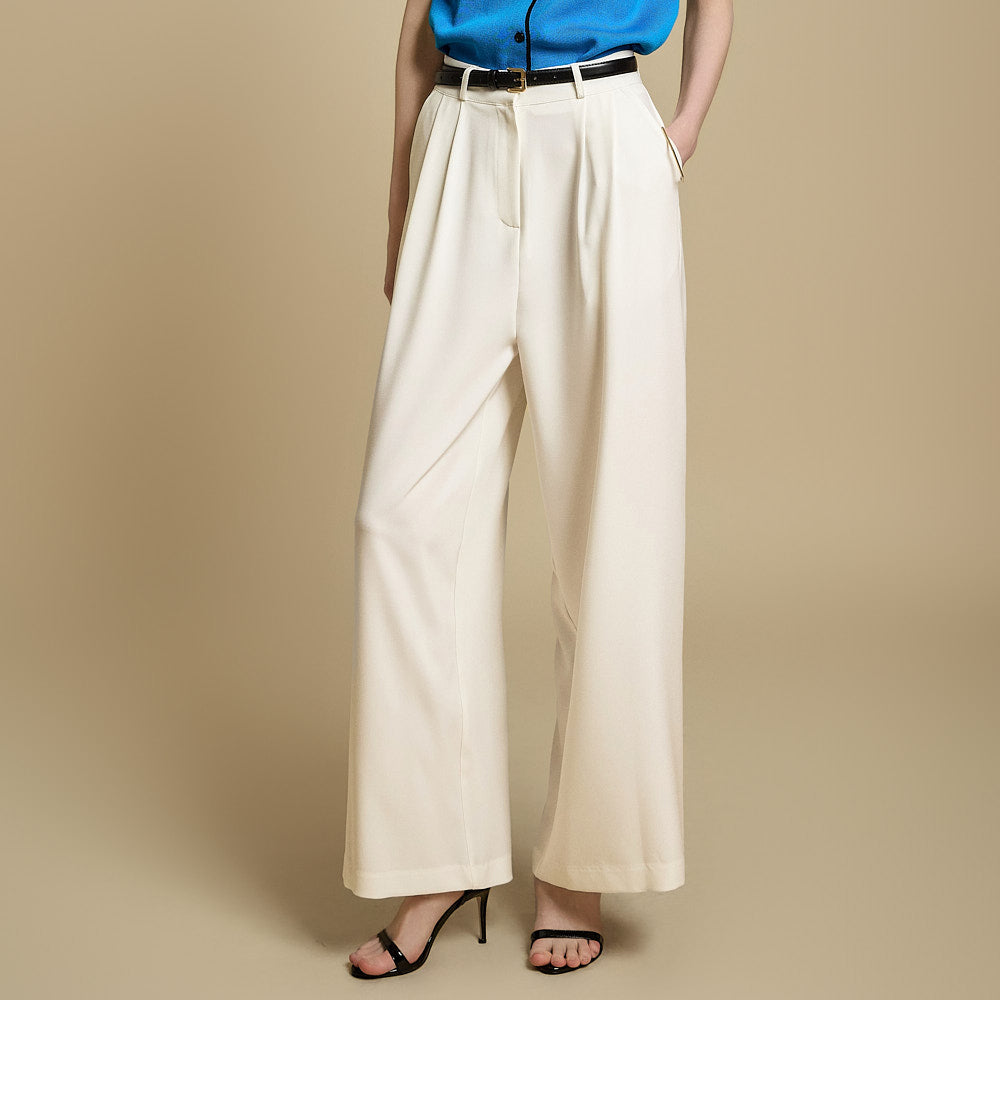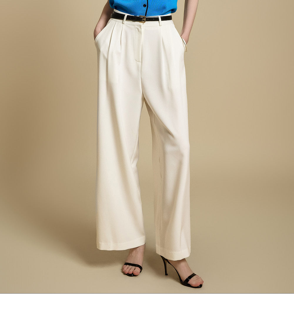宽腿廓形和褶饰细节自然修饰腿部线条,