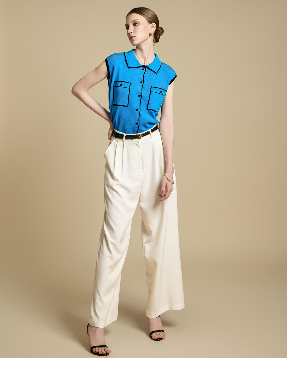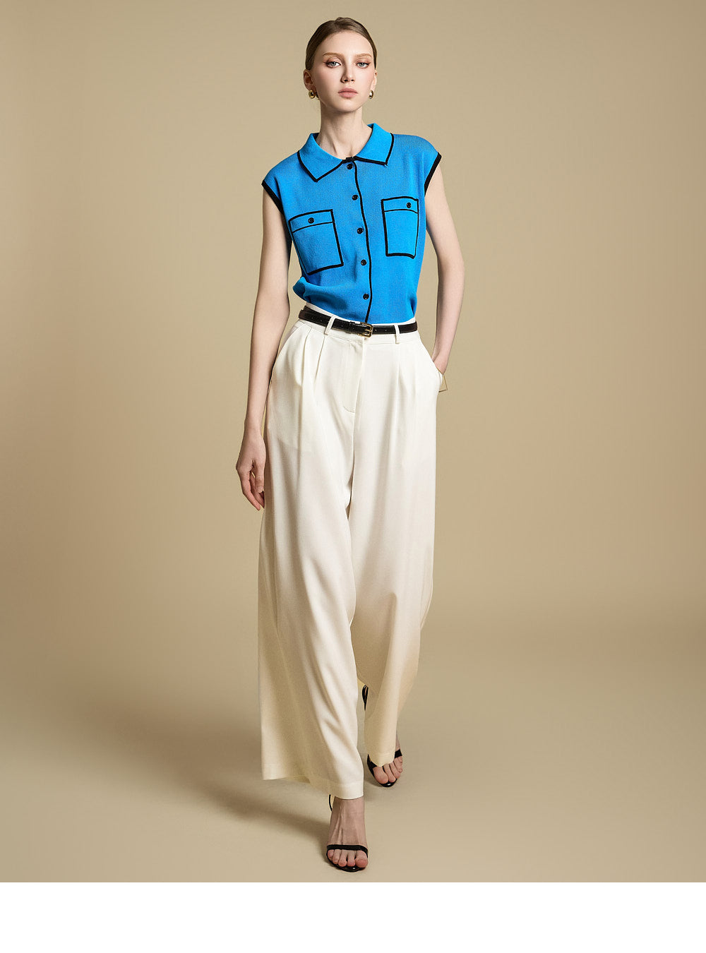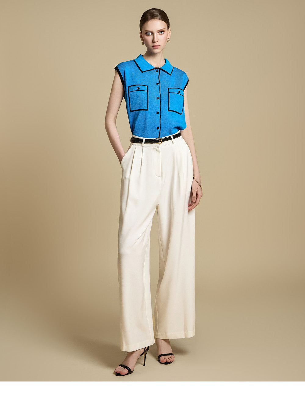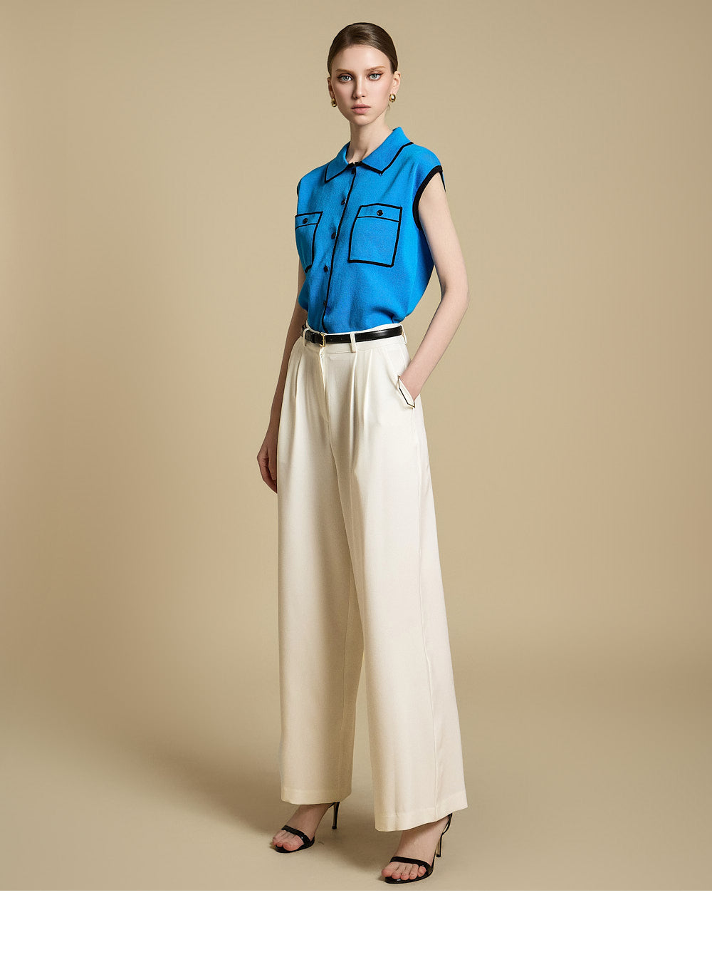 宽腿廓形和褶饰细节自然修饰腿部线条,