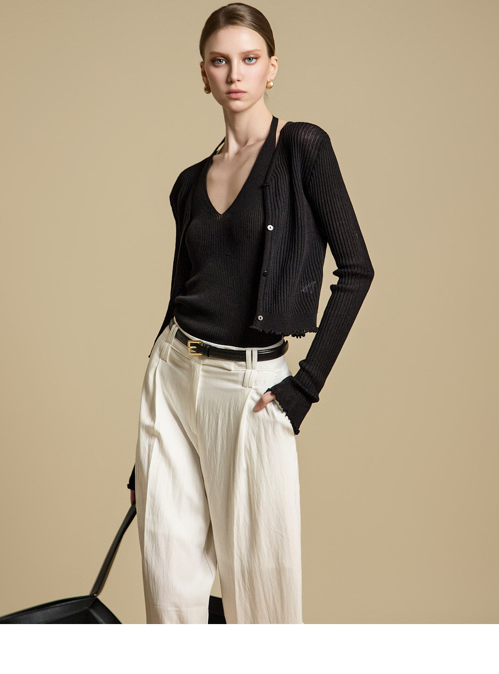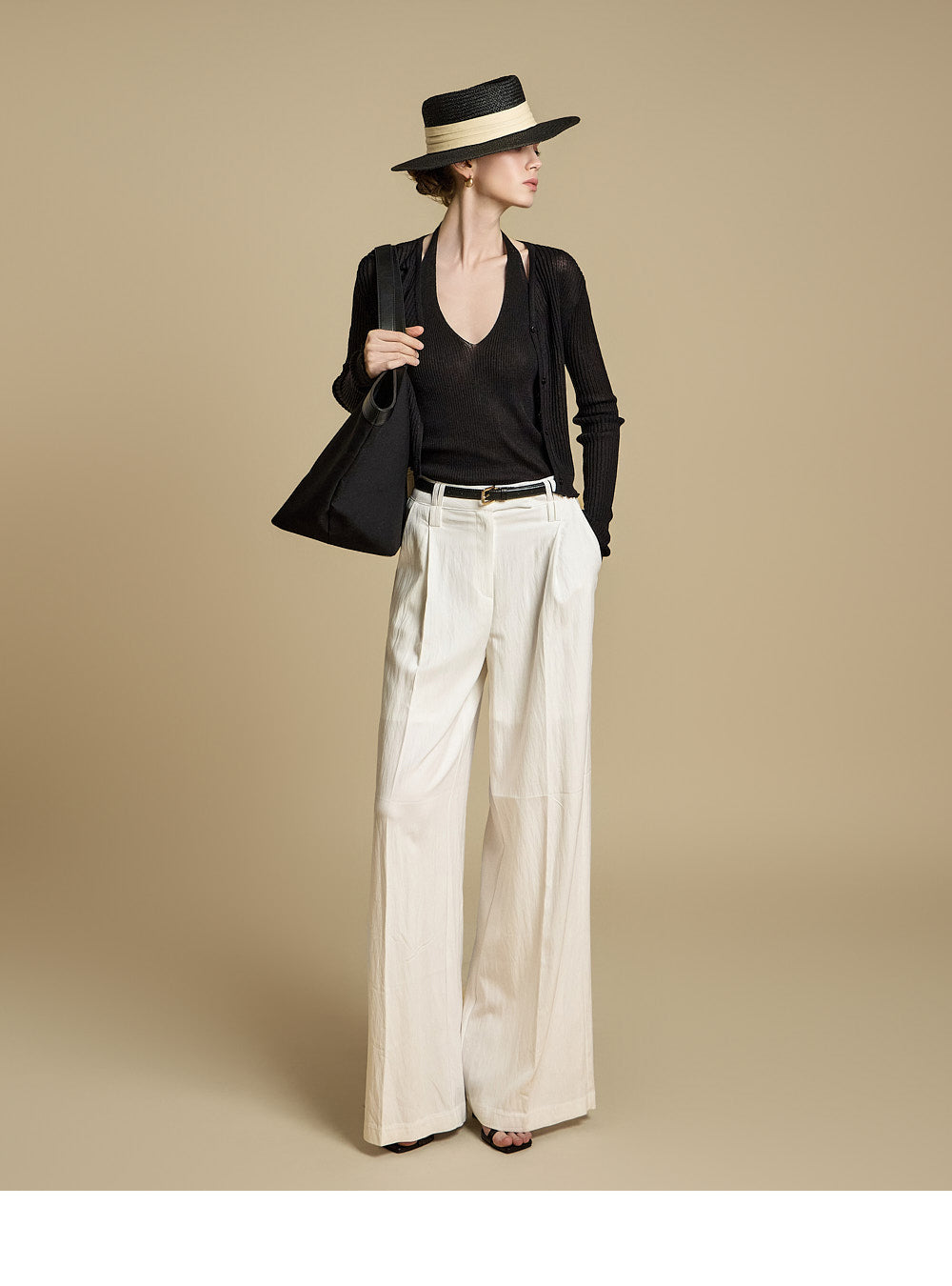 这些是由人造丝和尼龙混纺材料制成的休闲褶裥休闲裤,