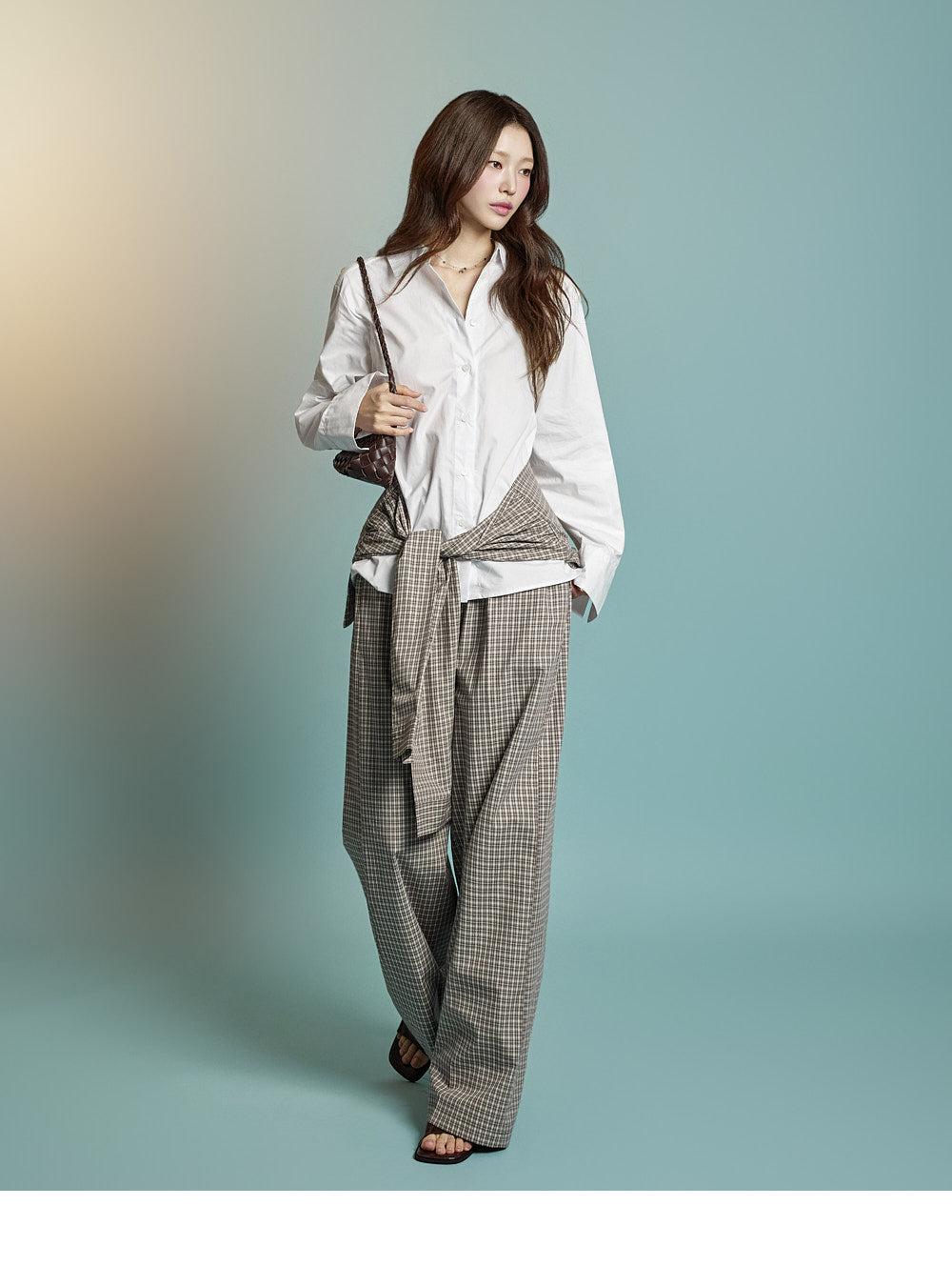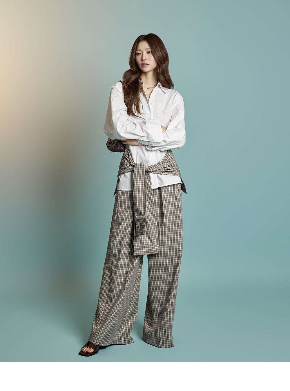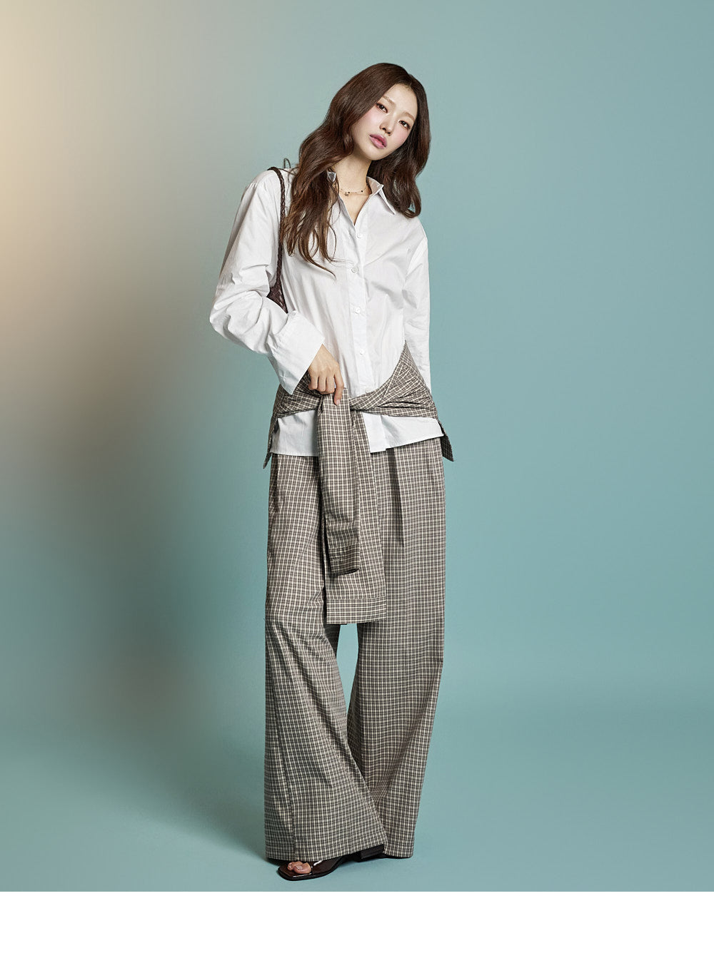 Model is 171cm tall, wearing ONE size in BROWN.