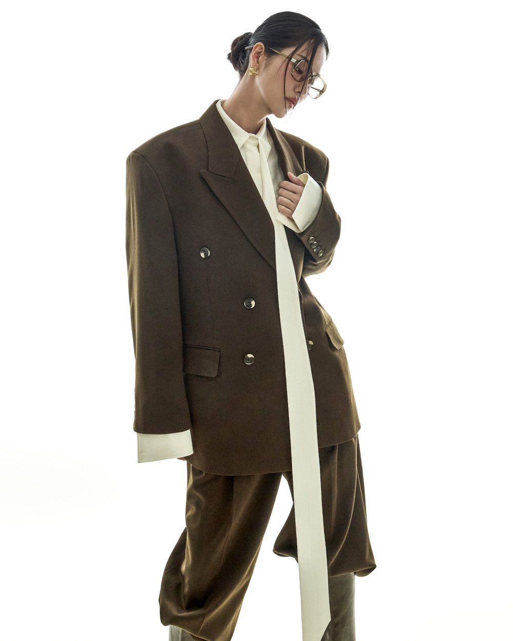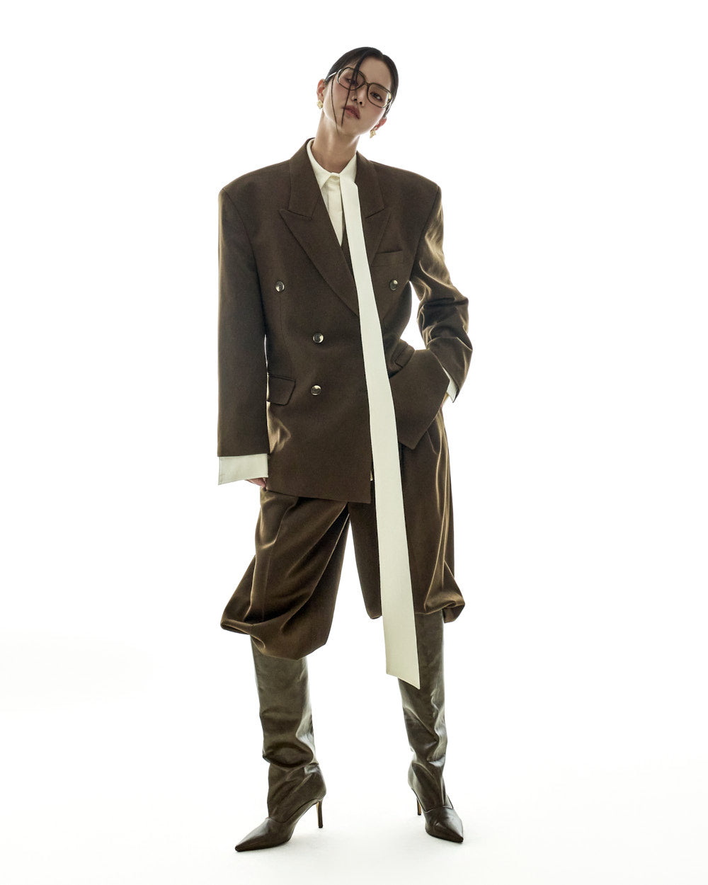 Model is 173cm tall and wearing size S in KHAKI BROWN.