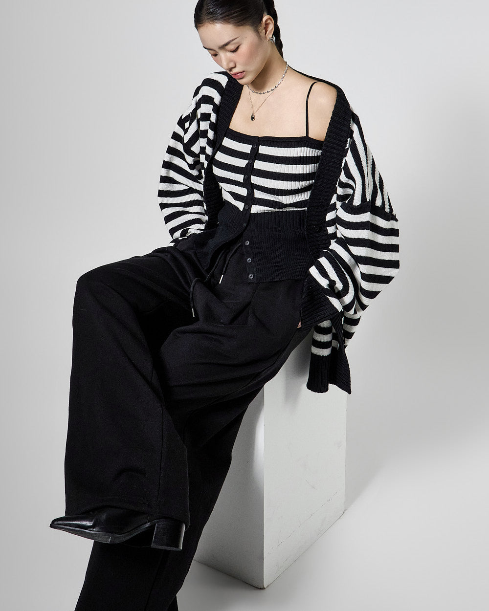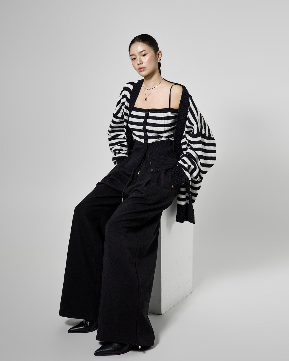 The 171cm model is wearing size ONE in BLACK.