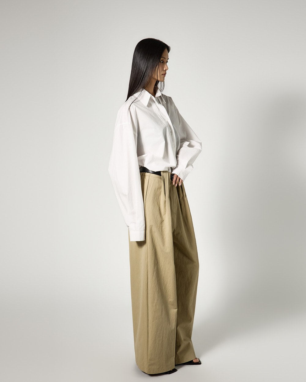 These are wide pintuck pants with a daily vibe.