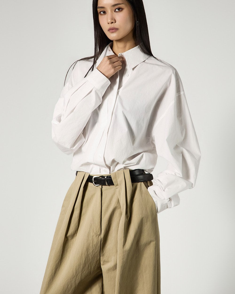 The front pintuck details add natural volume,