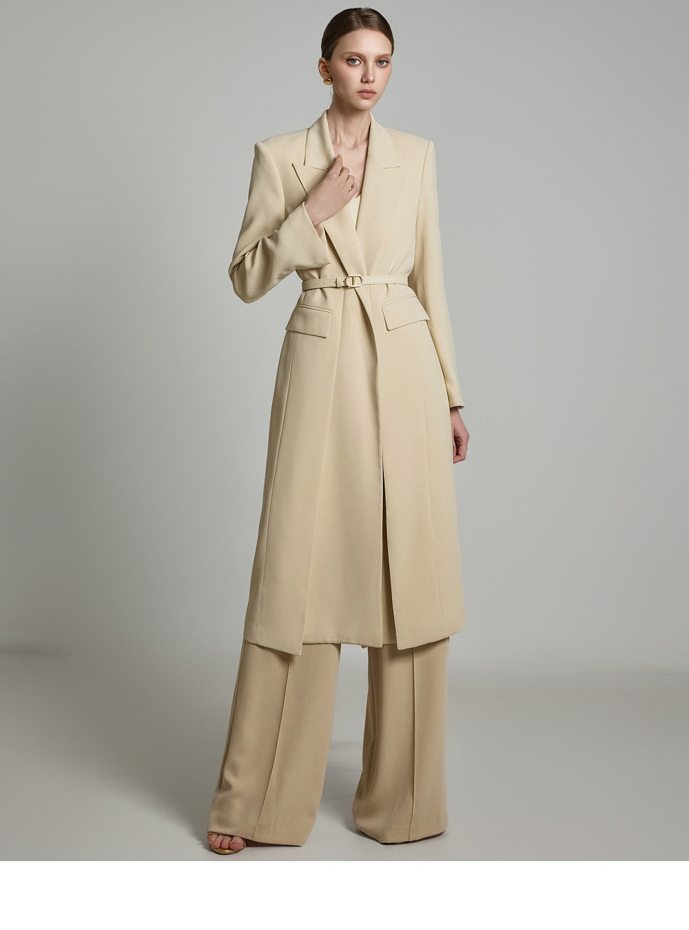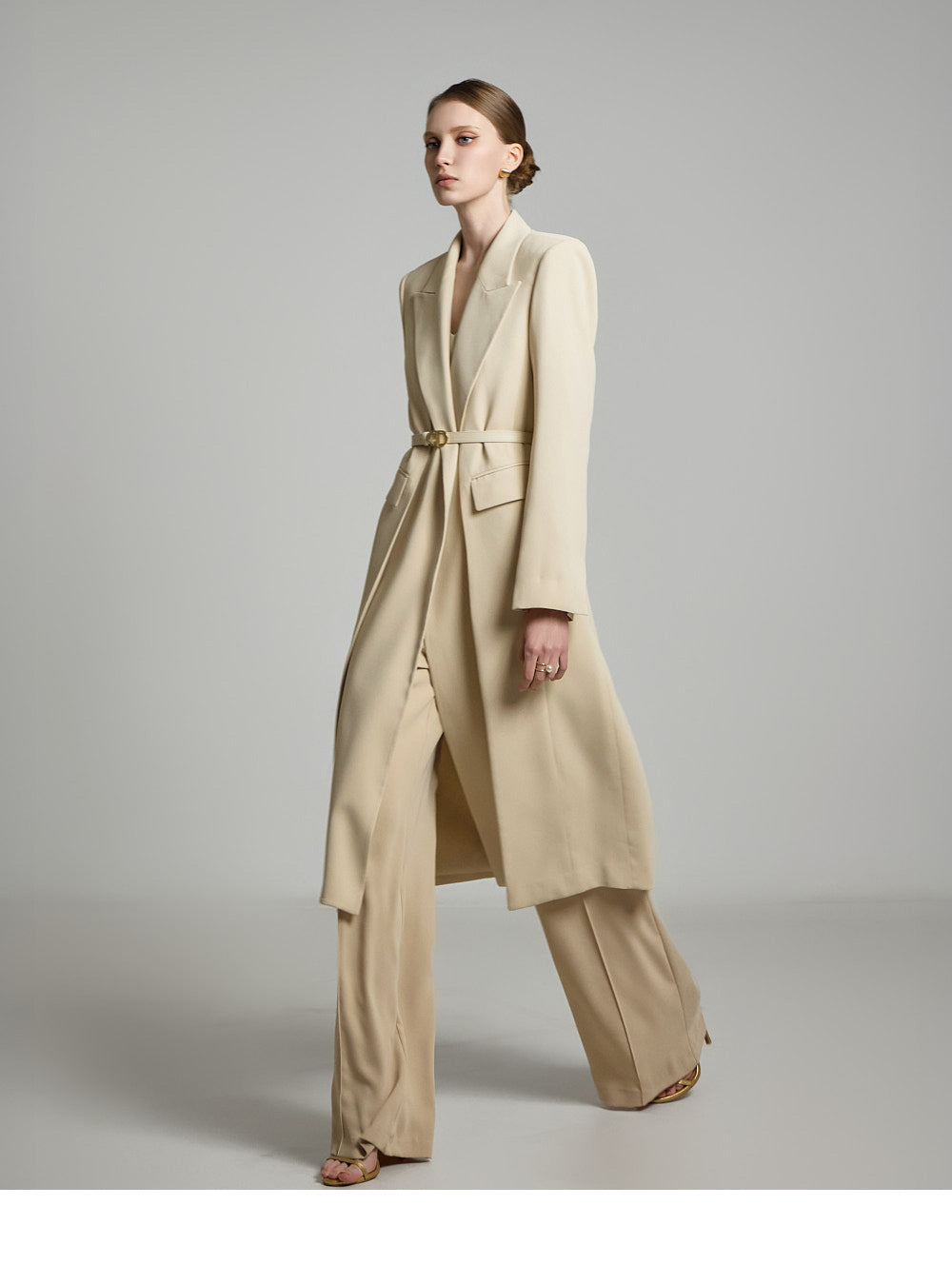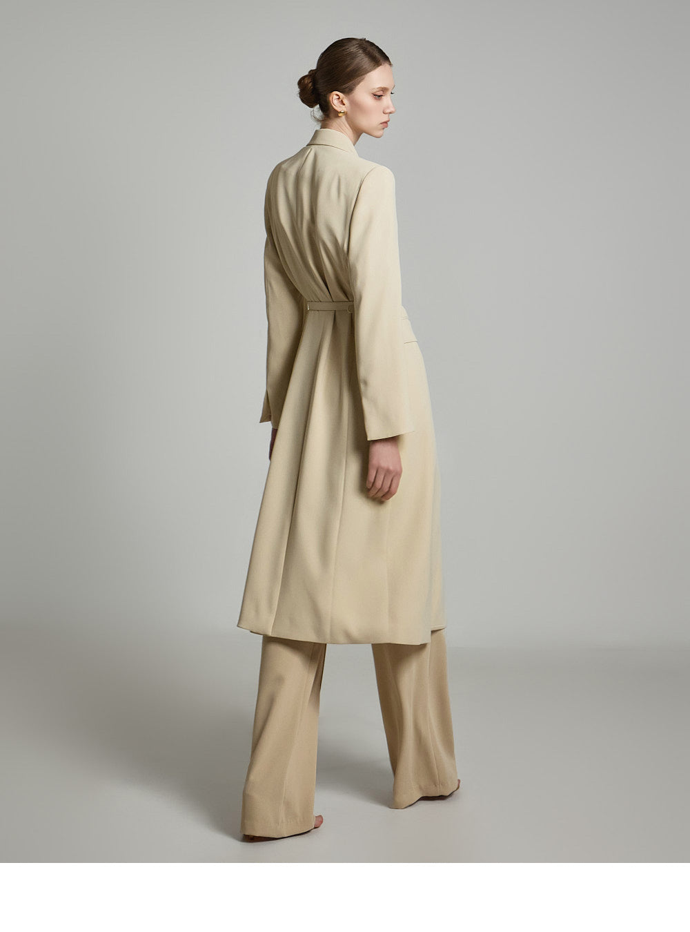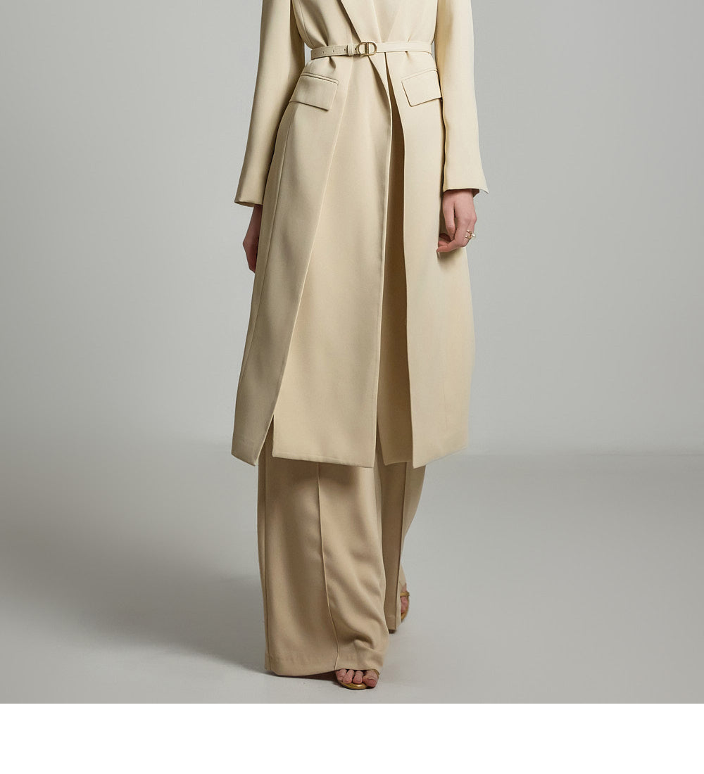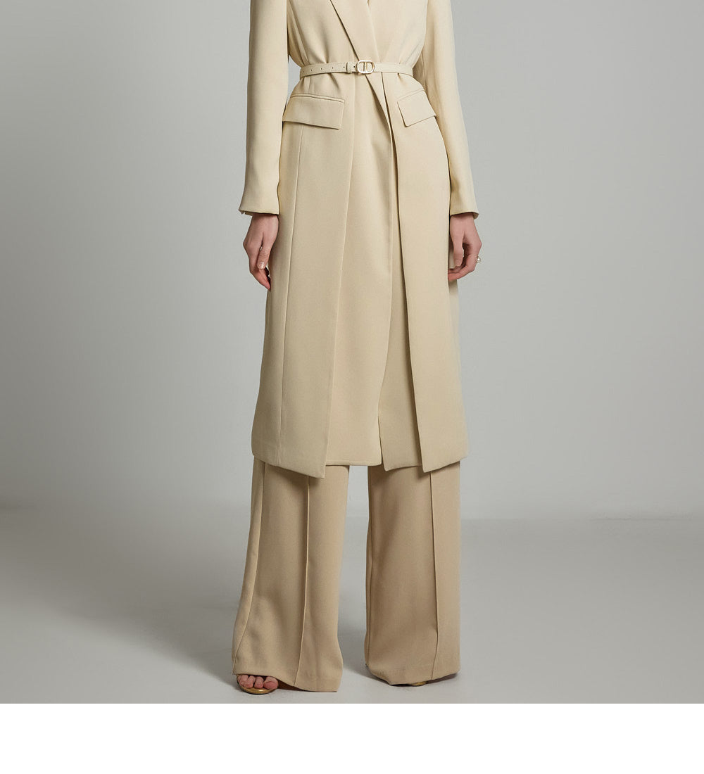 模特身高 174 厘米,穿着米色 S 码的衣服。