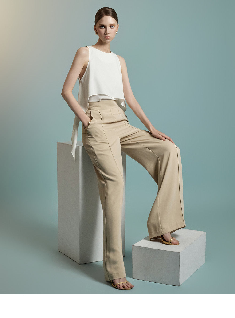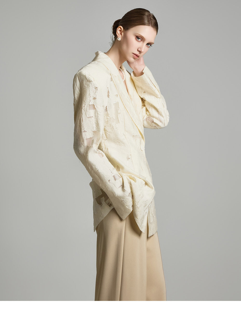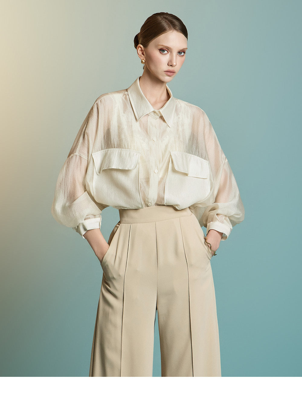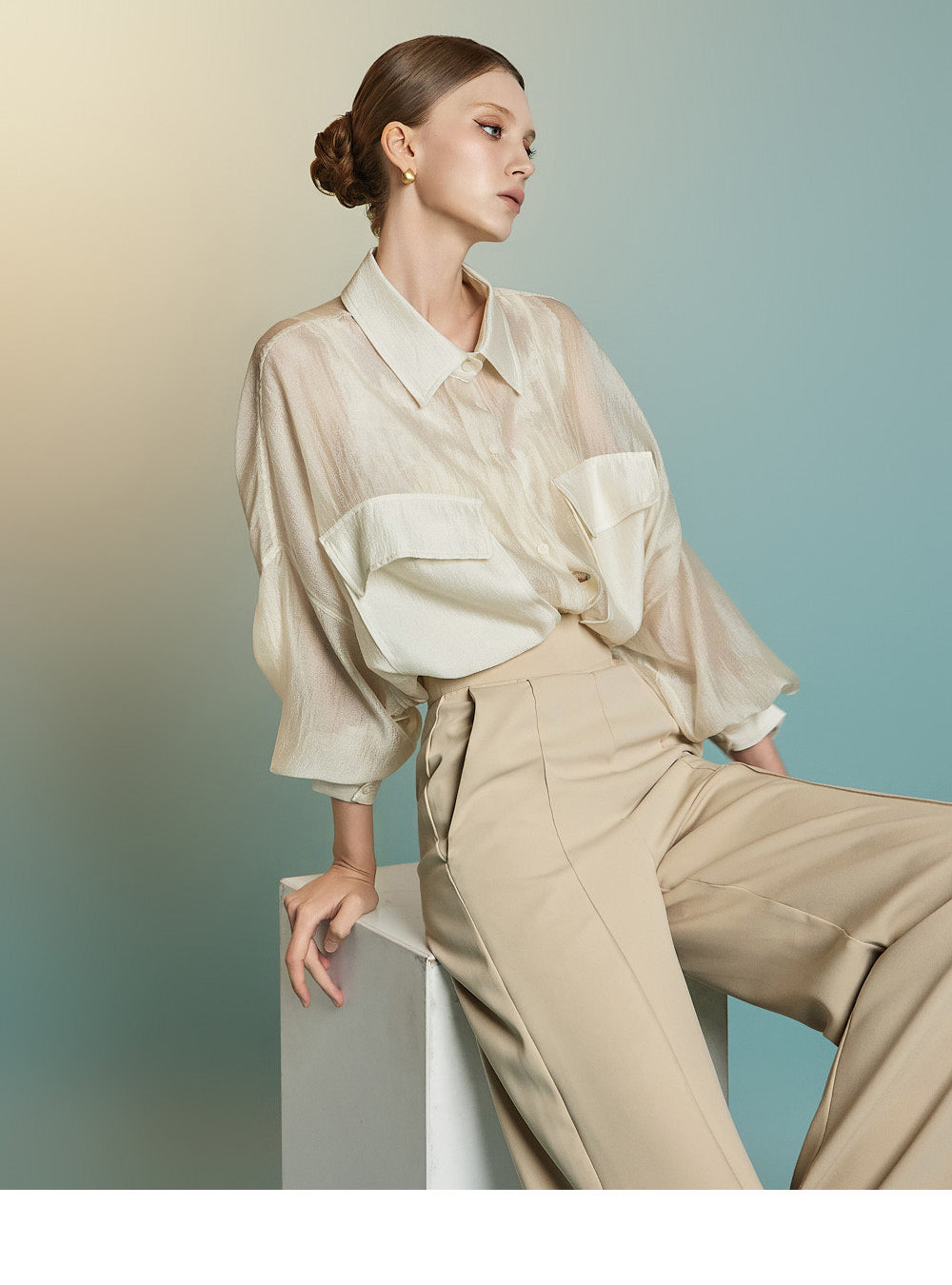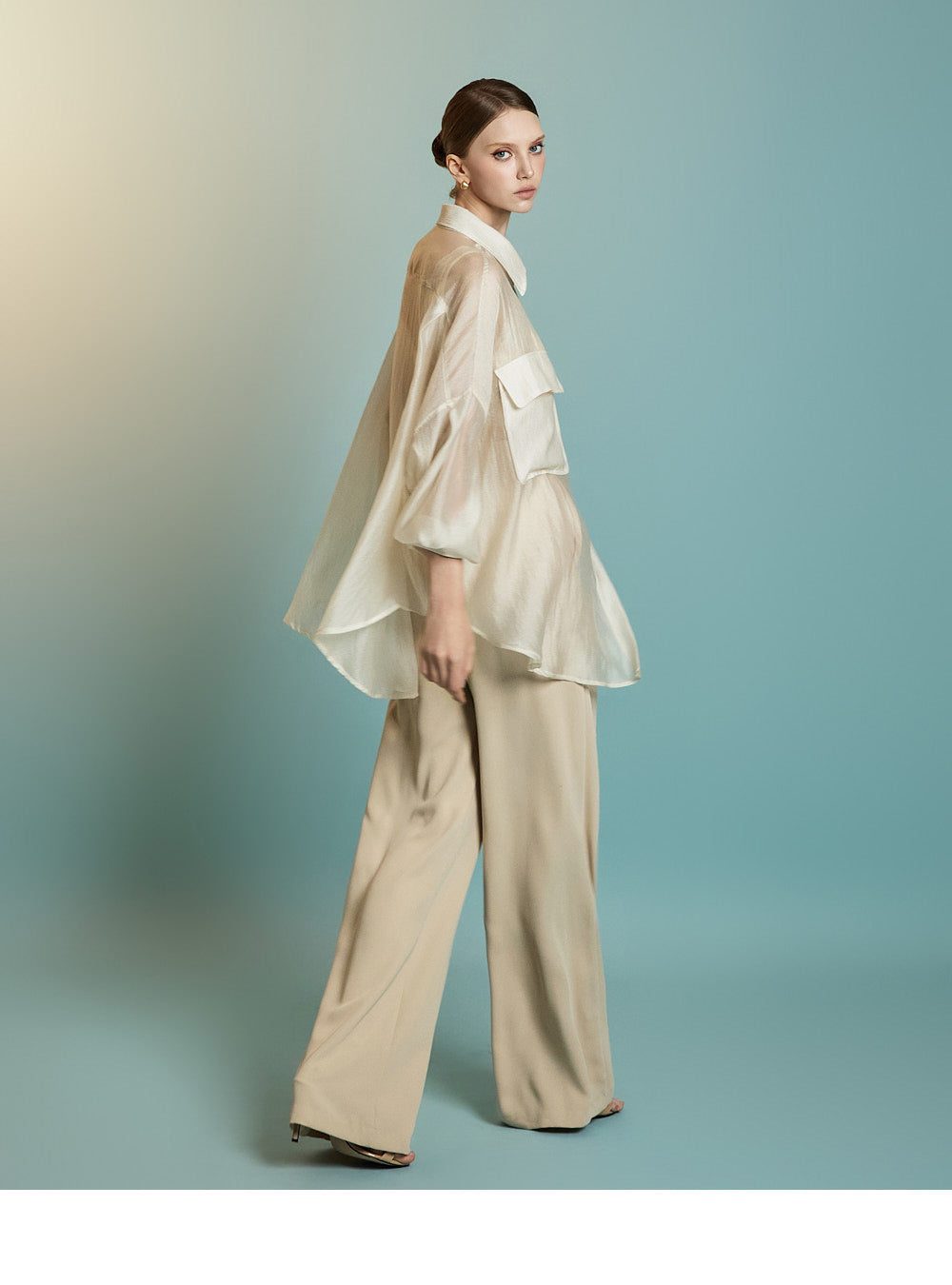 模特身高 174 厘米,穿着米色 S 码的衣服。