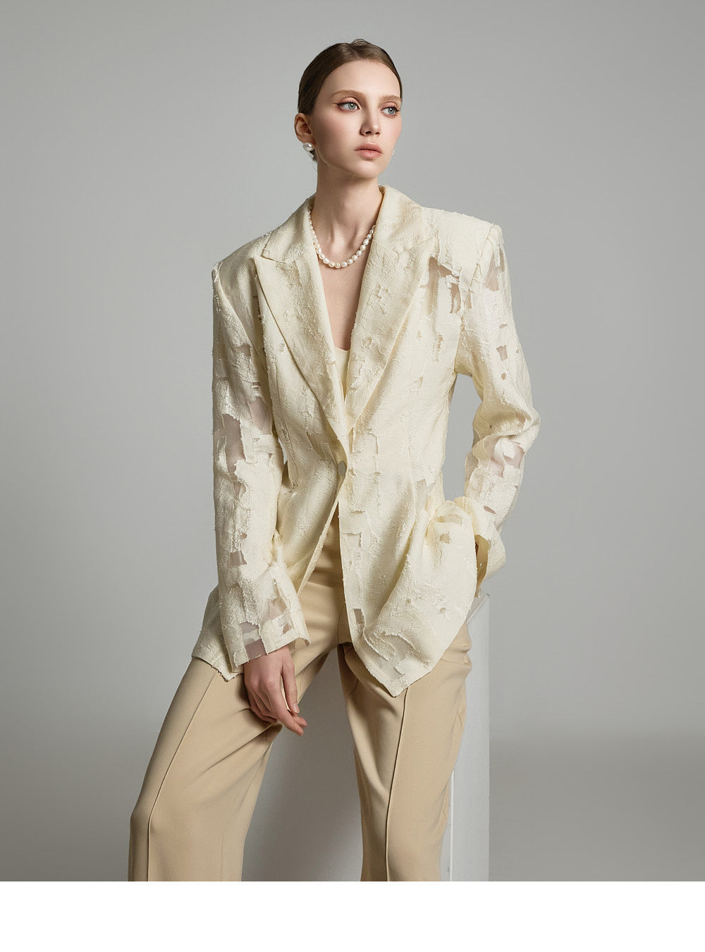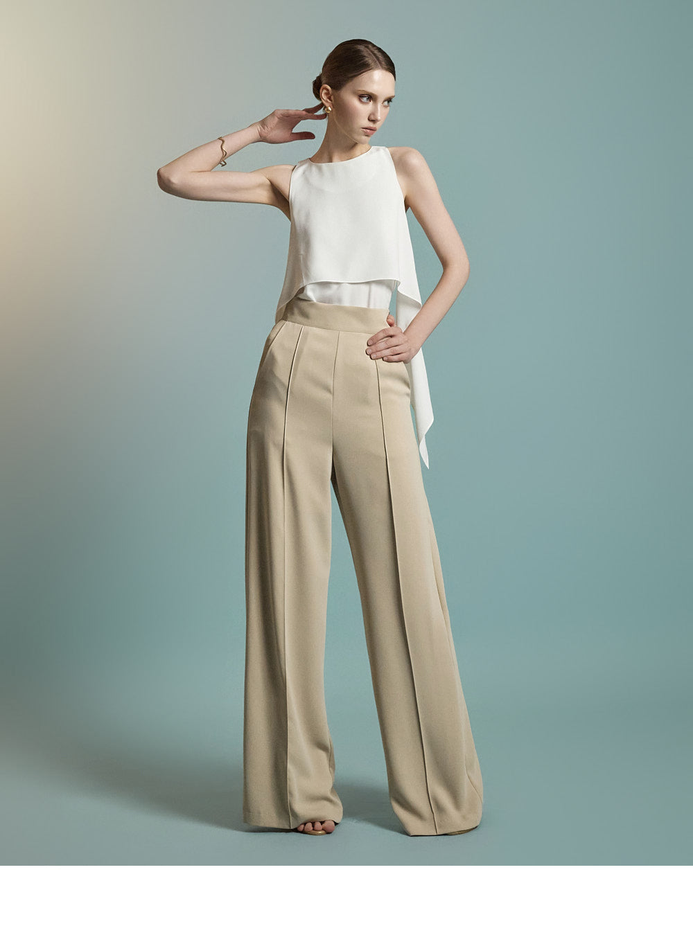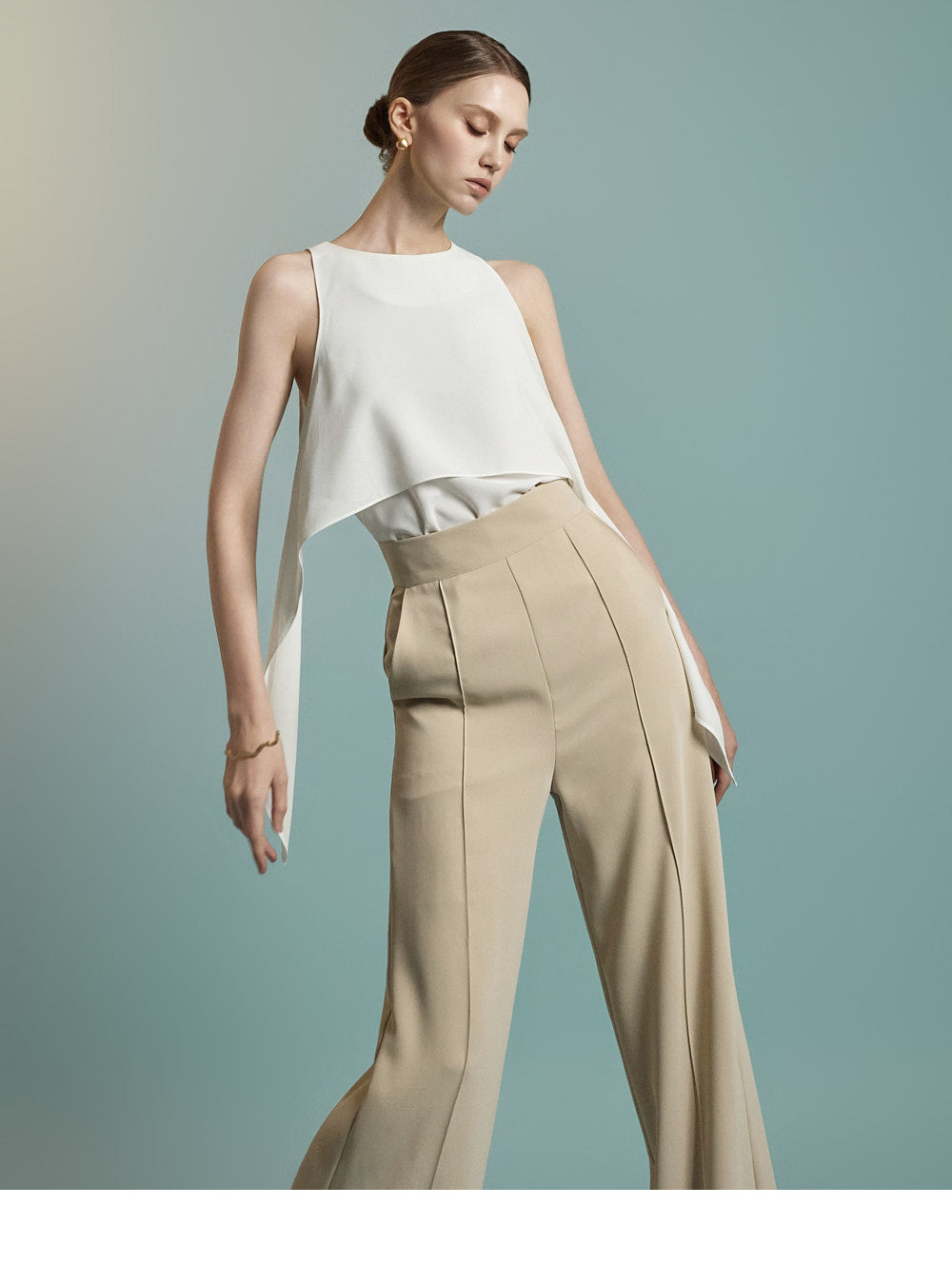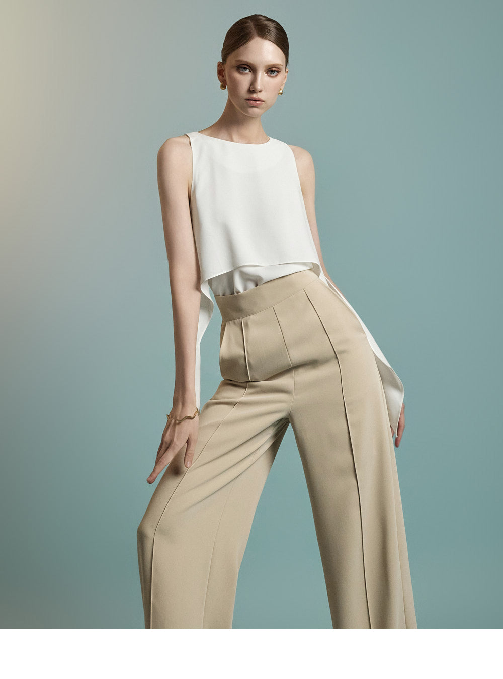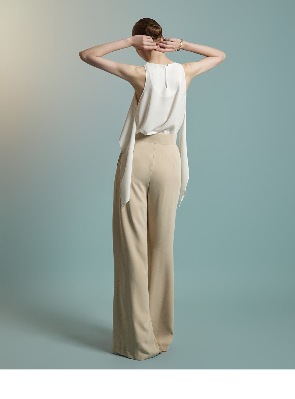 模特身高 174 厘米,穿着米色 S 码的衣服。
