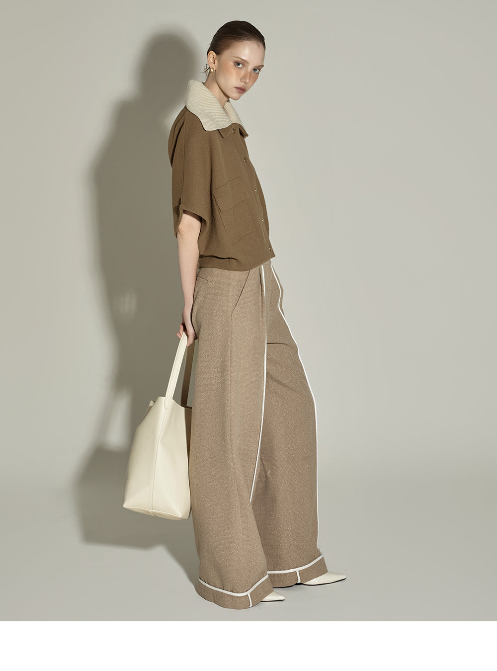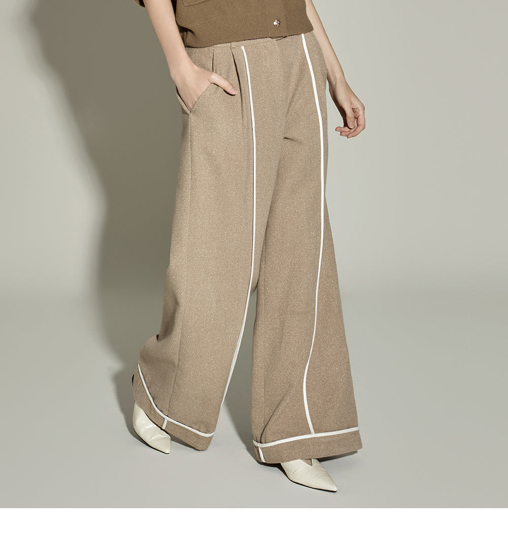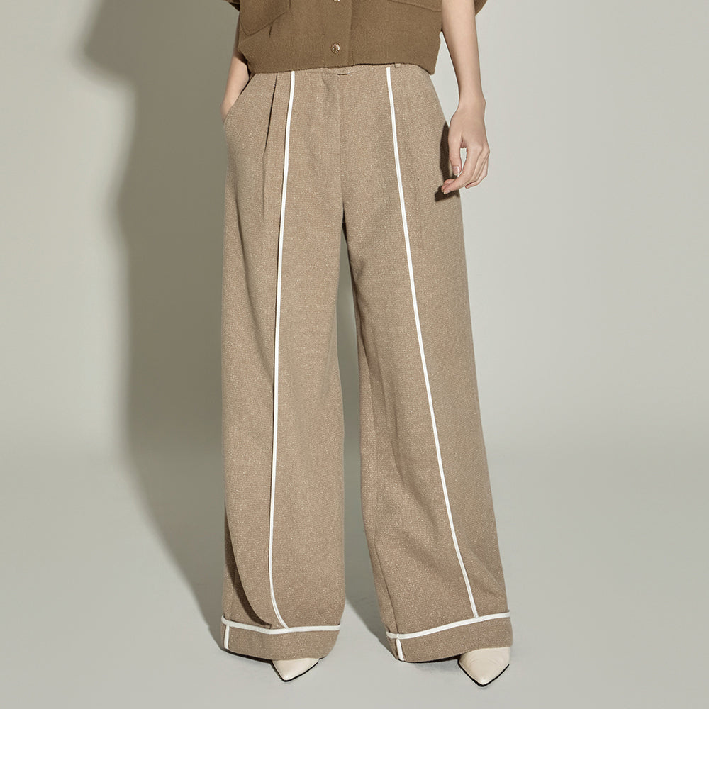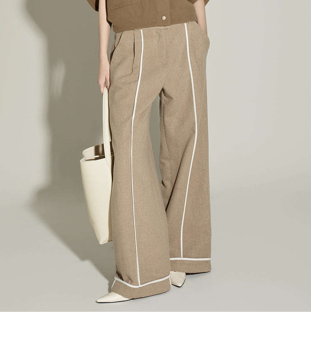These contrast piping wide pants offer a sophisticated aesthetic.