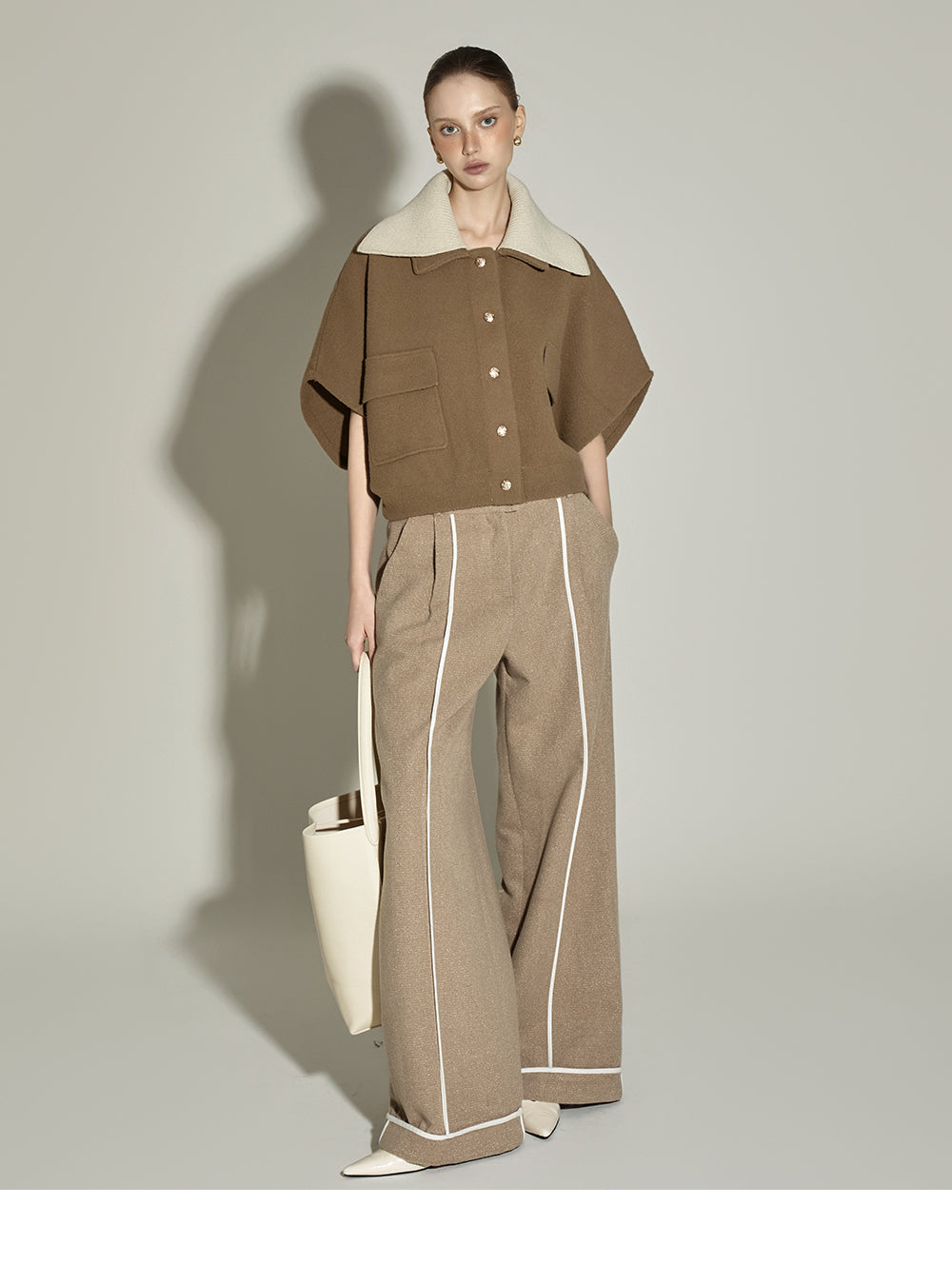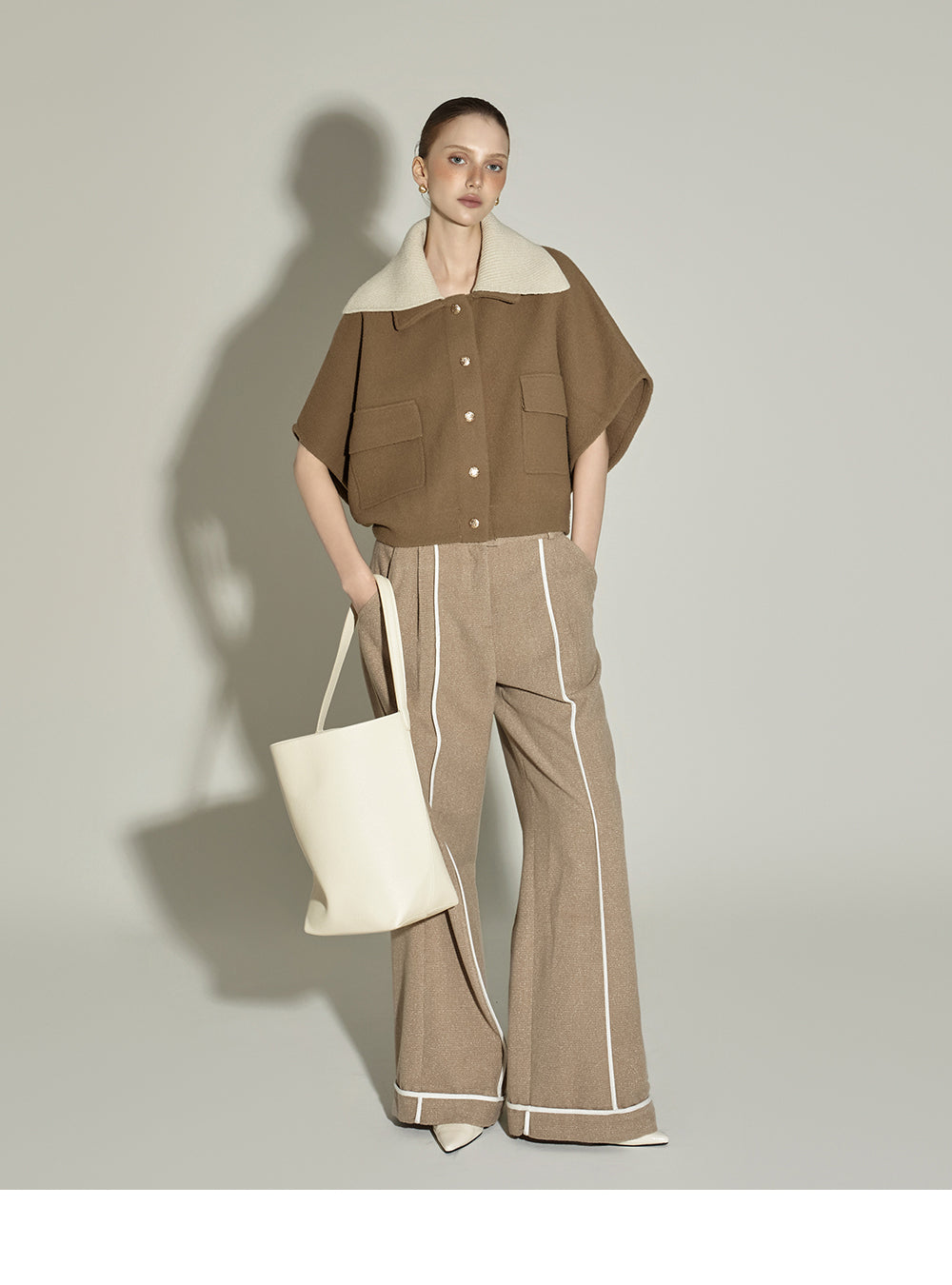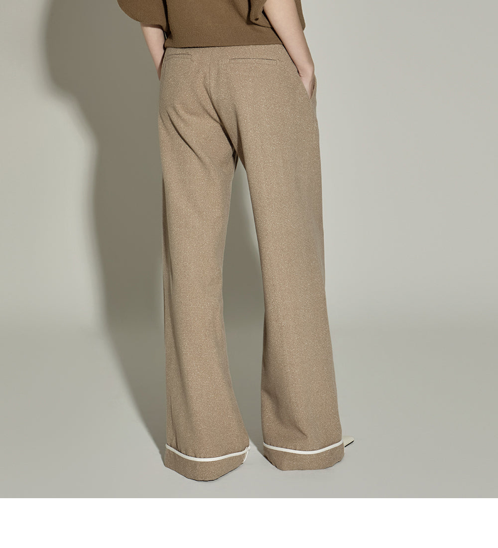 These contrast piping wide pants offer a sophisticated aesthetic.