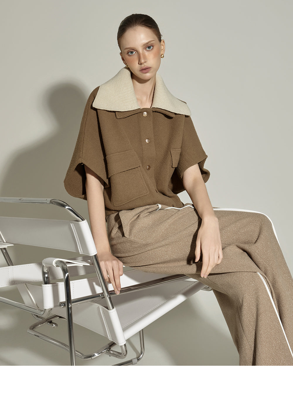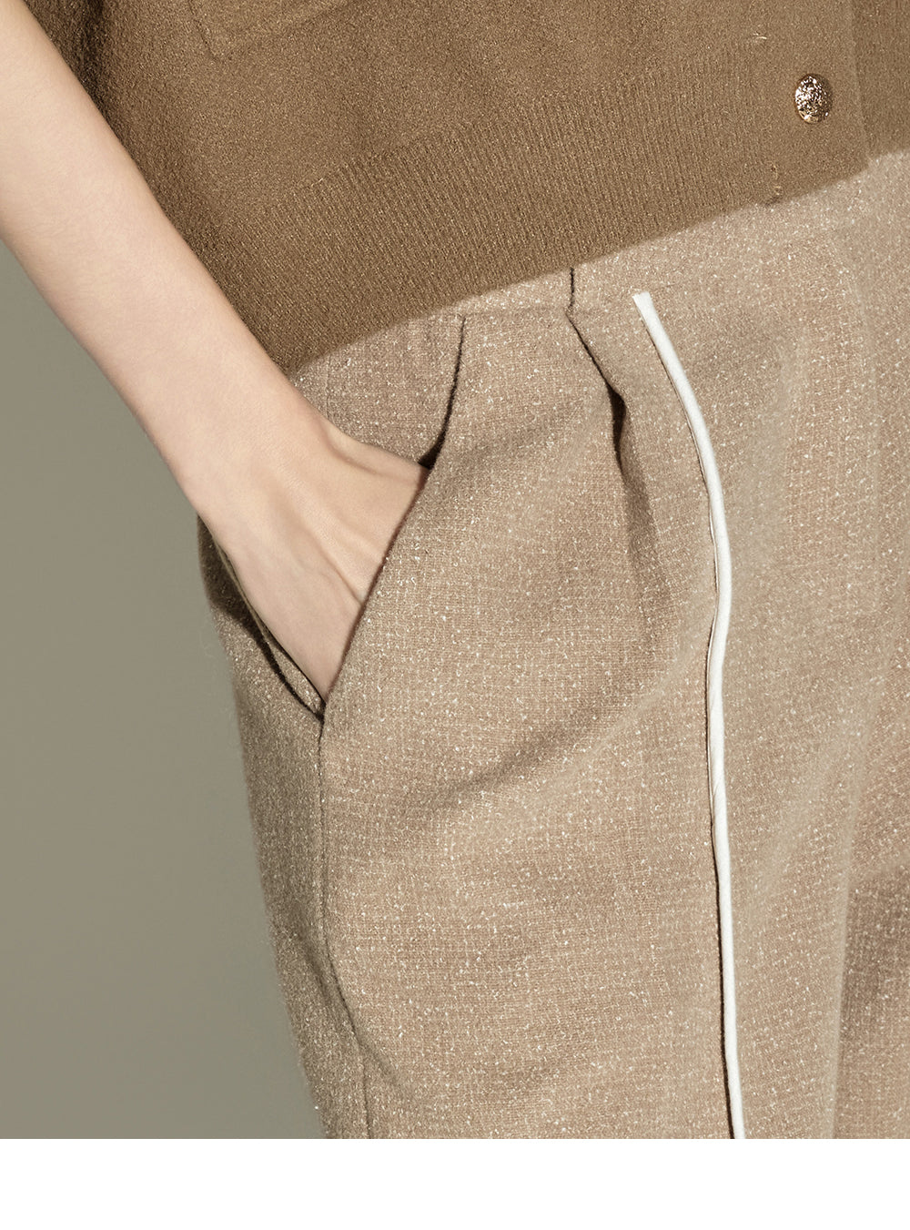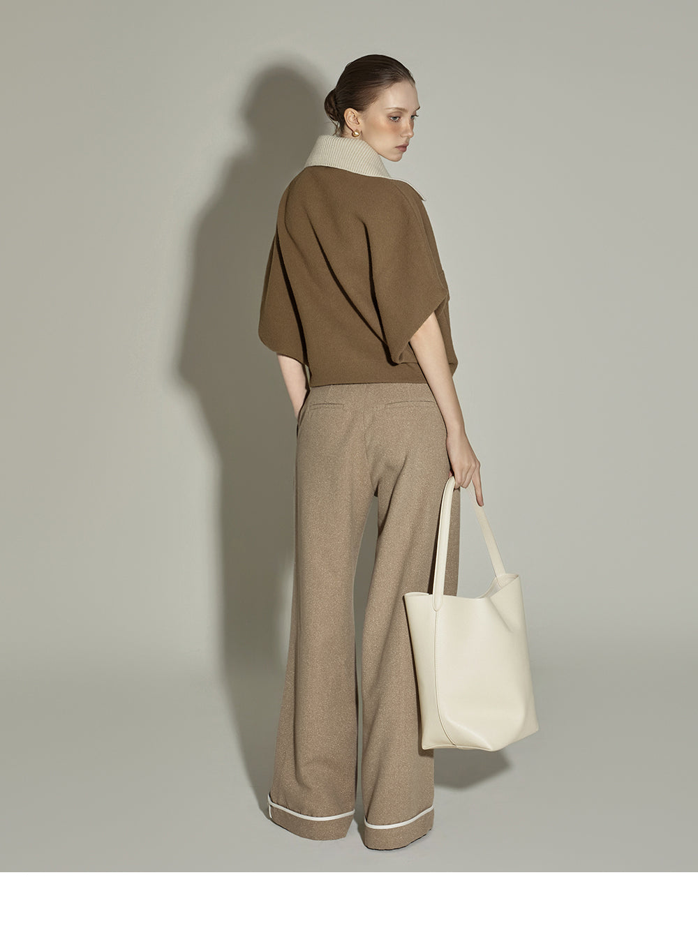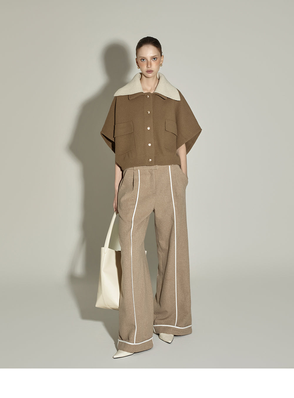 These contrast piping wide pants offer a sophisticated aesthetic.