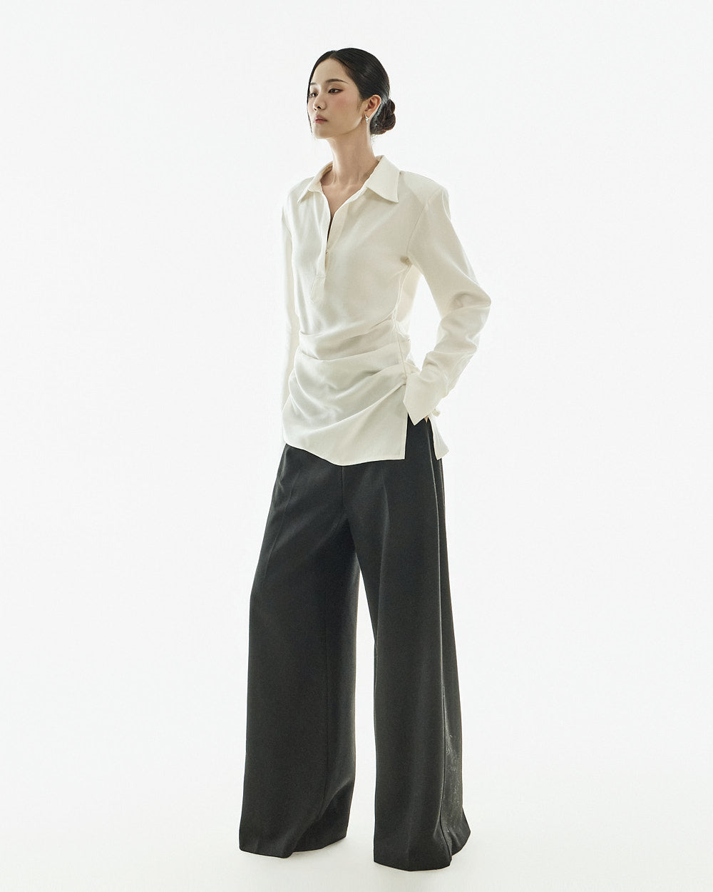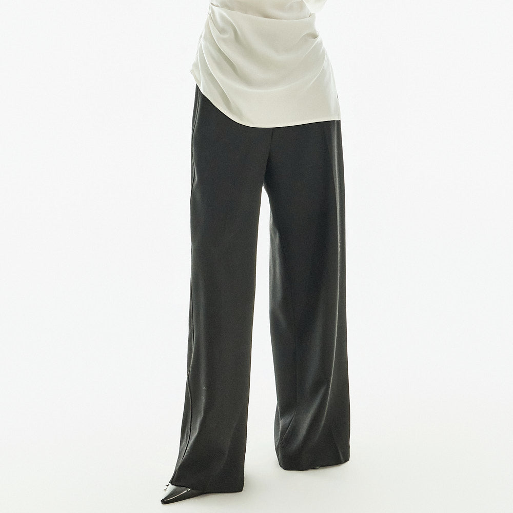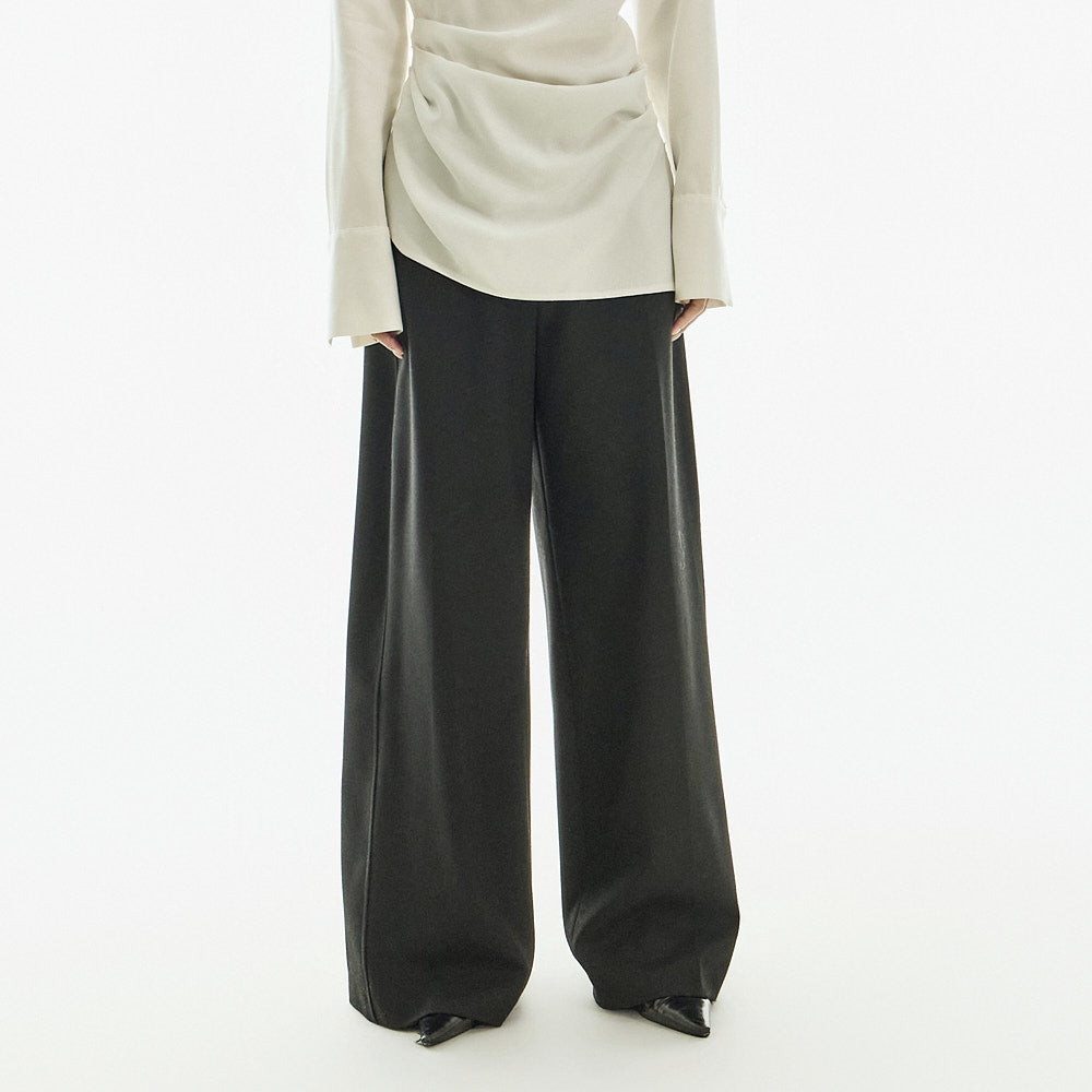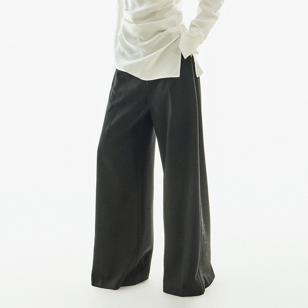 These modern, pintuck wide slacks are crafted from a blend of polyester,