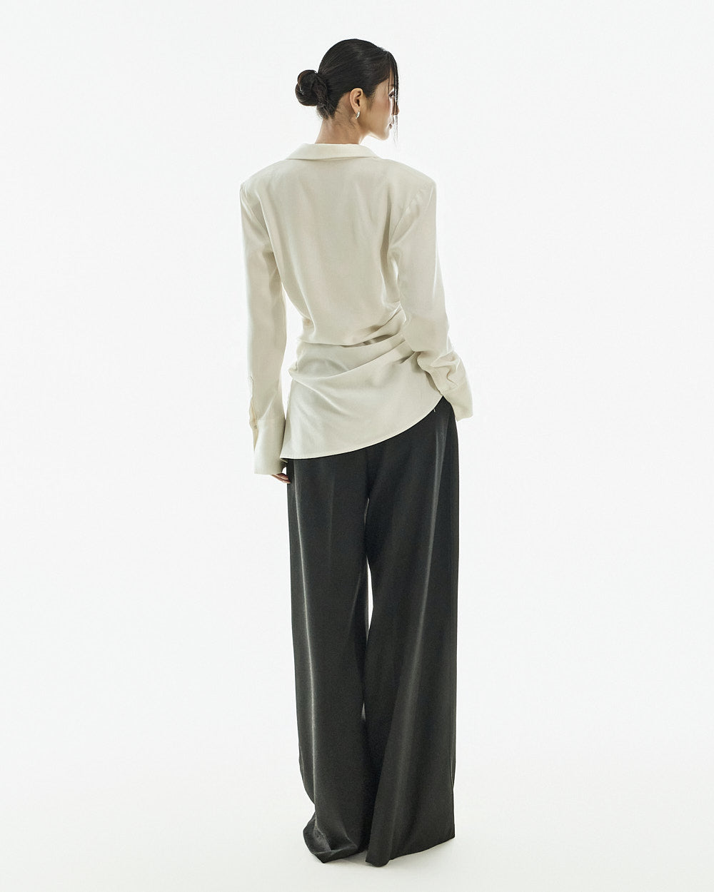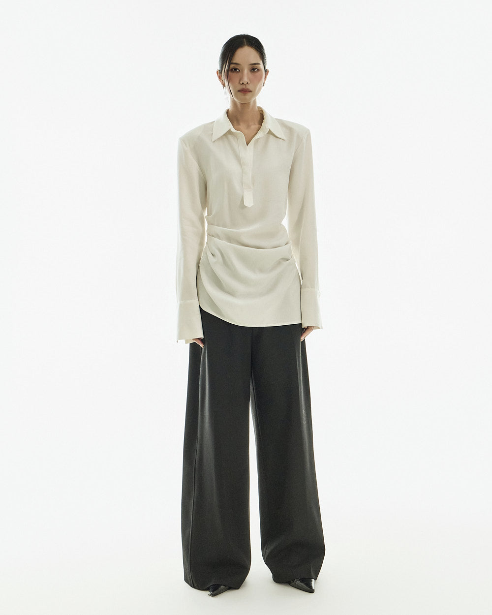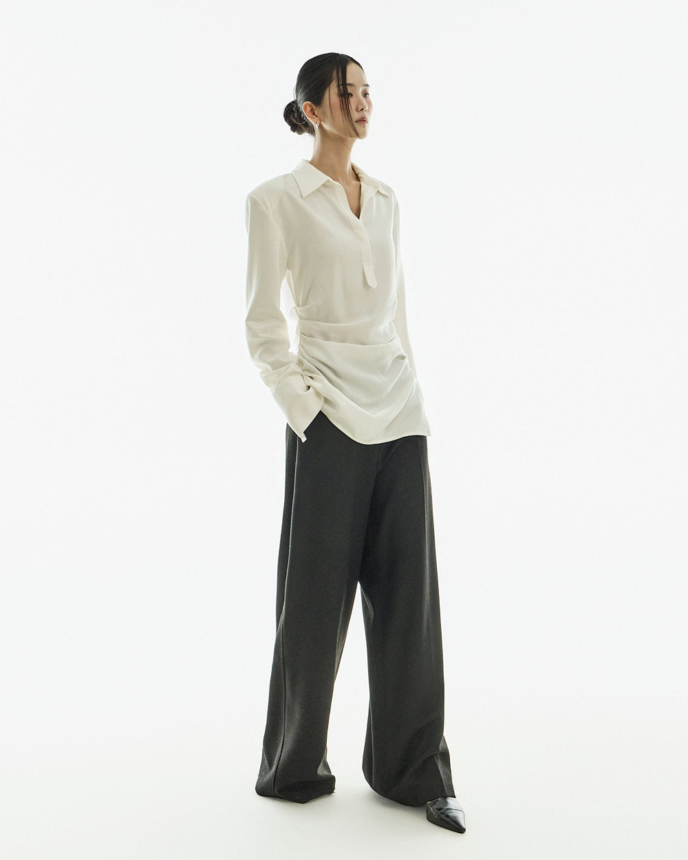 These modern, pintuck wide slacks are crafted from a blend of polyester,