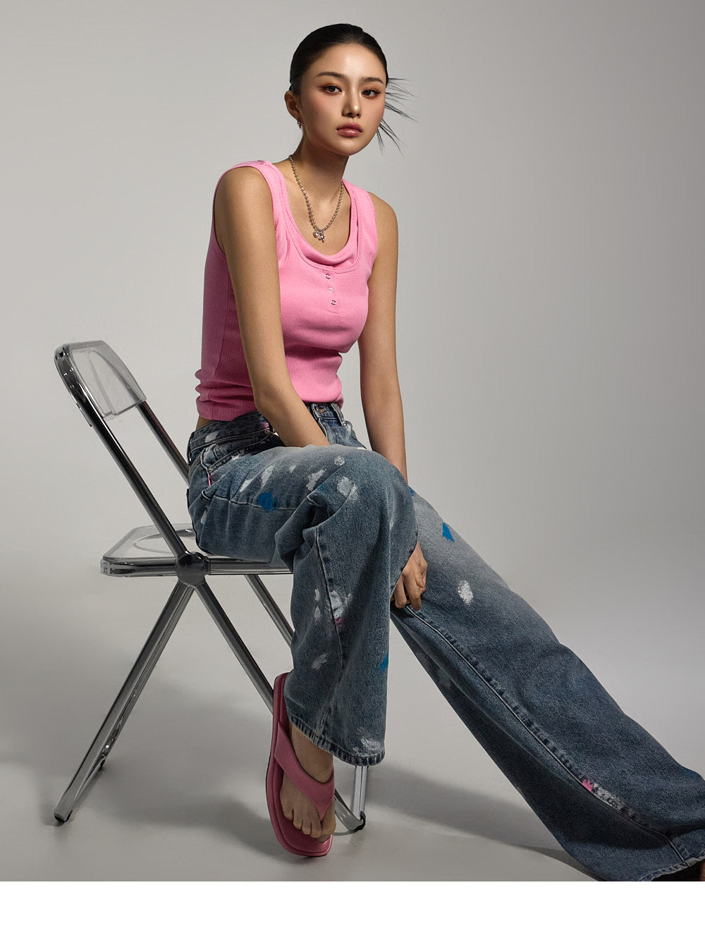 模特身高 171 厘米,穿着浅蓝色 S 码的衣服。