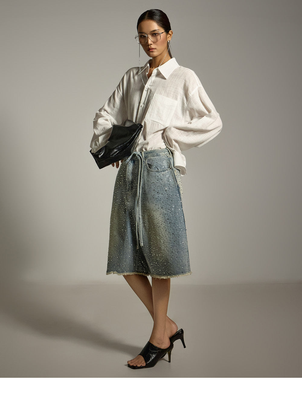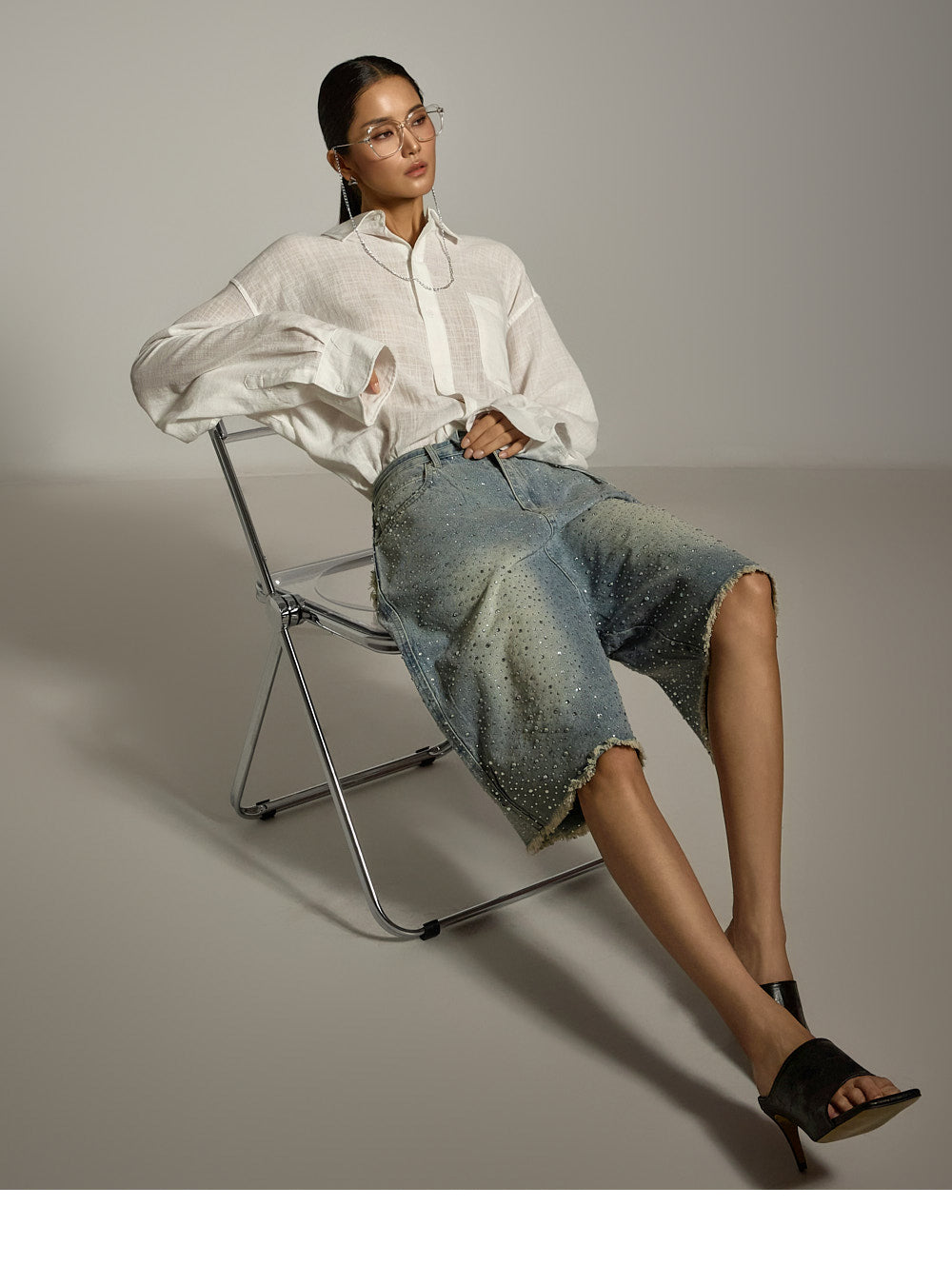 模特身高 173 厘米,穿浅蓝色 M 码。