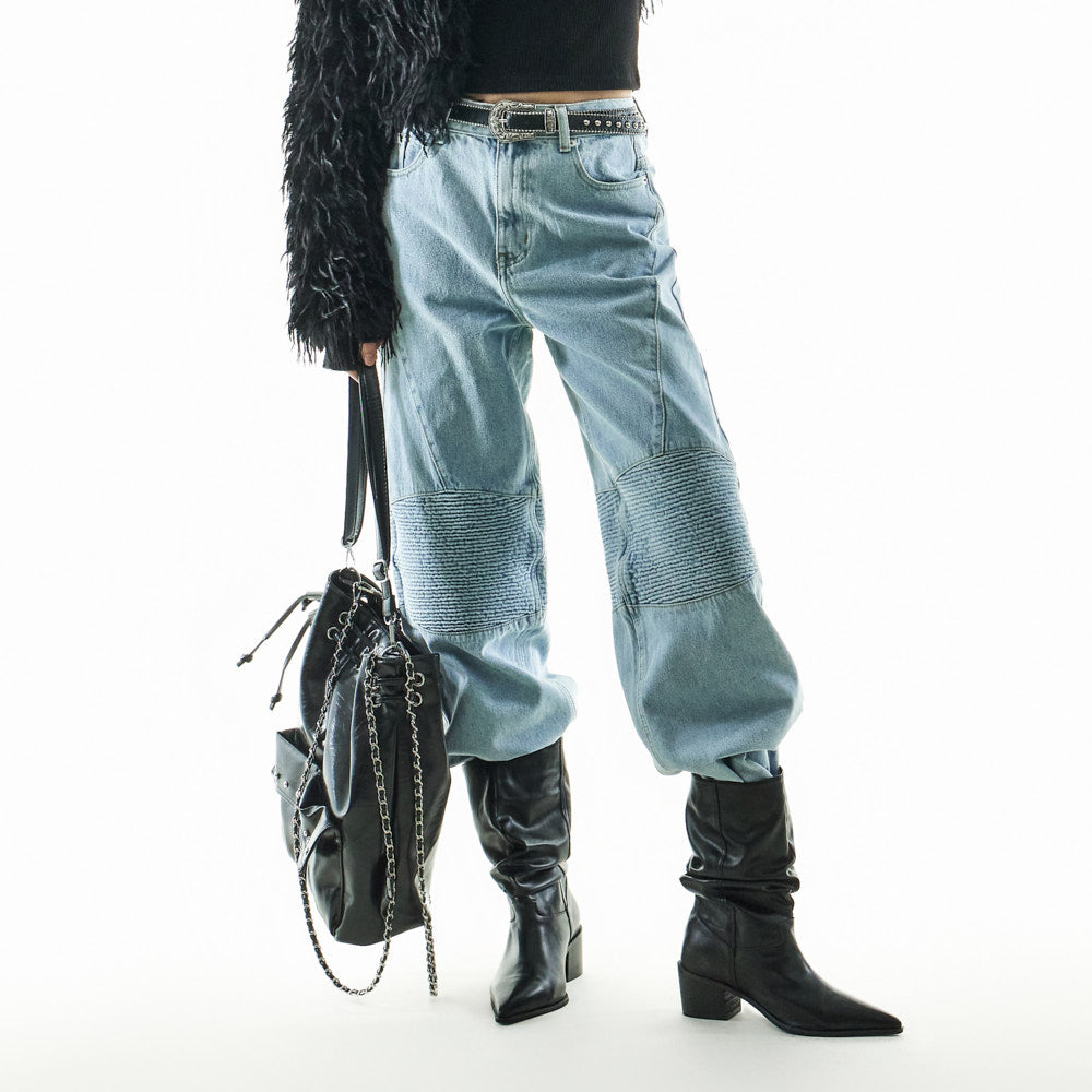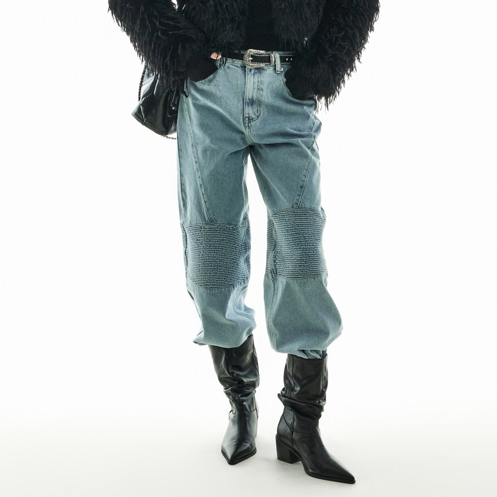 These jeans have a unique style.