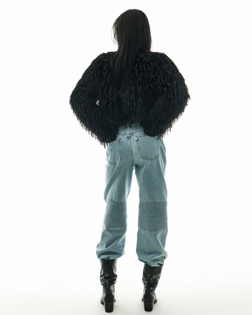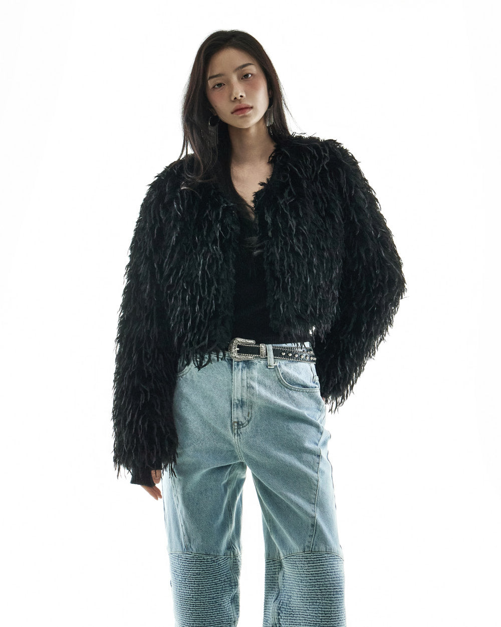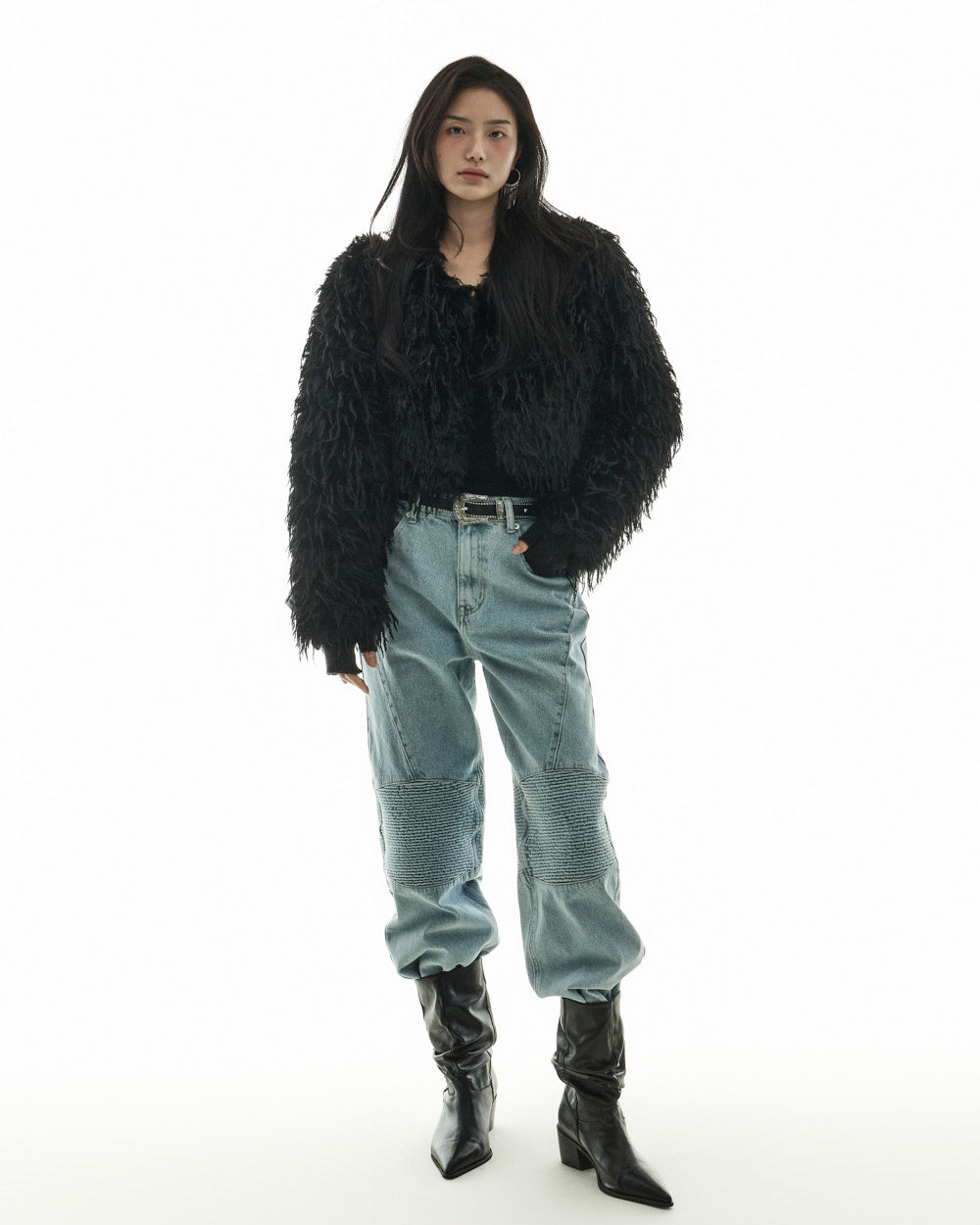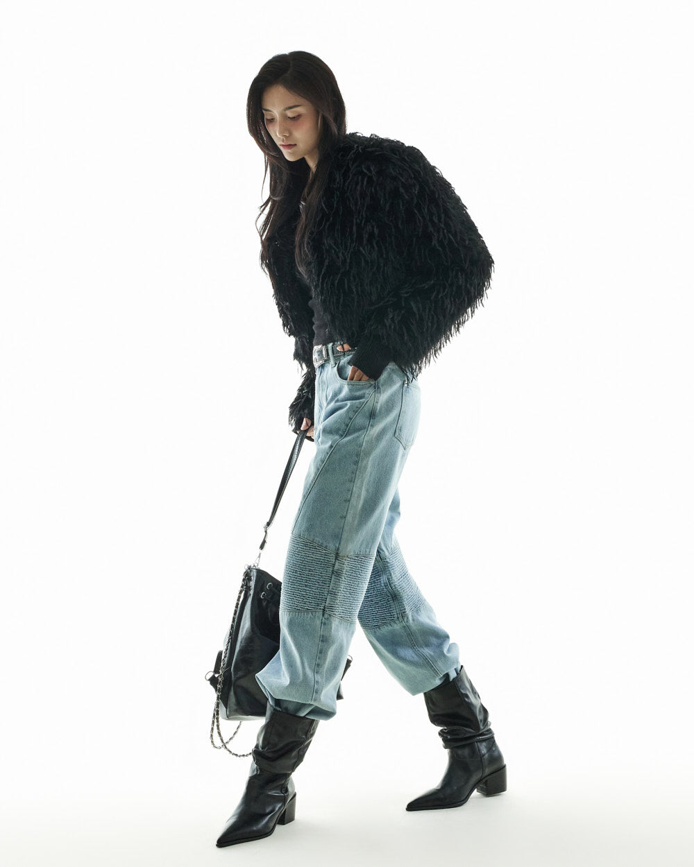 These denim jeans create a chic yet stylish look.