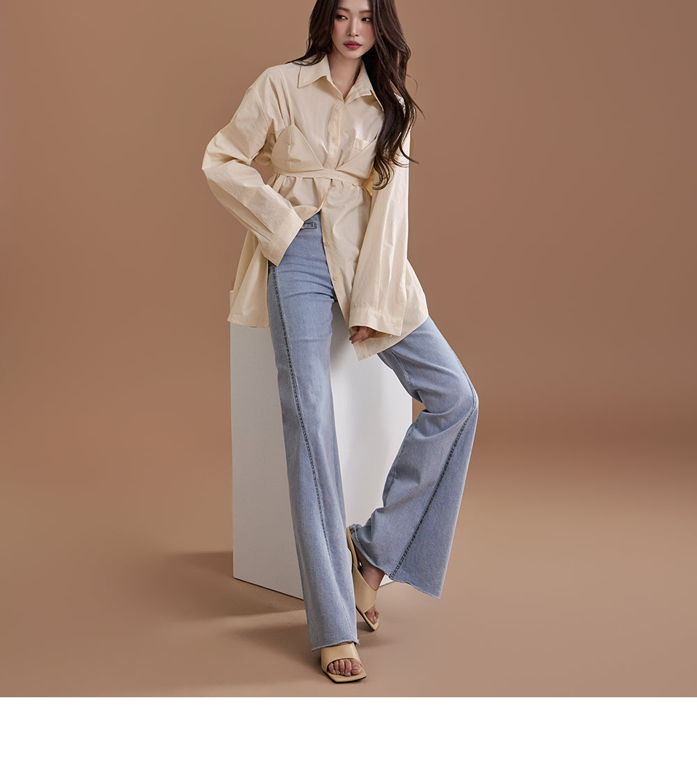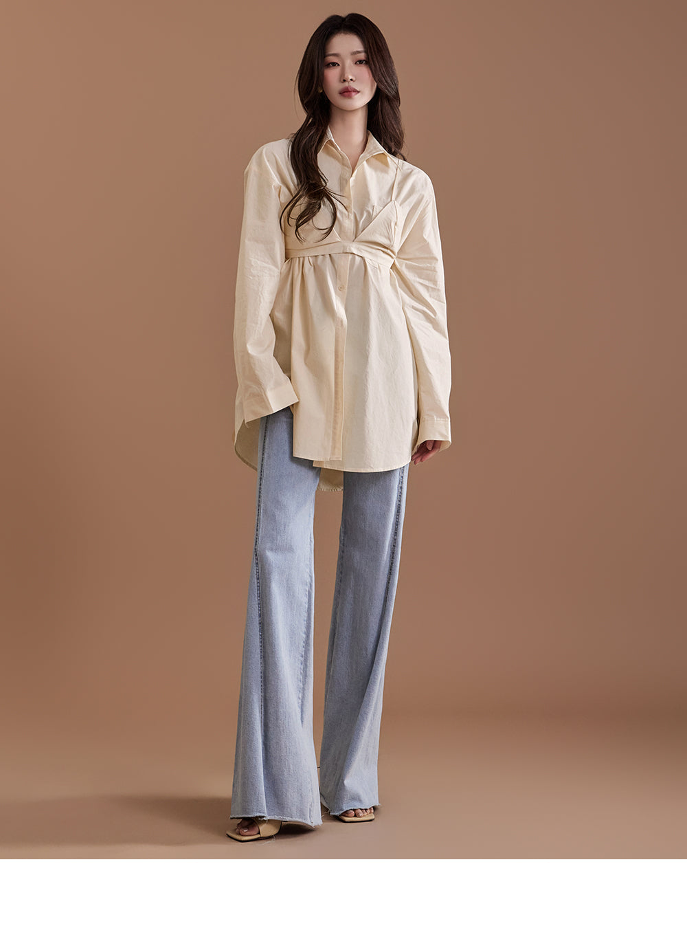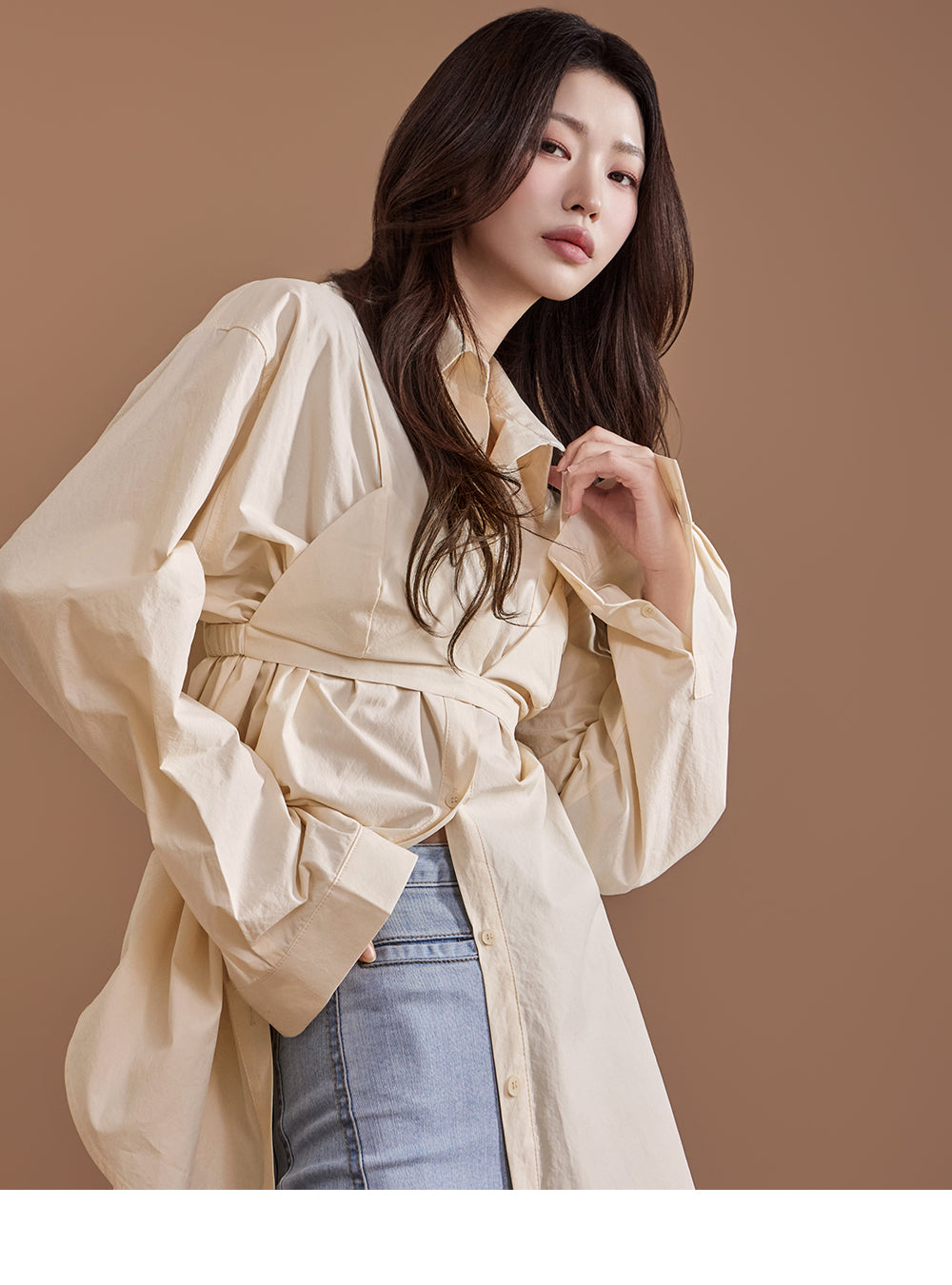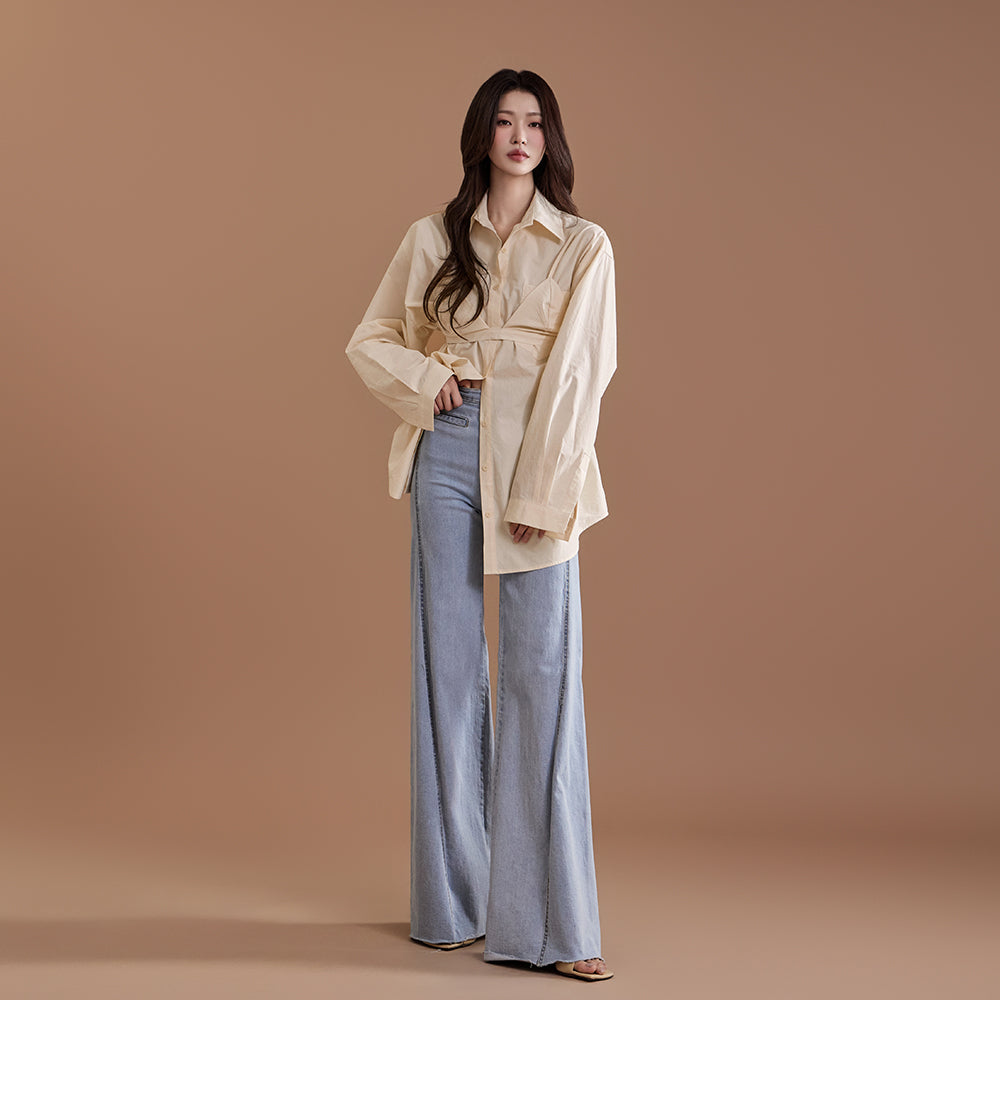 模特身高 171 厘米,穿着浅黄色 ONE/S 码。