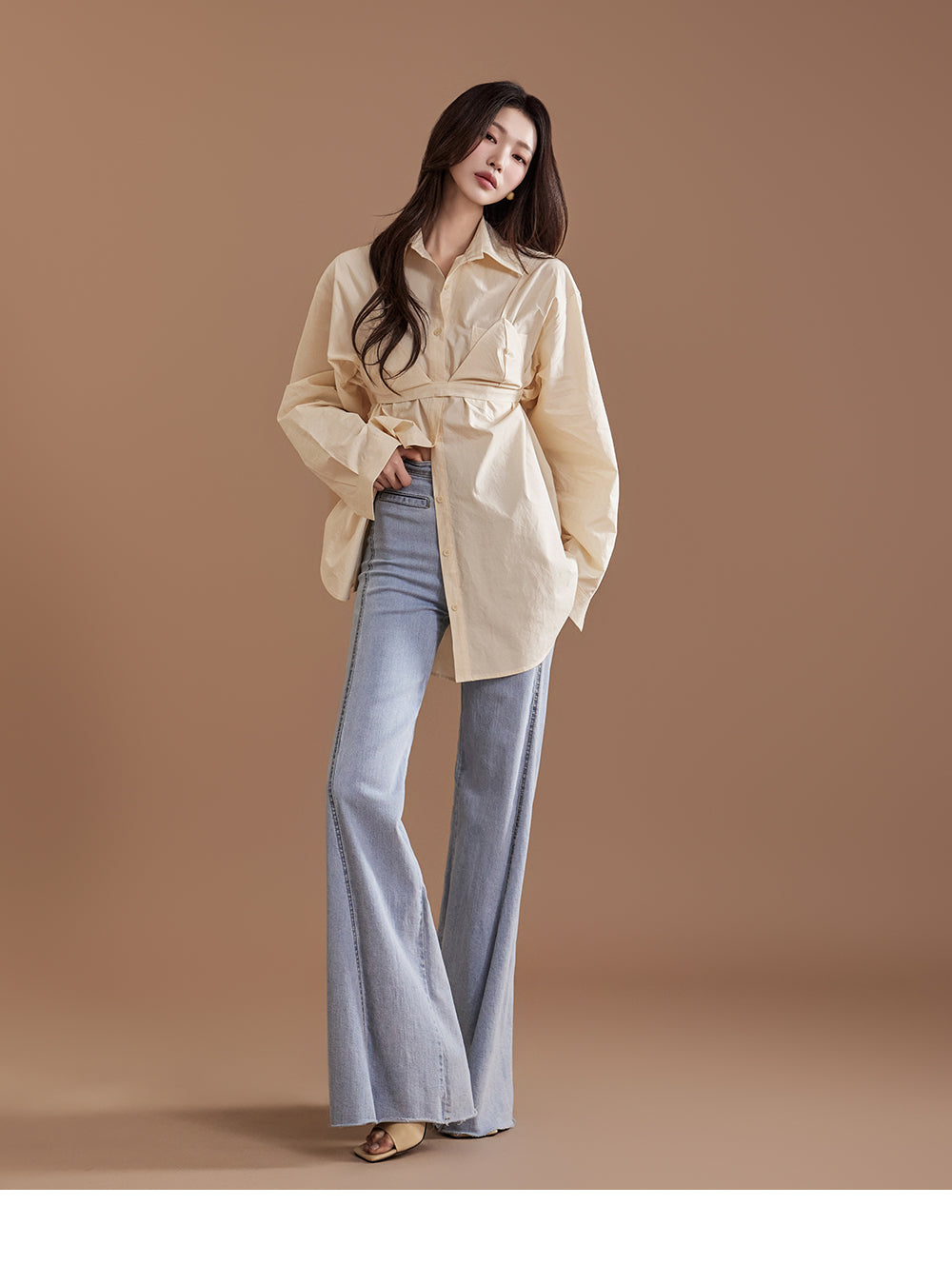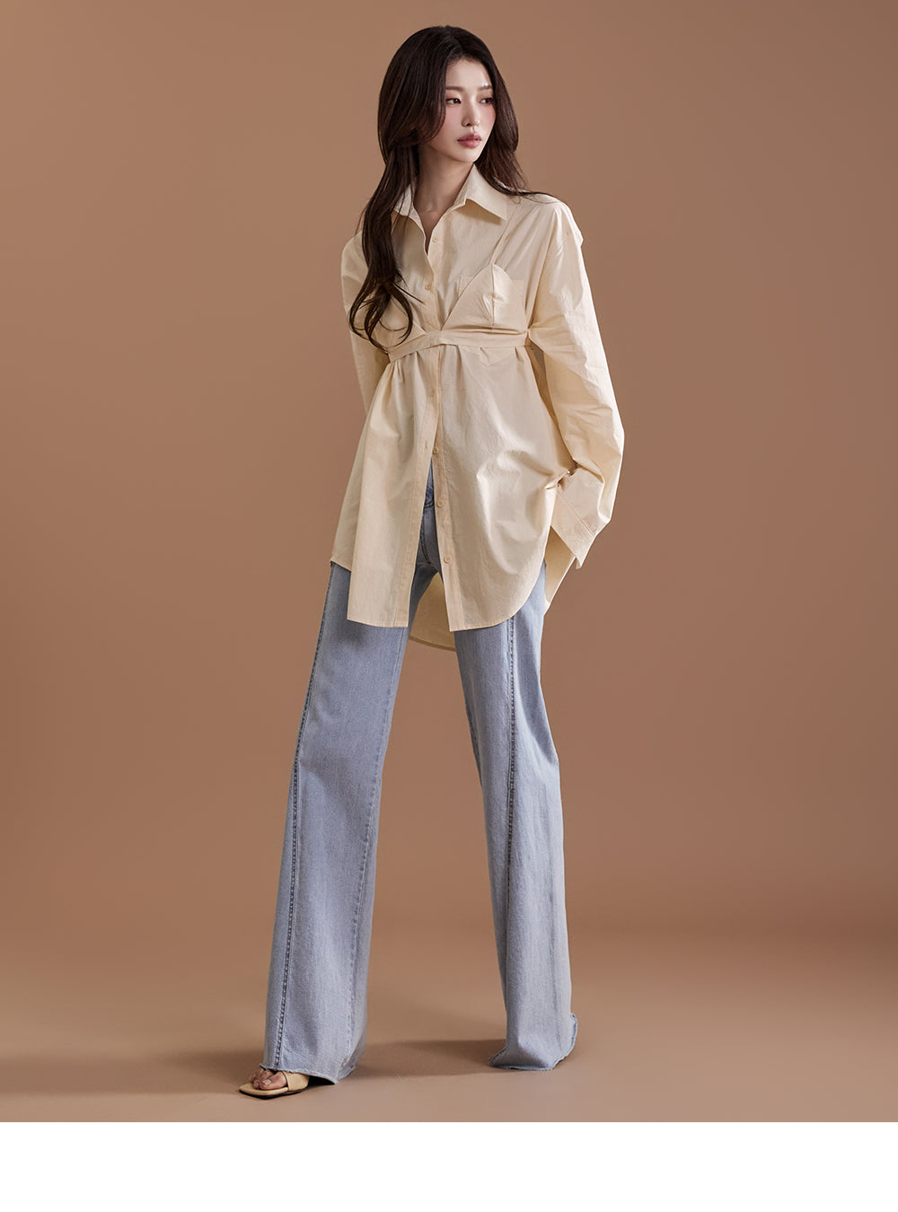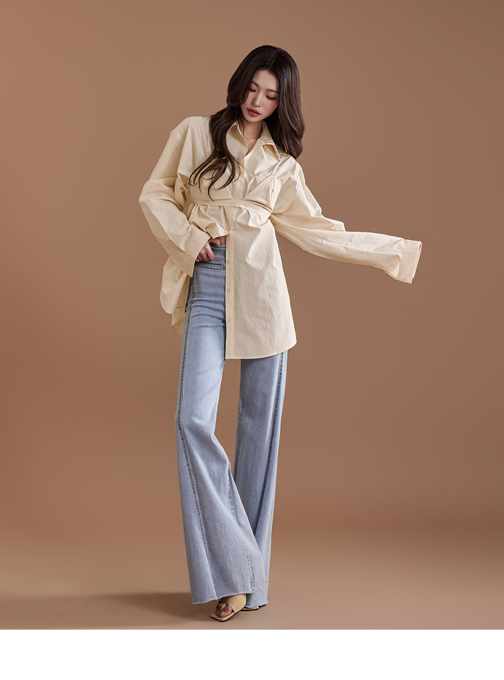 模特身高 171 厘米,穿着浅黄色 ONE/S 码。