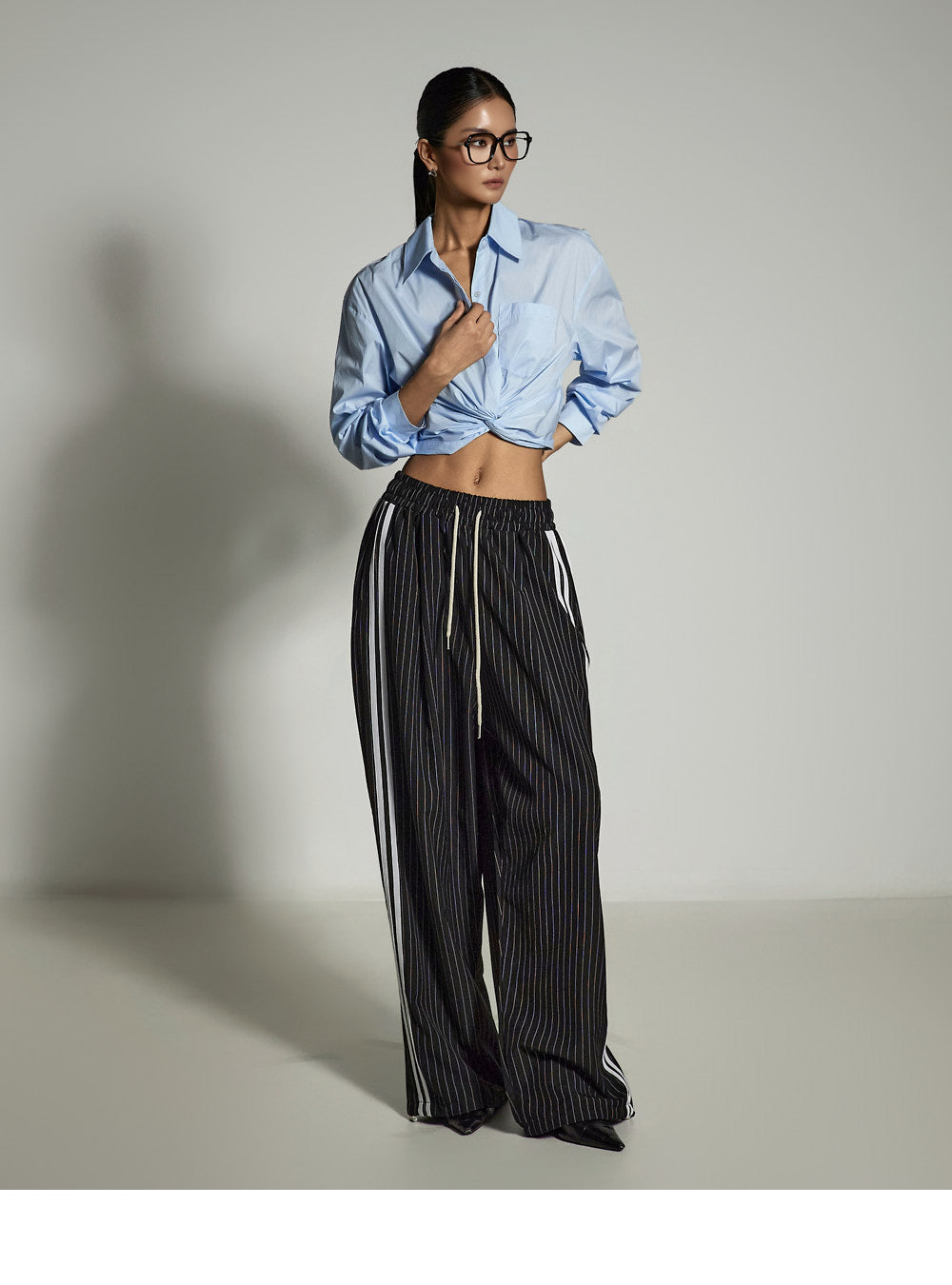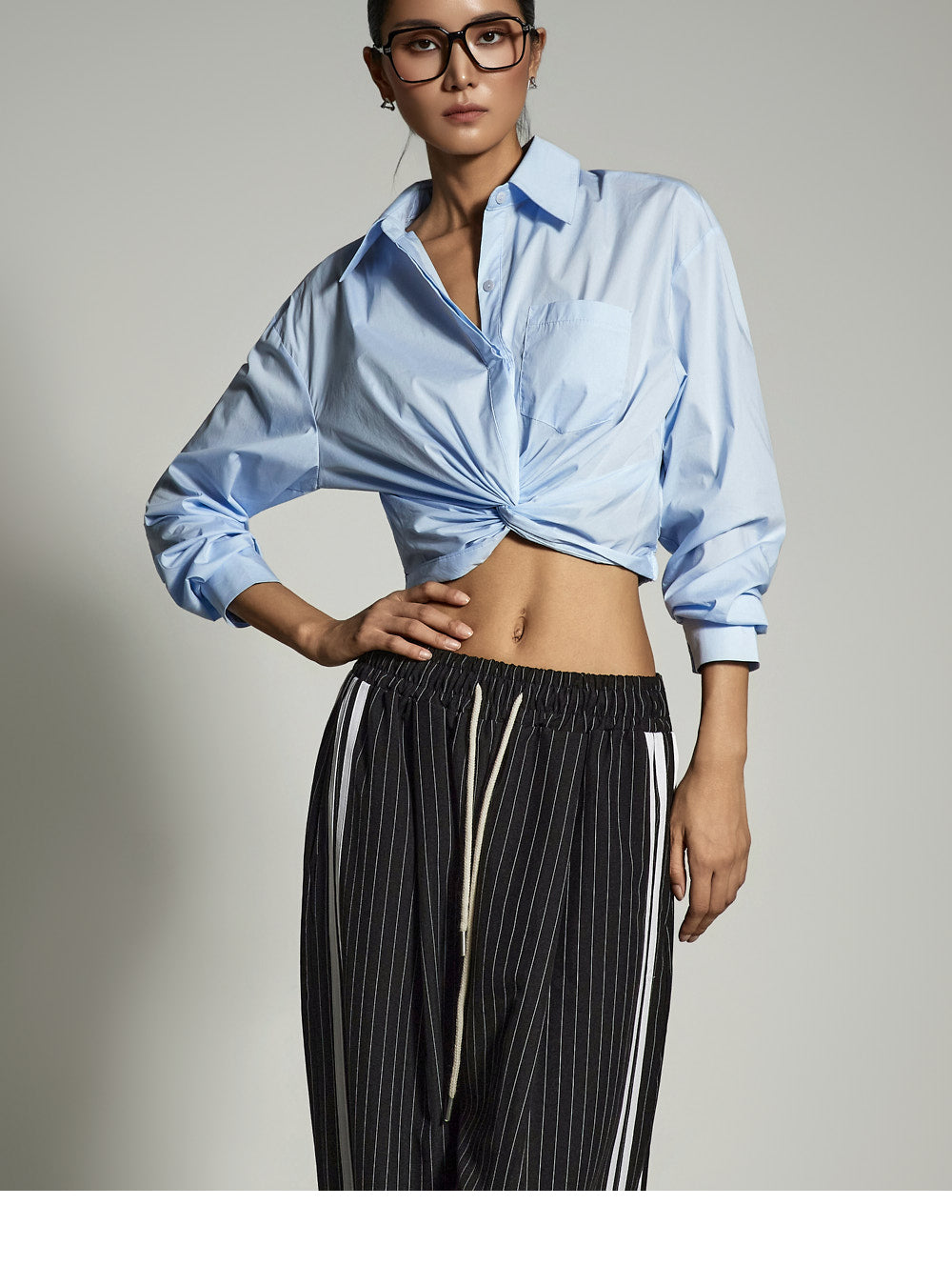 The model, 173cm tall, is wearing one size in the Sky Blue color.