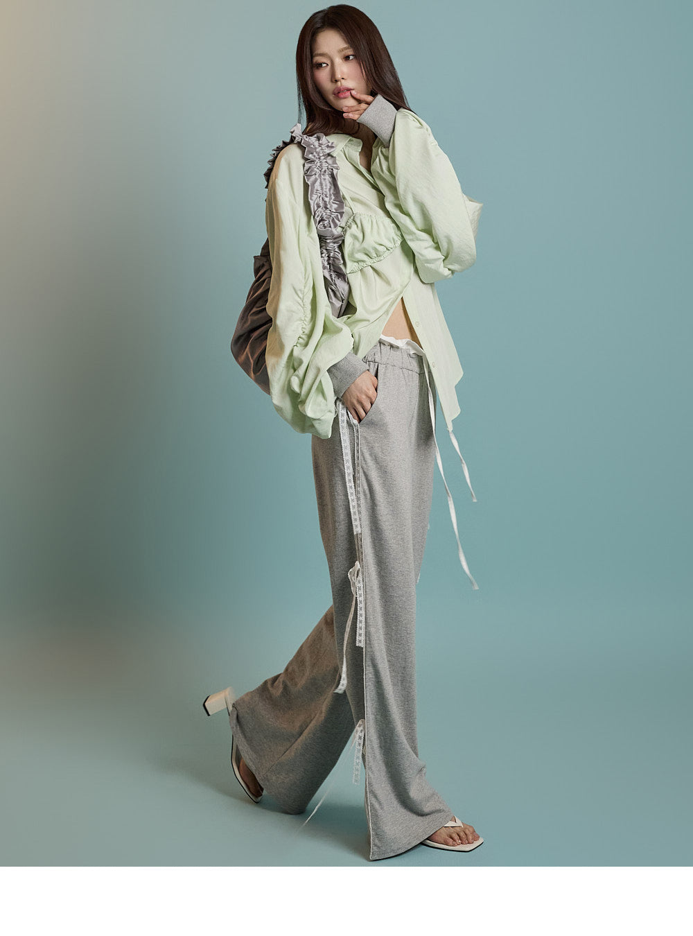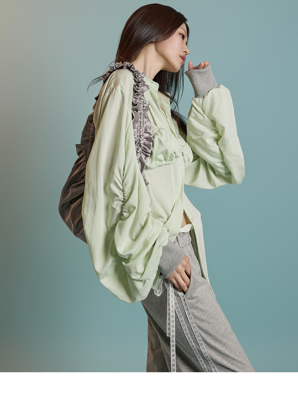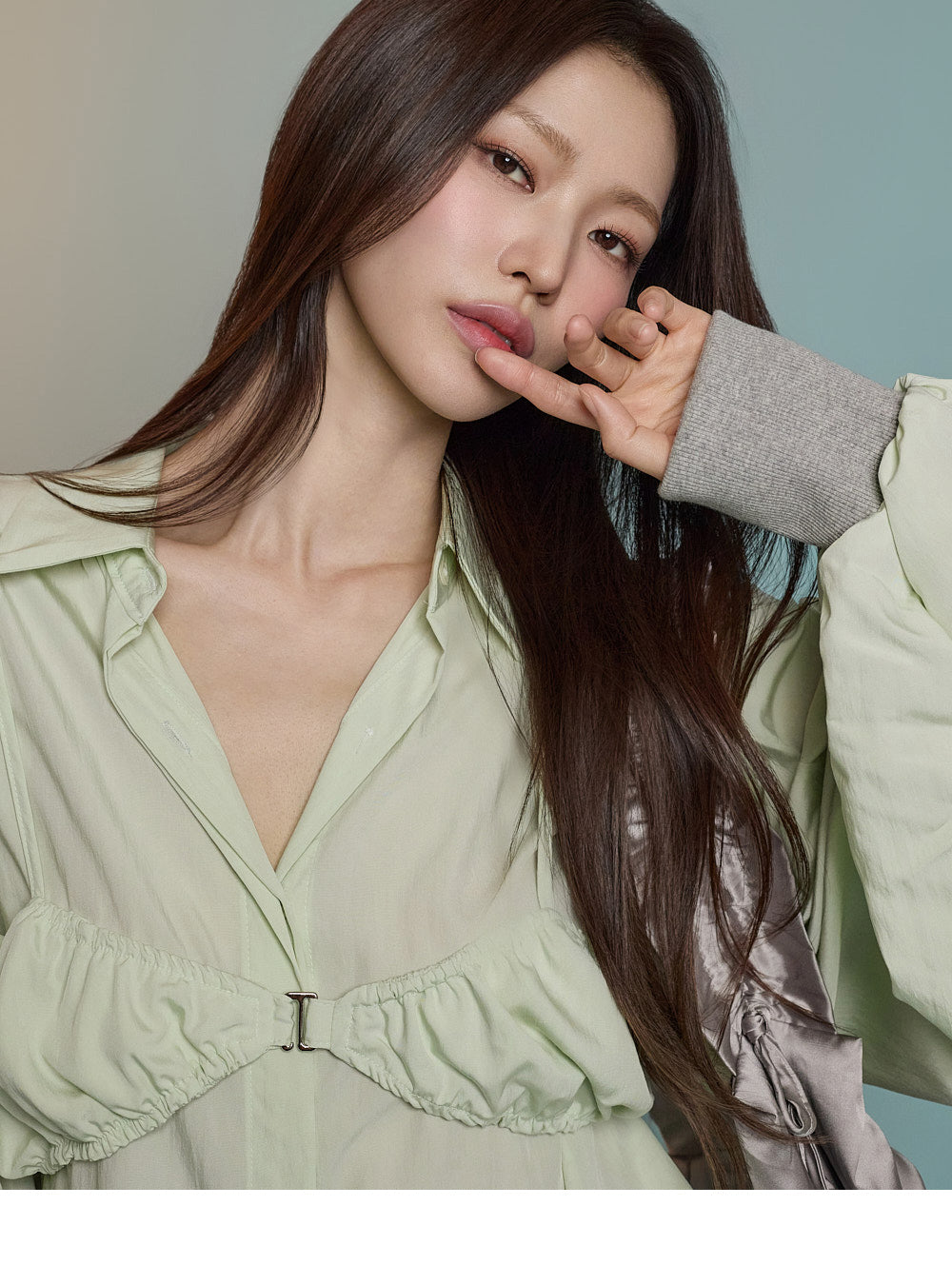 模特身高 171 厘米,穿着薄荷色均码服装。