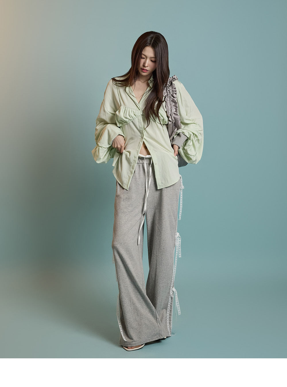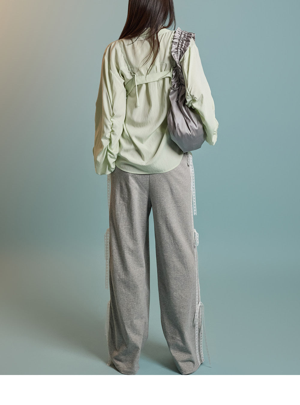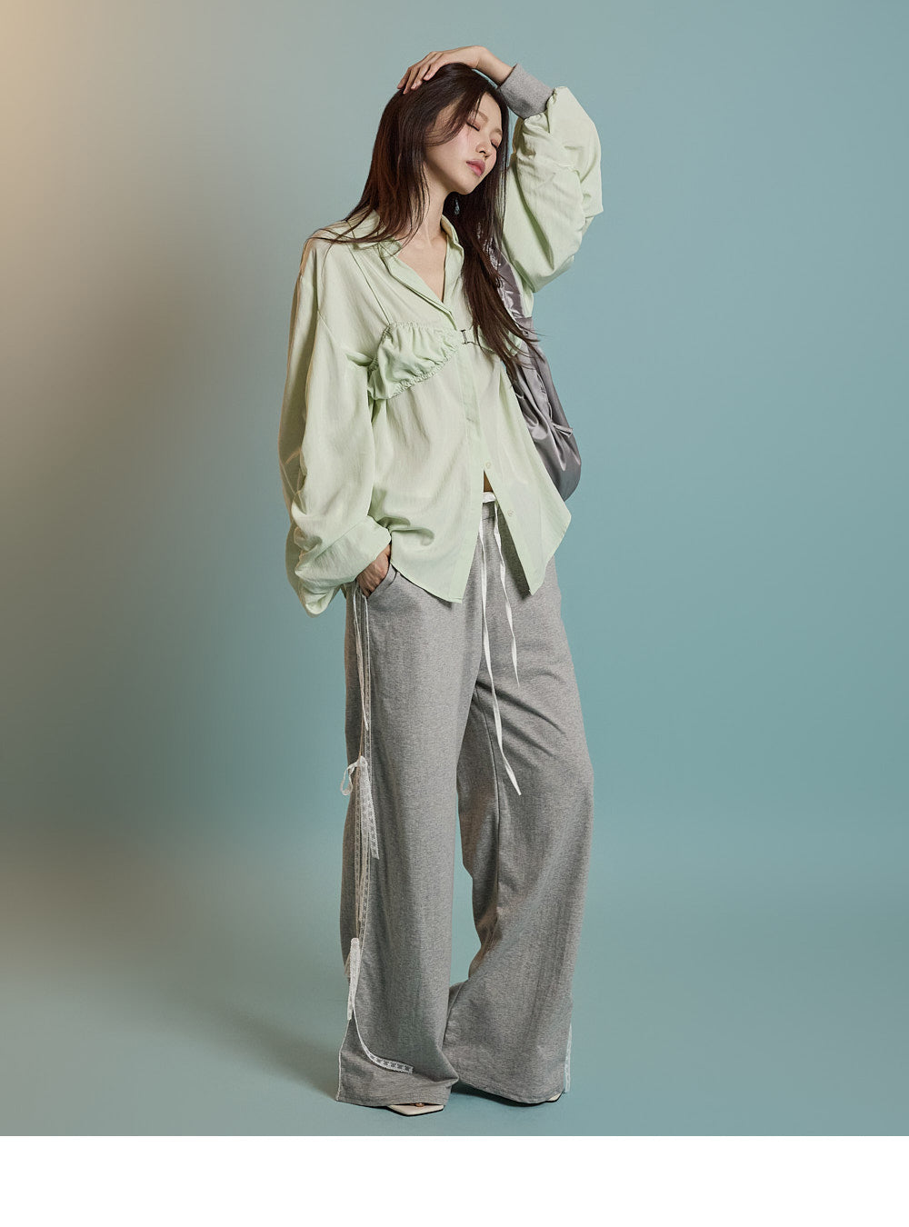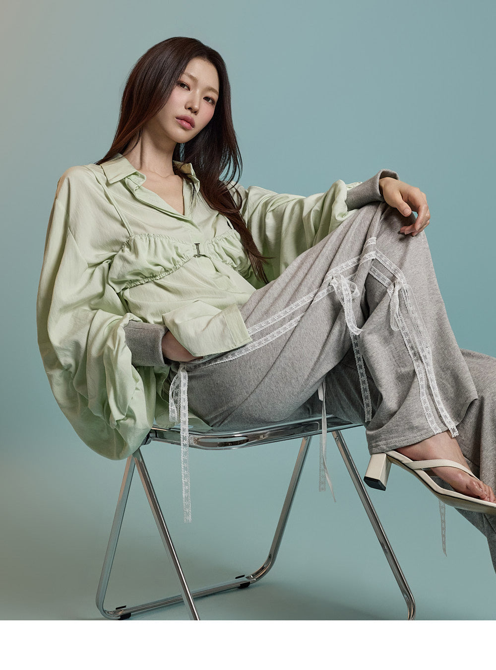 模特身高 171 厘米,穿着薄荷色均码服装。