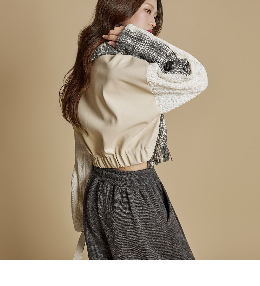 This is a casual color-block leather jacket