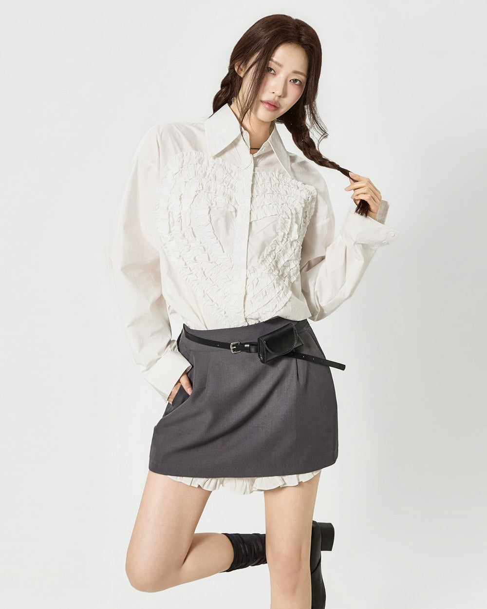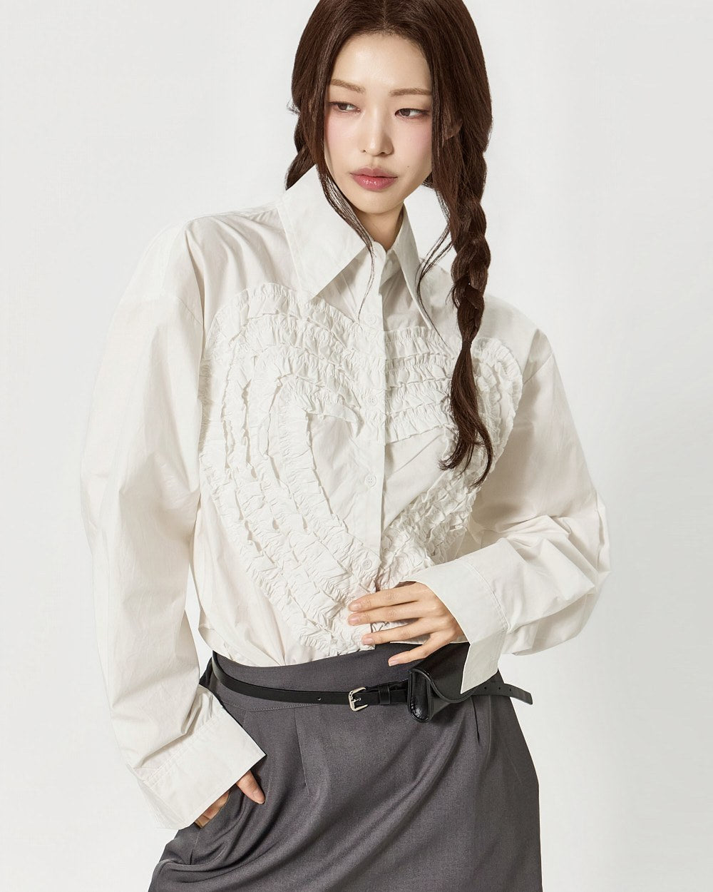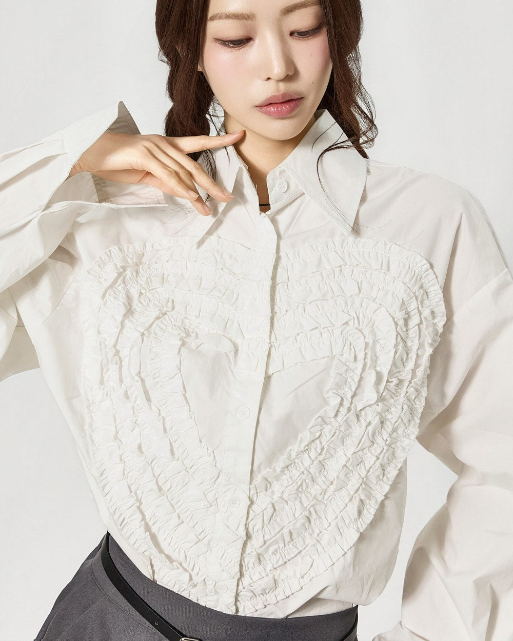 S853 心形褶边衬衫