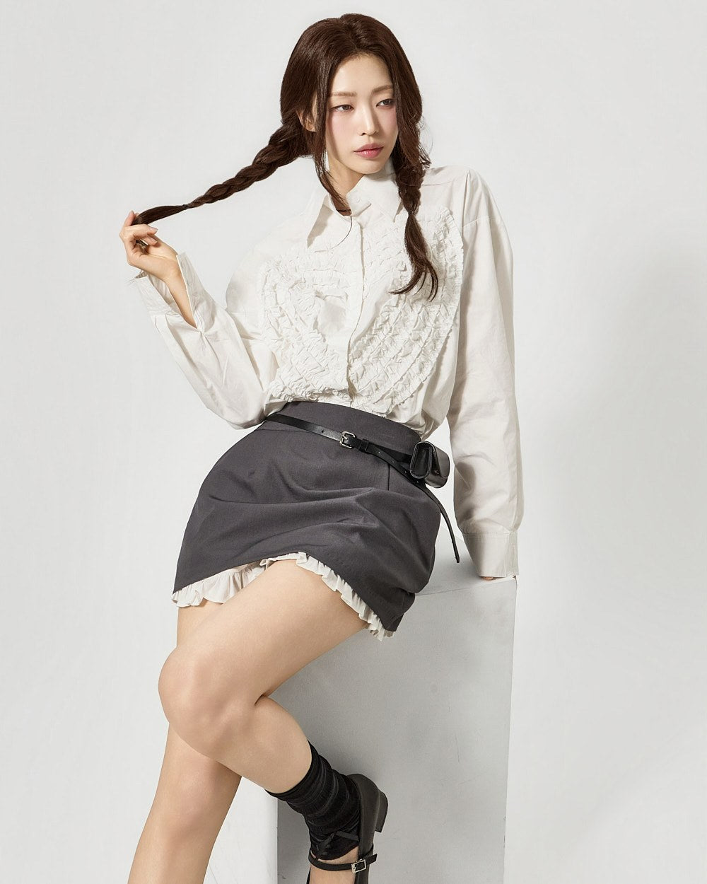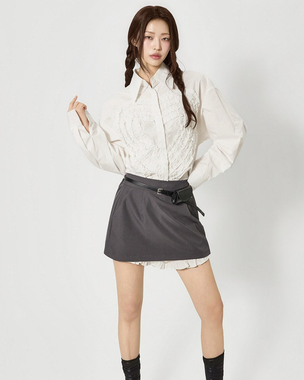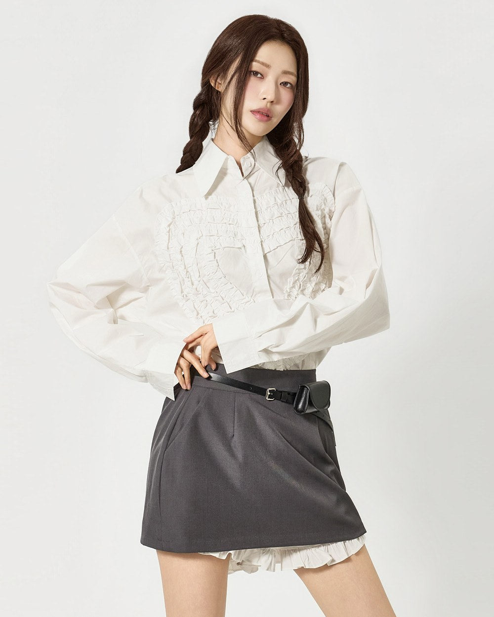 S853 心形褶边衬衫