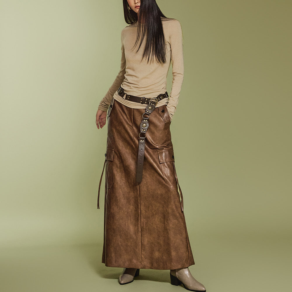 模特身高 173 厘米,穿棕色 ONE 码的衣服。