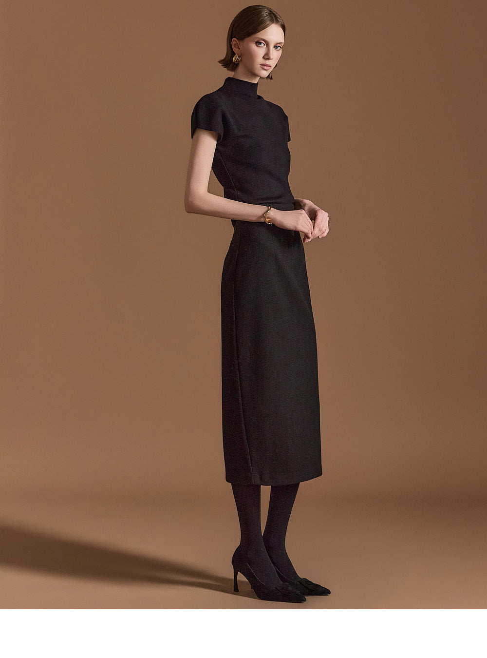 这款裙子采用修身的 H 型轮廓,彰显女性气质和精致外观,