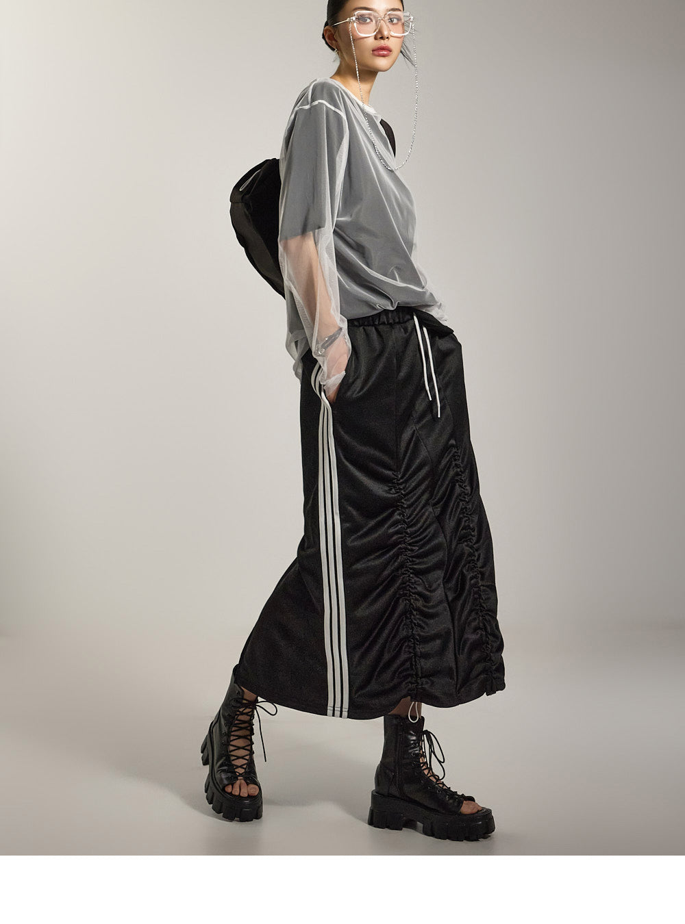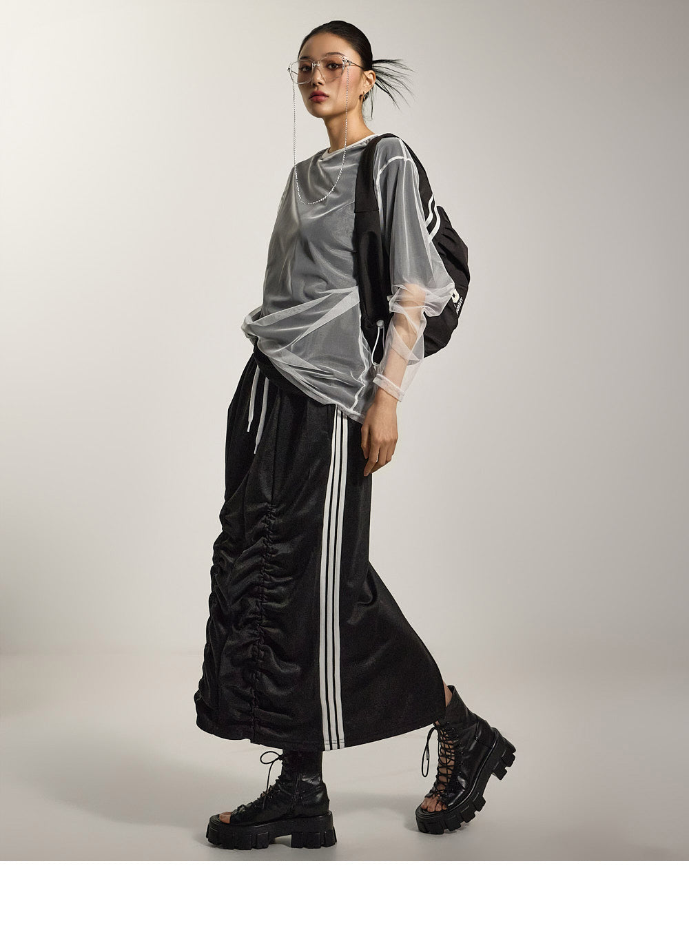 模特身高 171 厘米,穿均码黑色衣服。