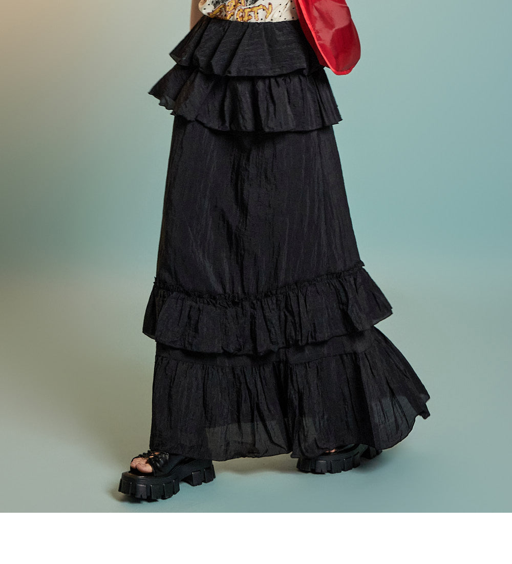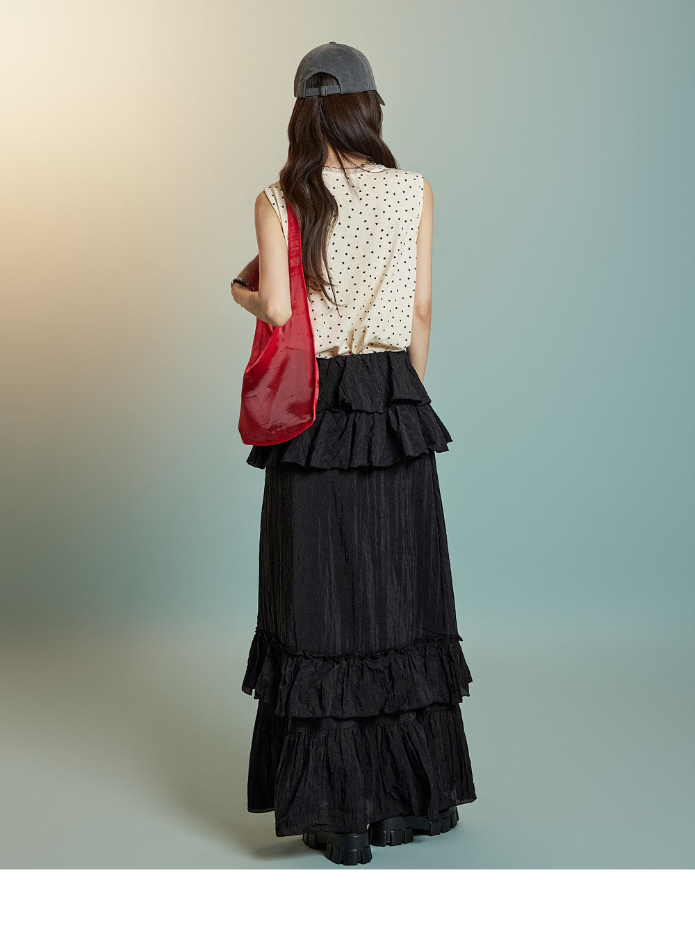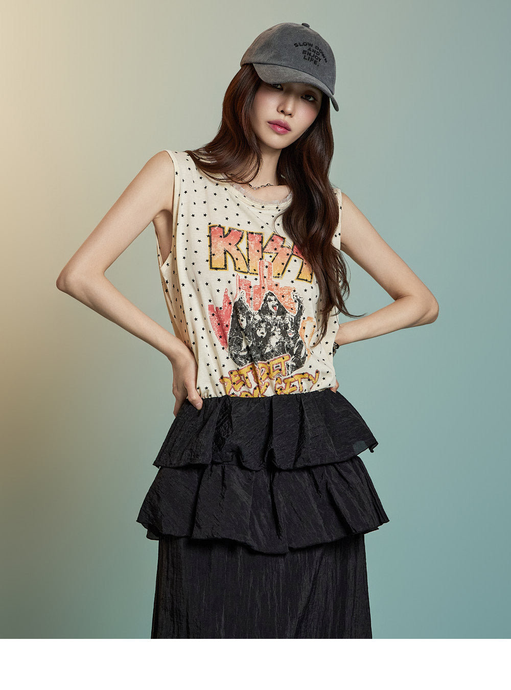 这条裙子可以与 T 恤、无袖上衣轻松搭配,
