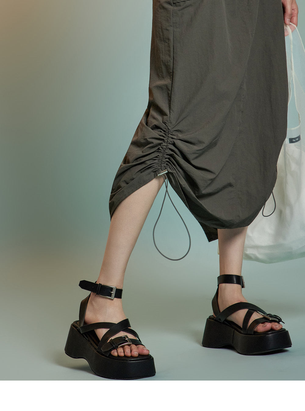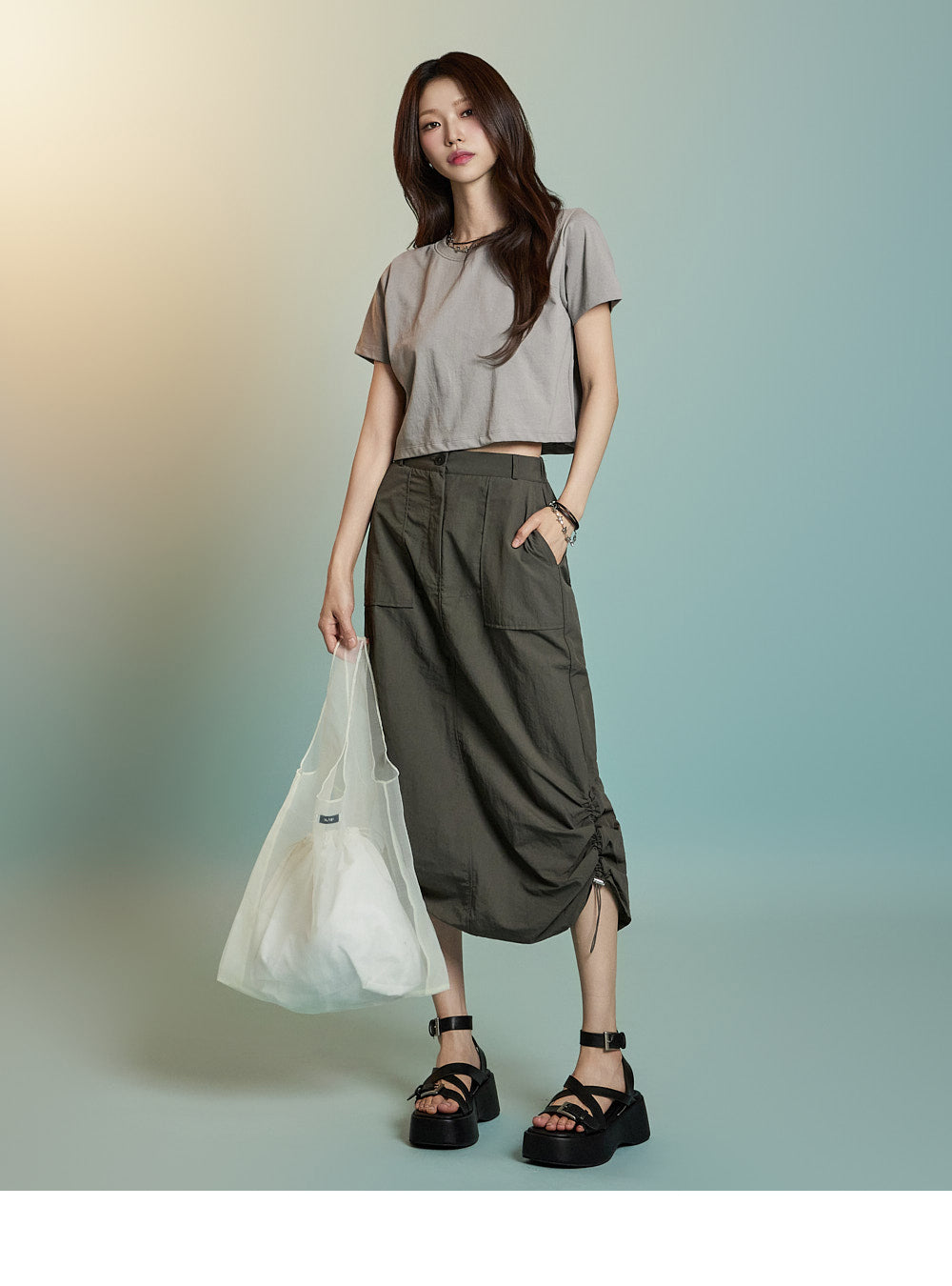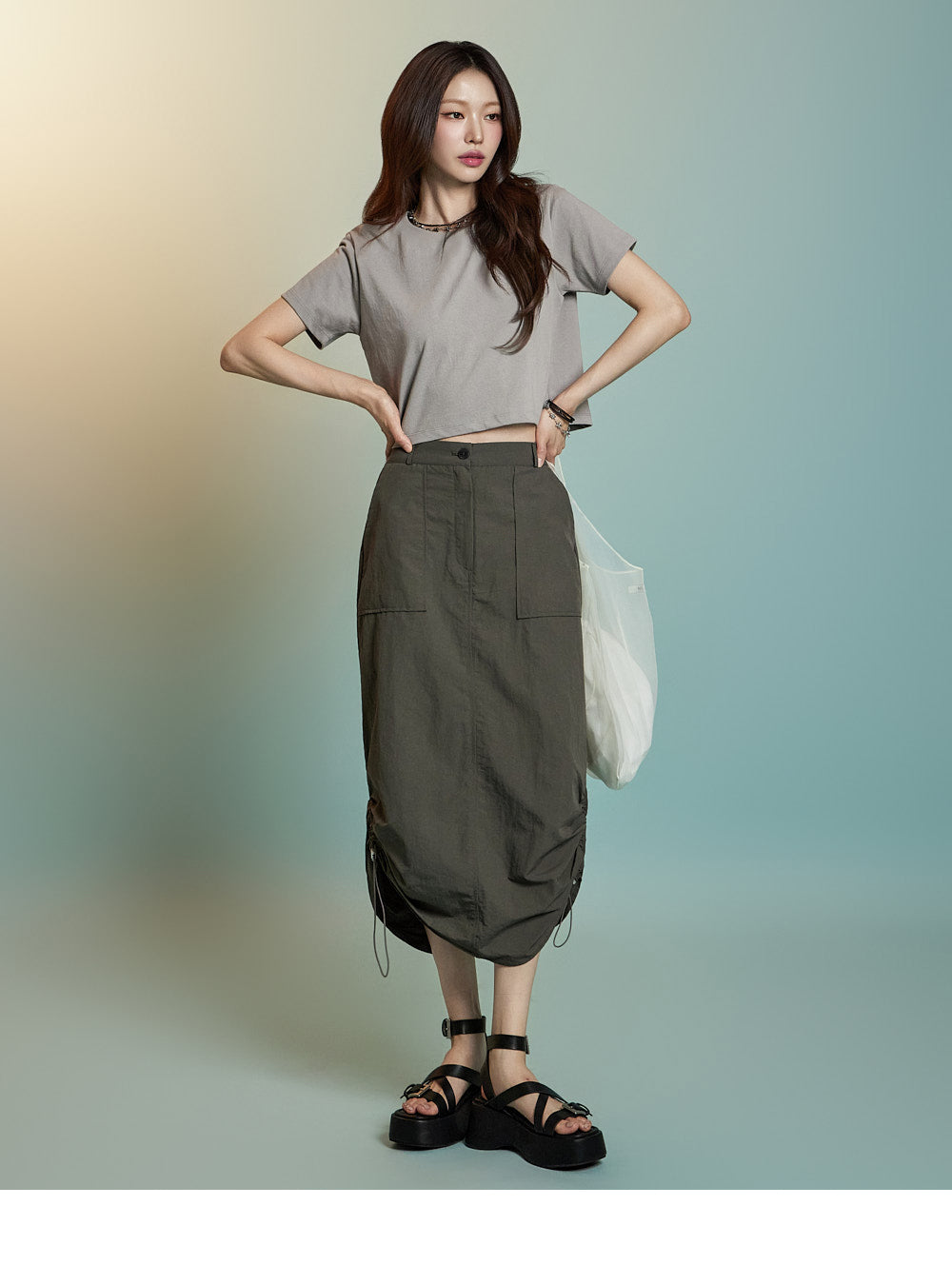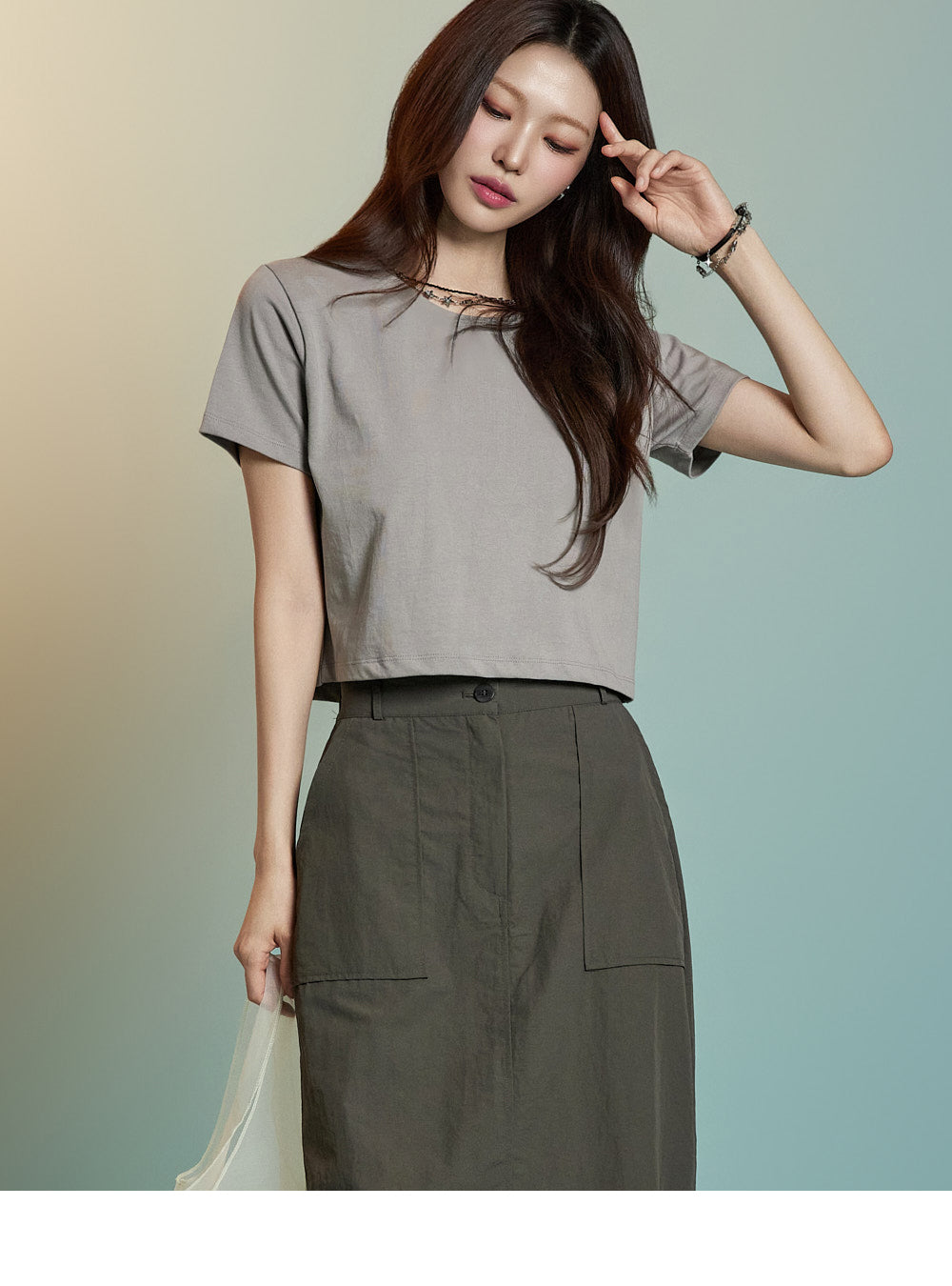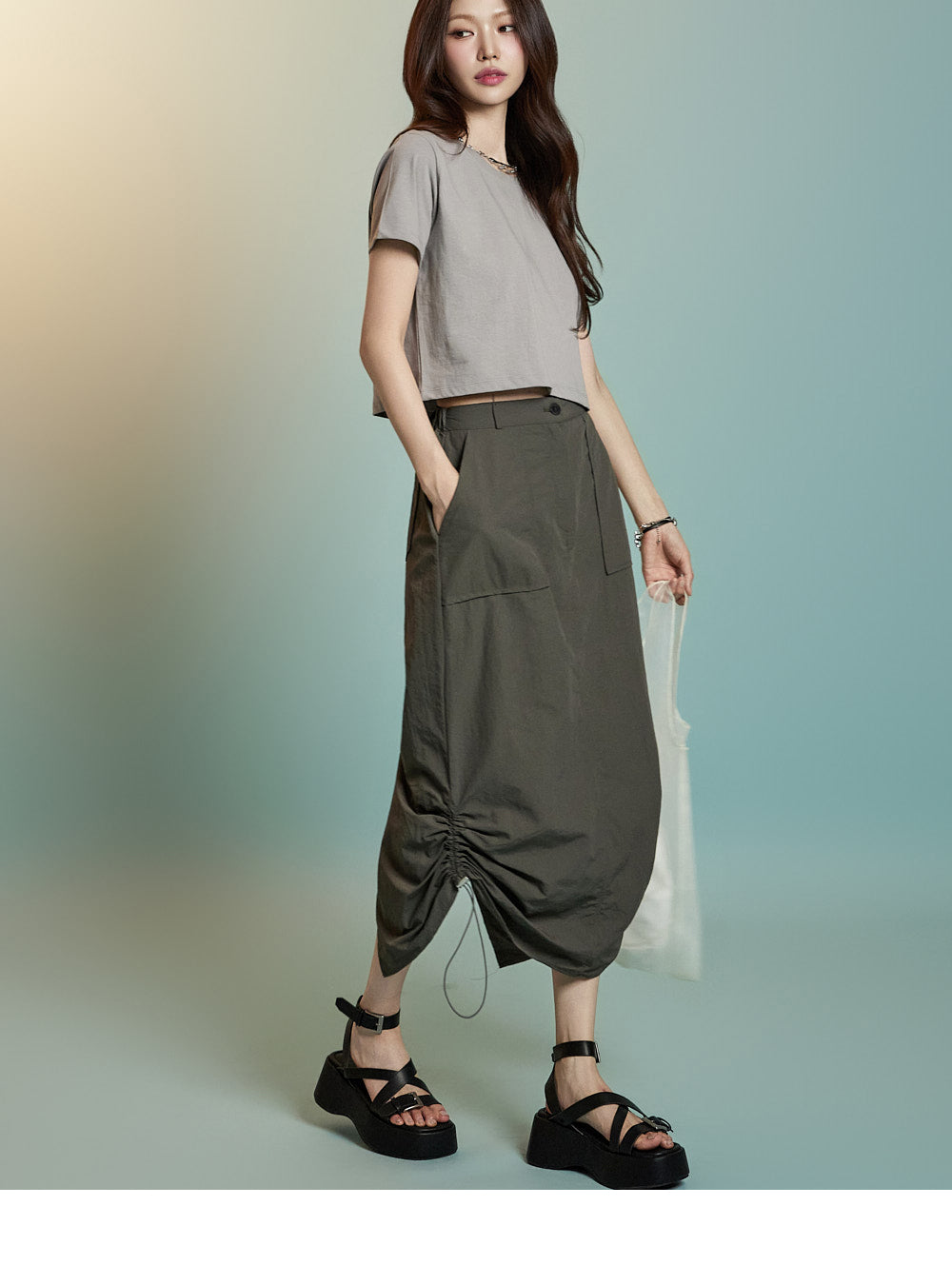 模特身高 171 厘米,穿着均码的深炭灰色衣服。