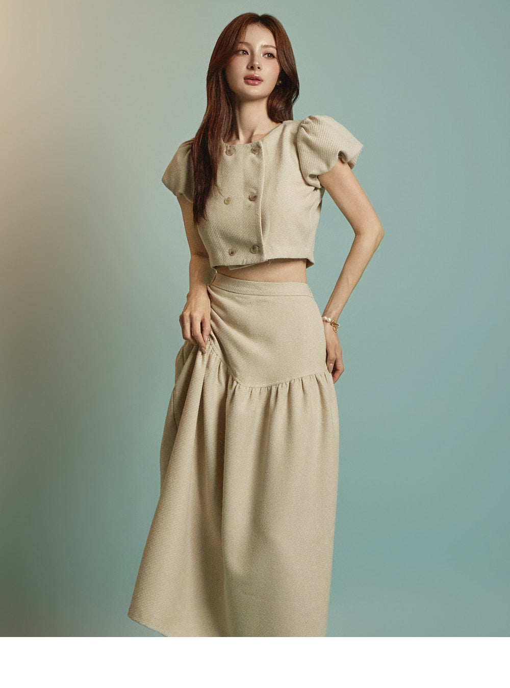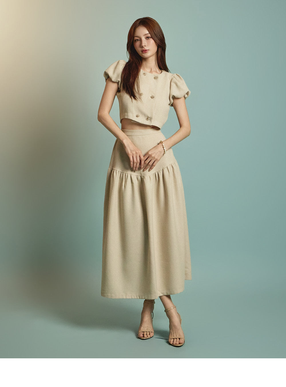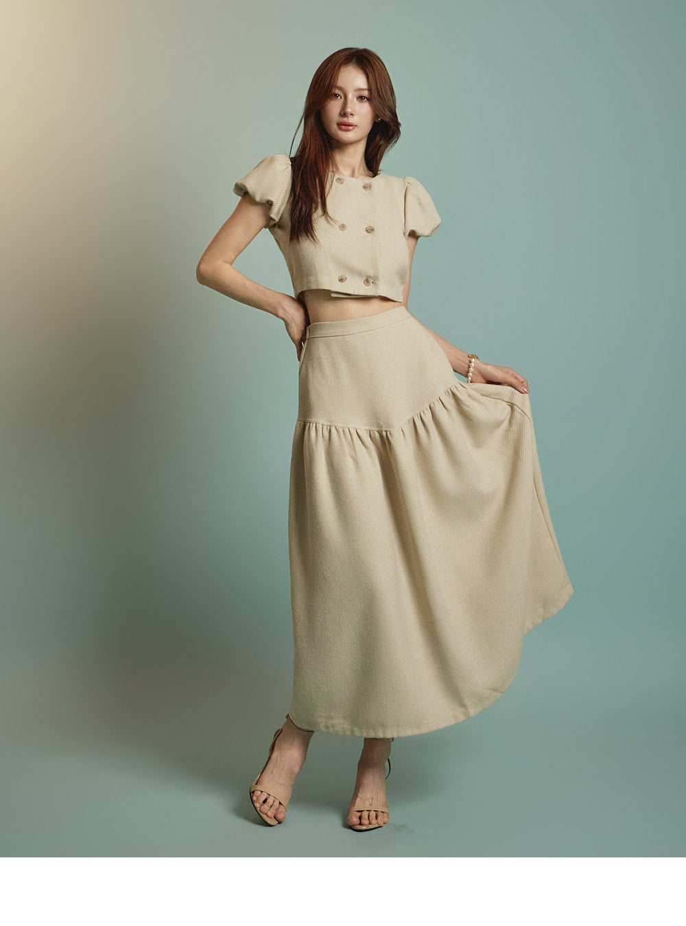 Ruching on both the front and back creates a full, dimensional silhouette.