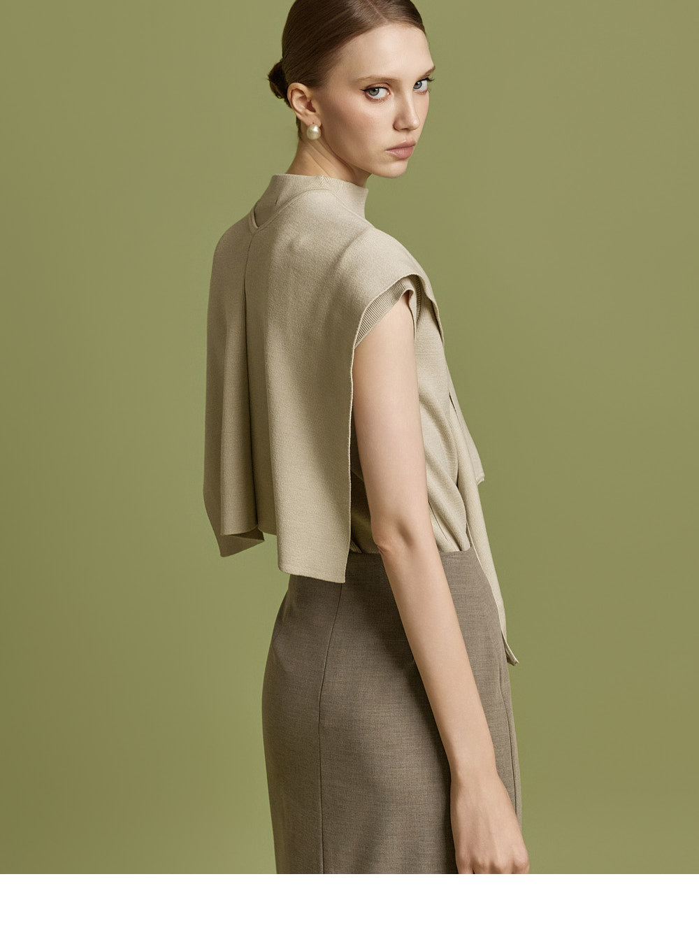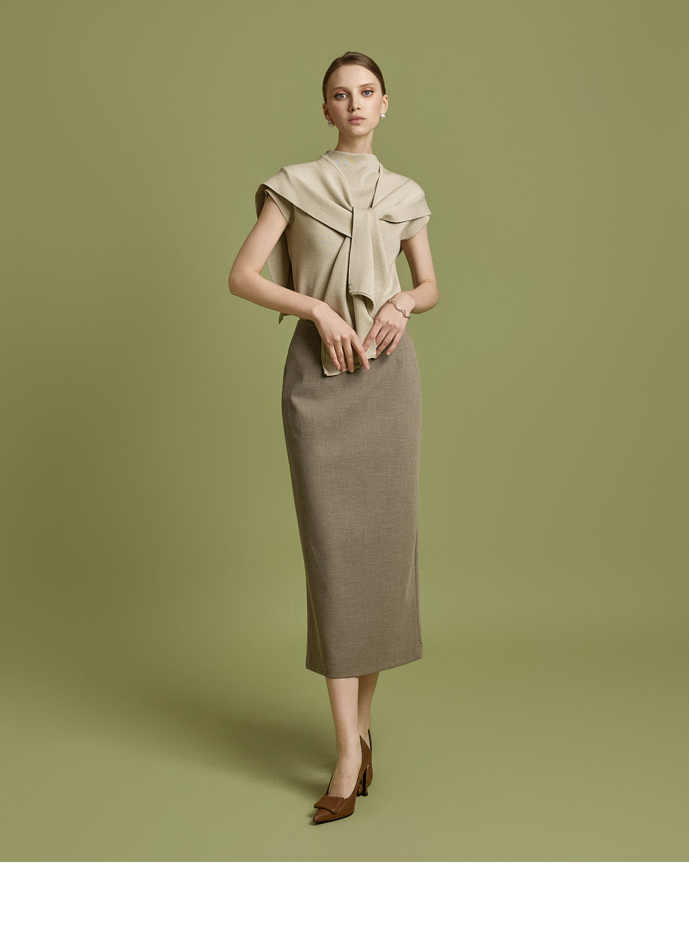 The back zipper closure and moderate stretch ensure a comfortable fit,