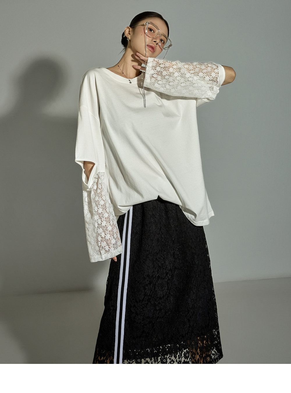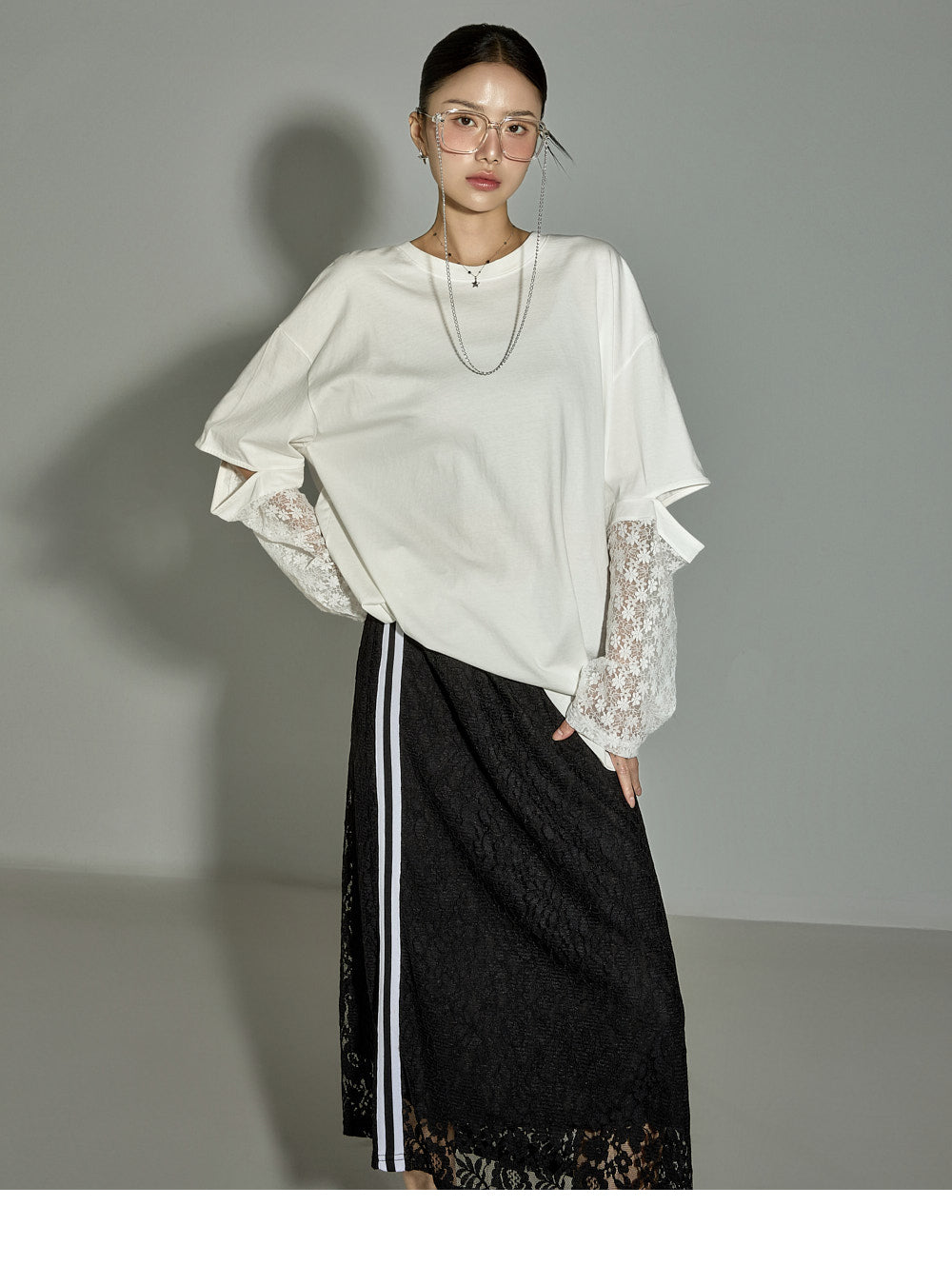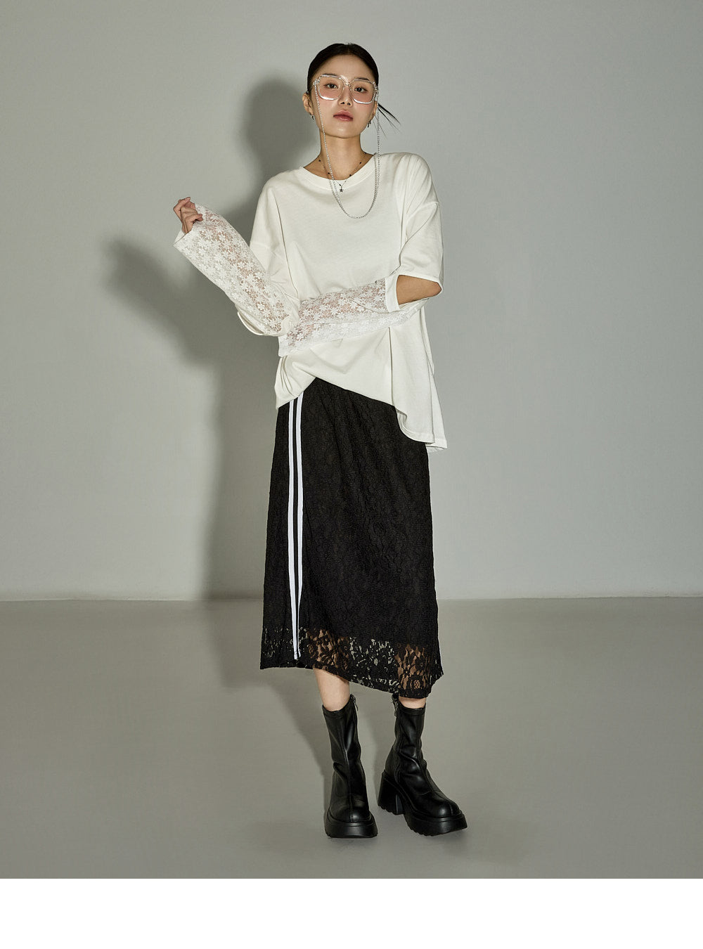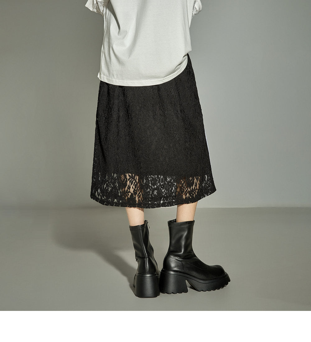 This lace contrast skirt has a casual vibe.