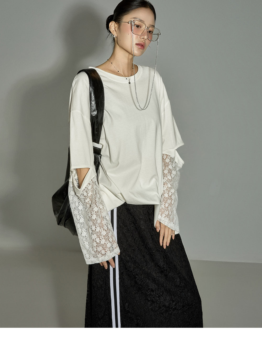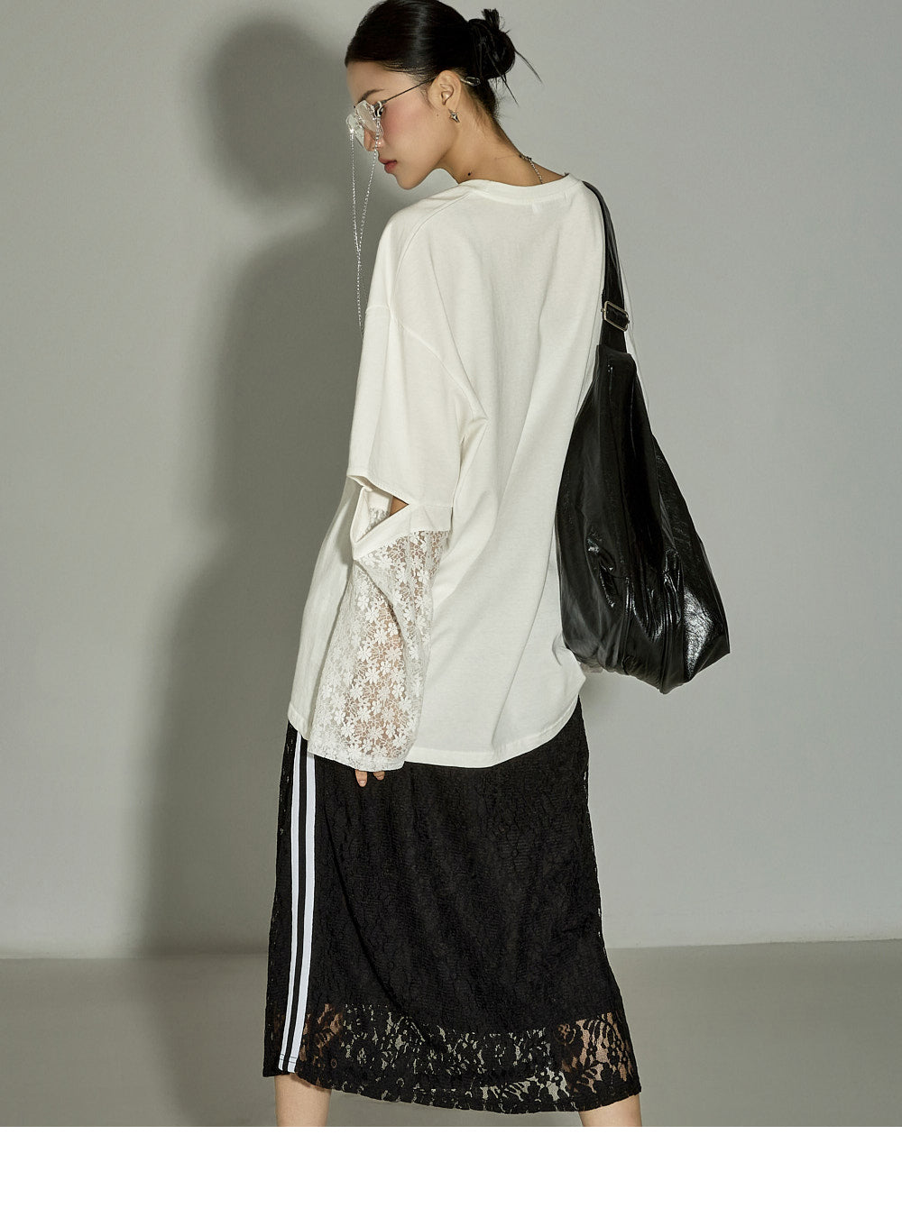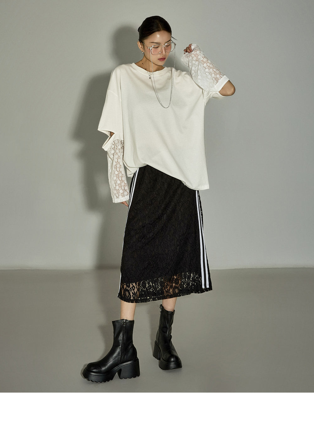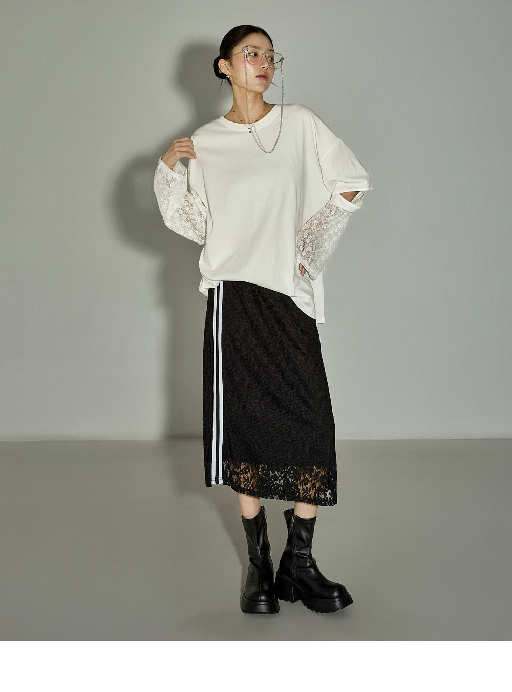 This lace contrast skirt has a casual vibe.